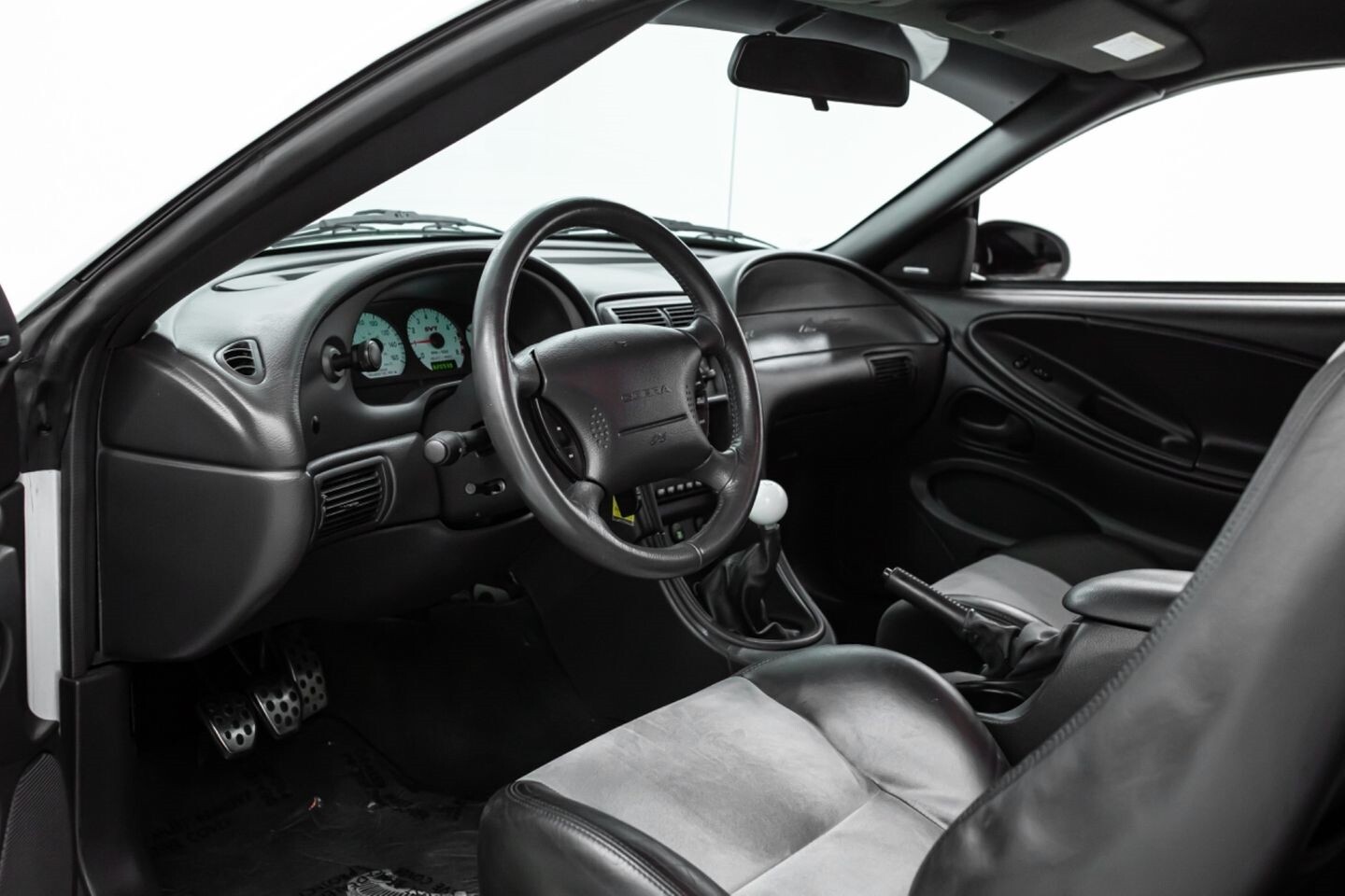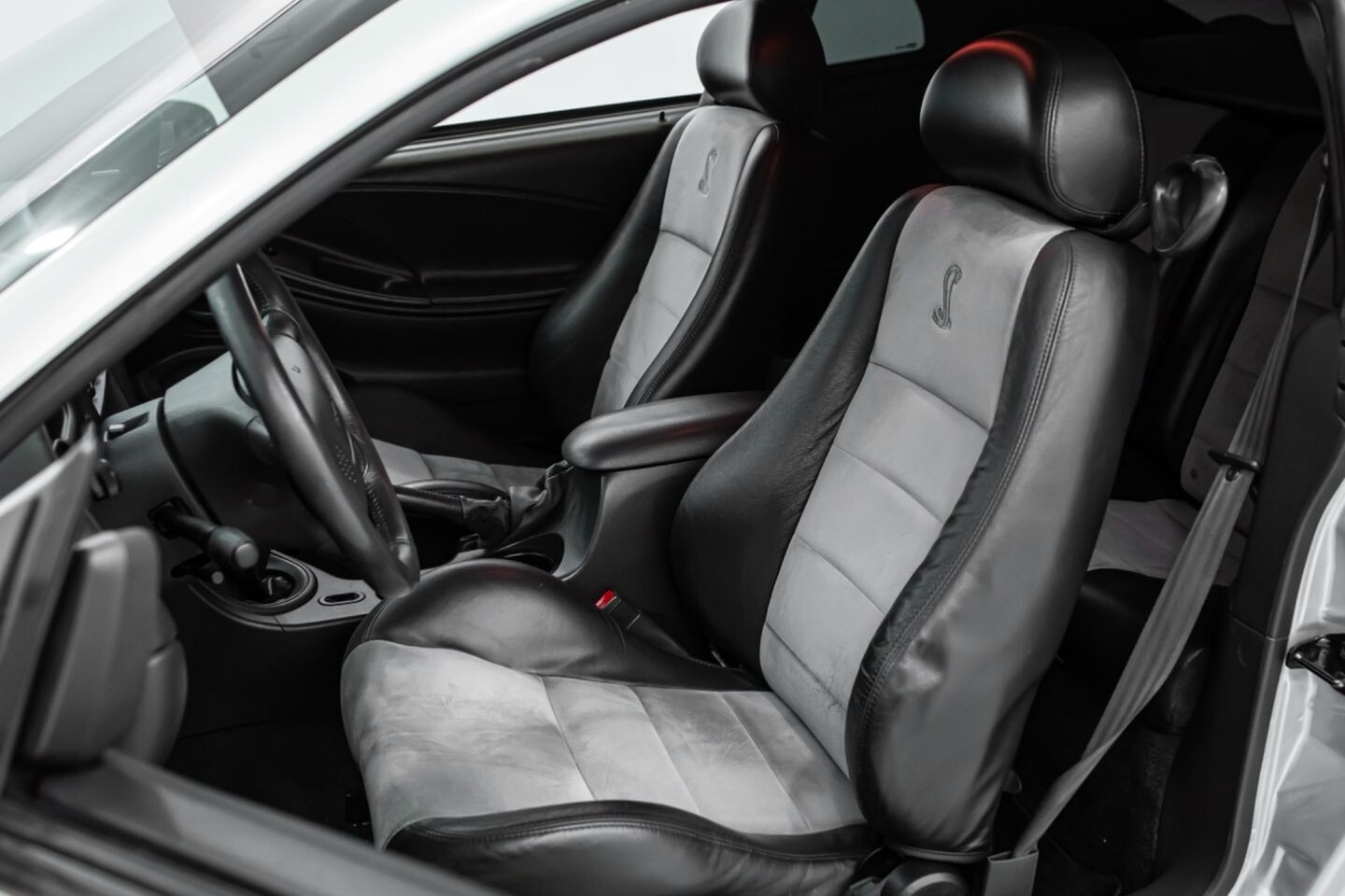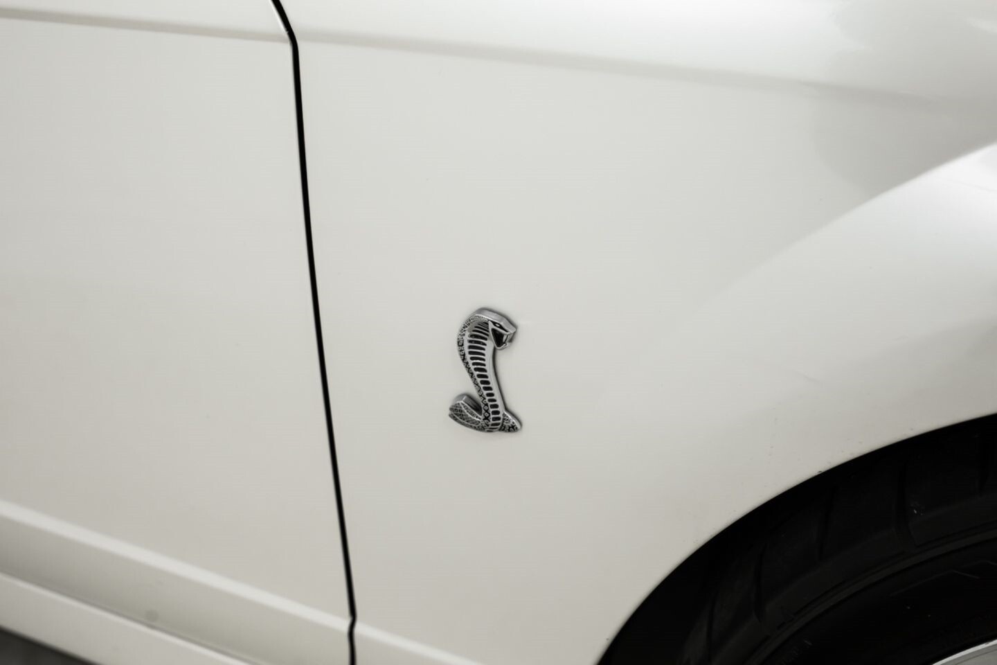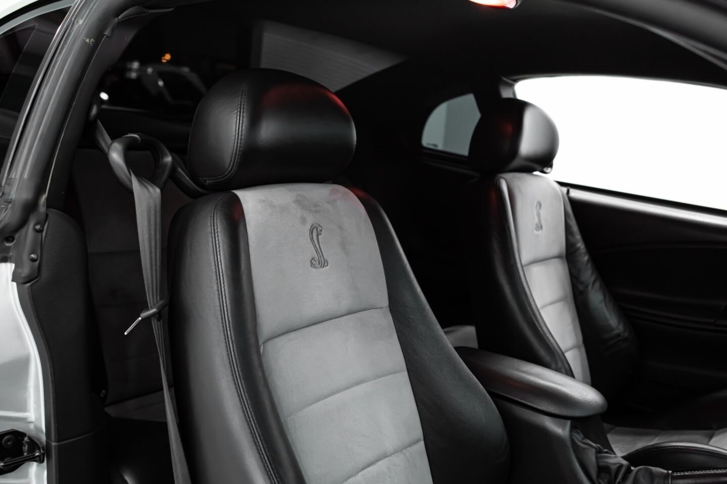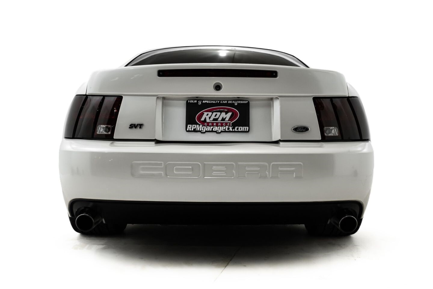 This 2003 Ford Mustang SVT Cobra is a legendary American performer that has been taken to the next level with several modifications. Under the hood is a supercharged 4.6-liter V8 engine that produced 390 horsepower and 390 lb-ft of torque from the factory, all of which is sent through a six-speed manual transmission to the rear wheels. The engine is not stock, however, having received a Stage IV Steggy ported blower, a 2.76" supercharger pulley, JBA shorty headers, a JBA catless X-pipe, a Dragon throttle body, 60lb Deka injectors, and performance tuning, among many other modifications. This aggressive build comes equipped with chrome-finished OEM 17" SVT wheels wrapped in Nitto NT555 Extreme tires, while the body is finished in Oxford White. In the interior, this Mustang SVT Cobra offers leather sport seats, white ball shift knob, a leather steering wheel, "SVT" gauges, single-zone climate controls, and a stereo system with CD and AM/FM radio, truly making this car the complete package.