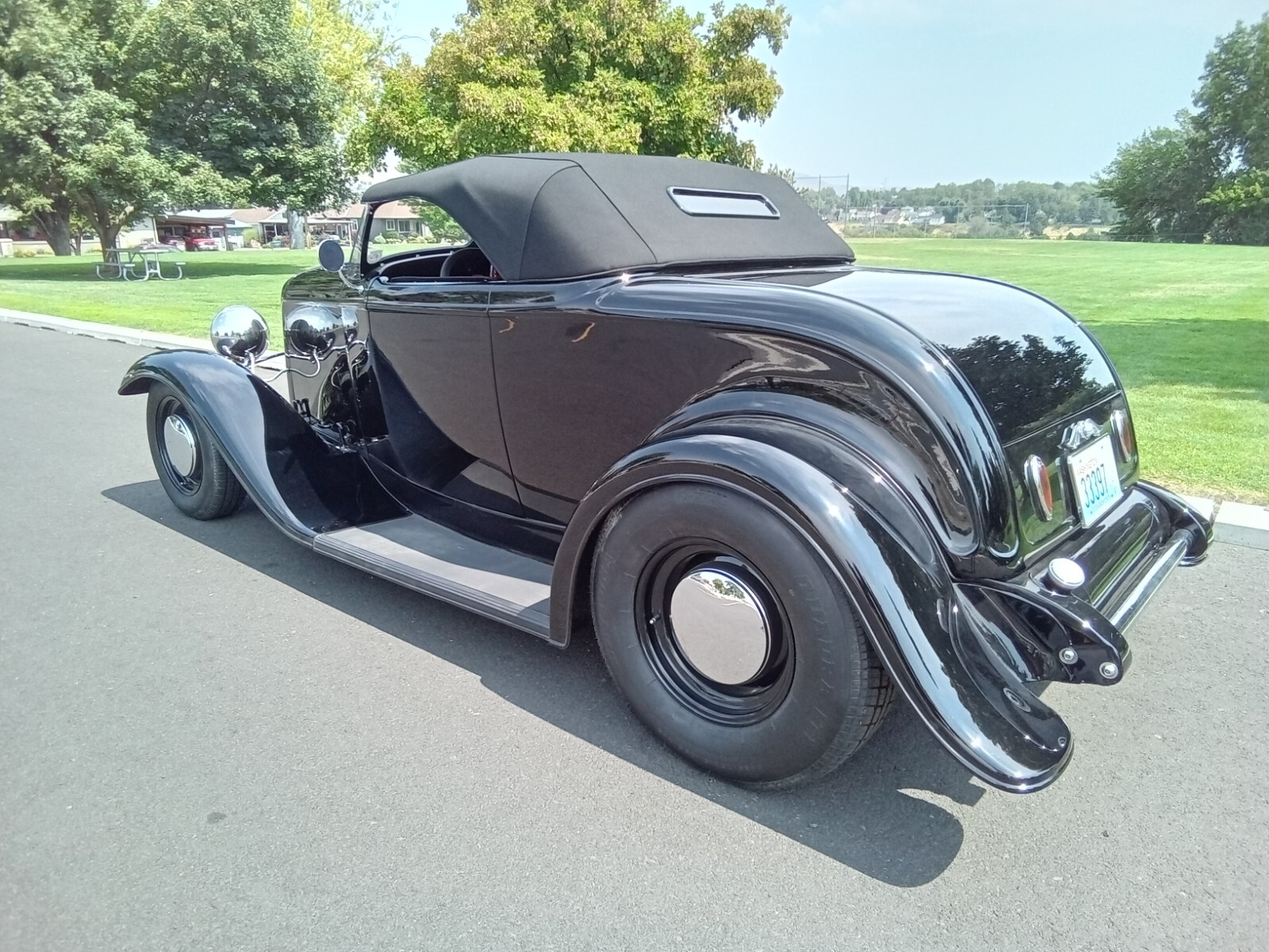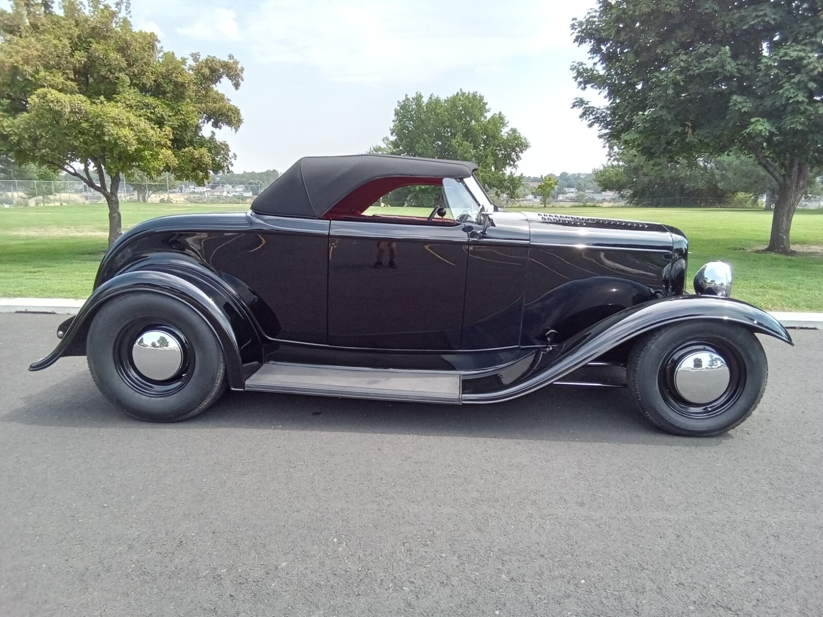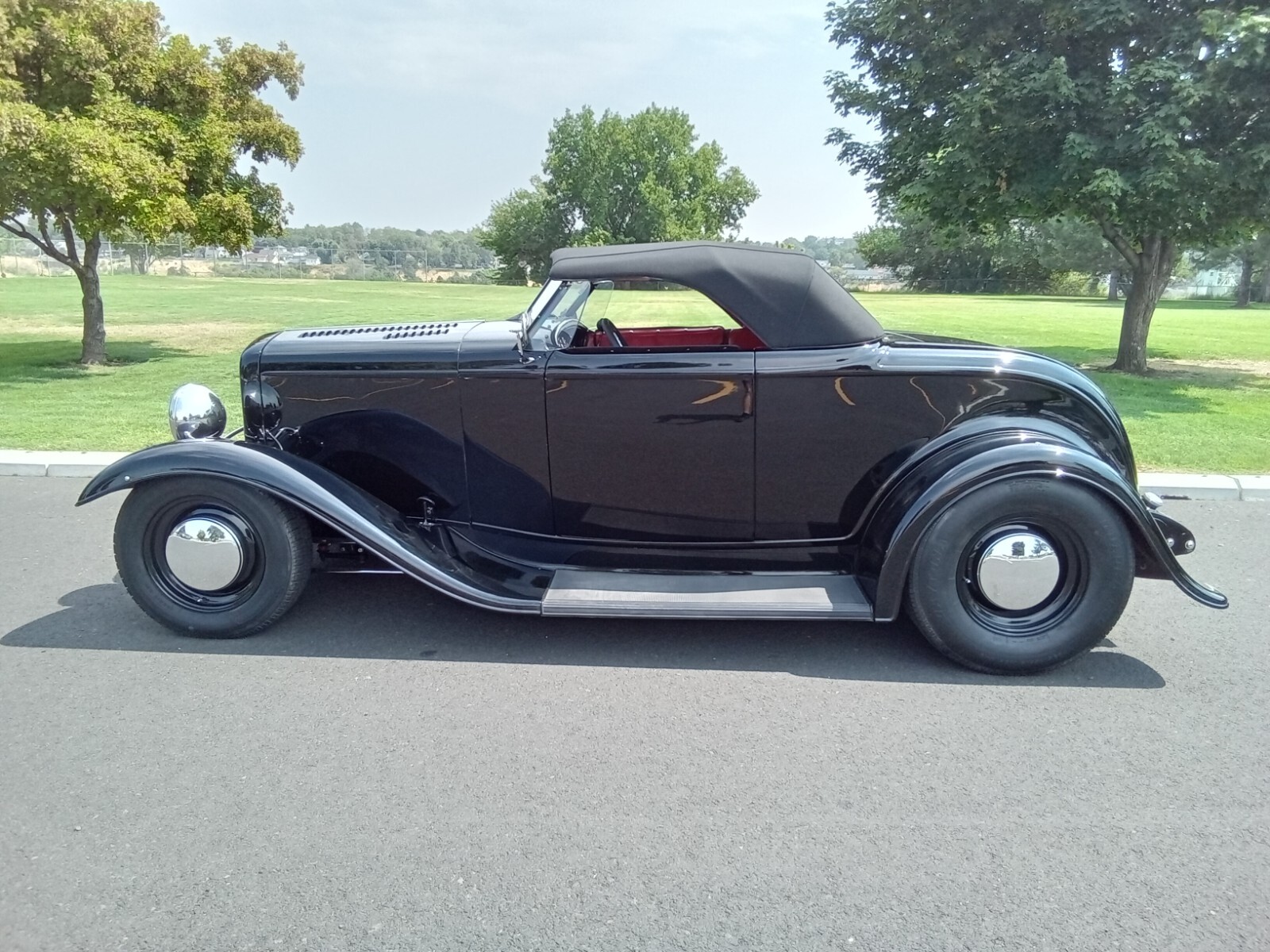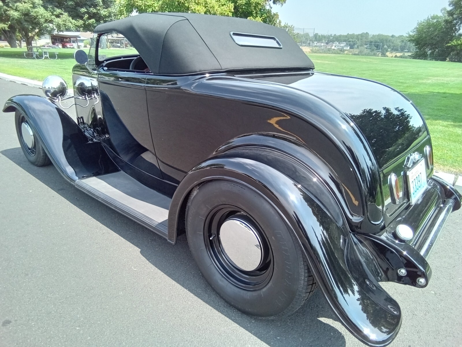 Up for sale is a pro built by Posies 1932 Ford Roadster. This is one nice little Street Rod and with the cool look. I'm listing the car for a nice lady who's husband has passed, and I will take all questions to her. The car was professionally built by Posies Rods and customs.in Pennsylvania. My owners bought the car 10 years ago and now it has 10075 miles on it. I drove the car, and it runs and drives very nice. The build was with a Pete and Jakes frame, Posies front suspension with 4 bar and disk brakes up front. The rear is a Ford 9" with coil overs and ladder bars. The engine is a crate 350 with 202 heads, mild comp 258 cam and 650 cfm carb. A walker radiator keeps it running cool. It has a 700R4 transmission with Lokar tall shifter and it runs strong. It has a Harwood fiberglass body and fenders with medal 4 peace louvered hood and medal trunk lid. Harwood bodies were highly regarded for their quality while in production, but I don't think that they make bodies anymore. Paint is Jet black and done very well. A lift off (non-folding) top is done in black harts' cloth and looks very nice with the Duval windshield. (beautiful body and paint with a cool look) The interior is finished in red leather with GM tilt column and custom dash insert with Stewart Warner wing gages. (very nicely done) Wheels are custom made Vertique to fit under fenders and it is running Ford pickup hubcaps. Headlights are large Ford truck commercial lights with dropped headlight bar and taillights are 1939 Ford. I Couldn't find any flows in the paint and the interior looks new. Overall, condition is very nice showing very little ware if any. This little Ford is one nice Street Rod and a very well-built car. Again, I'm listing this 32 Ford for my friend, and I will take all questions to her. Buyer is responsible for shipping and all shipping costs. We will help with loading on our end and in anyway we can or just come drive it home. For your questions, please call Bill 208-750-0000.
