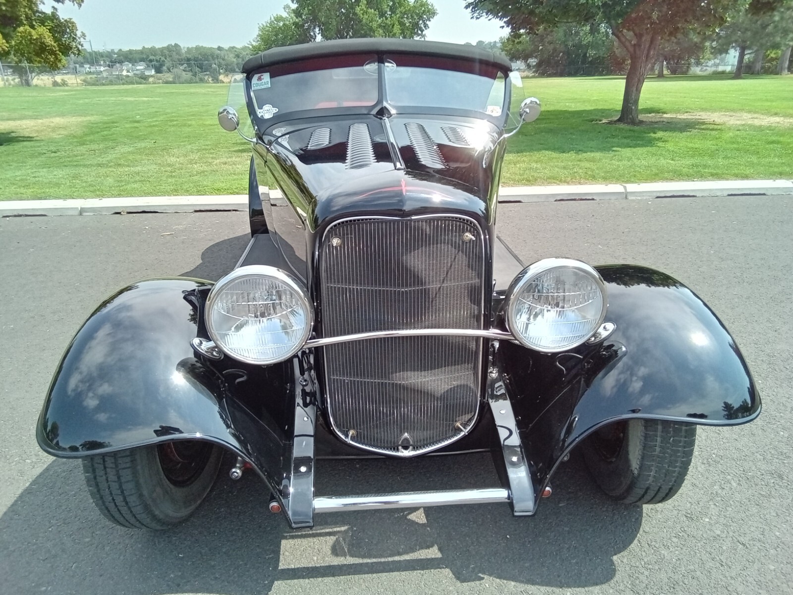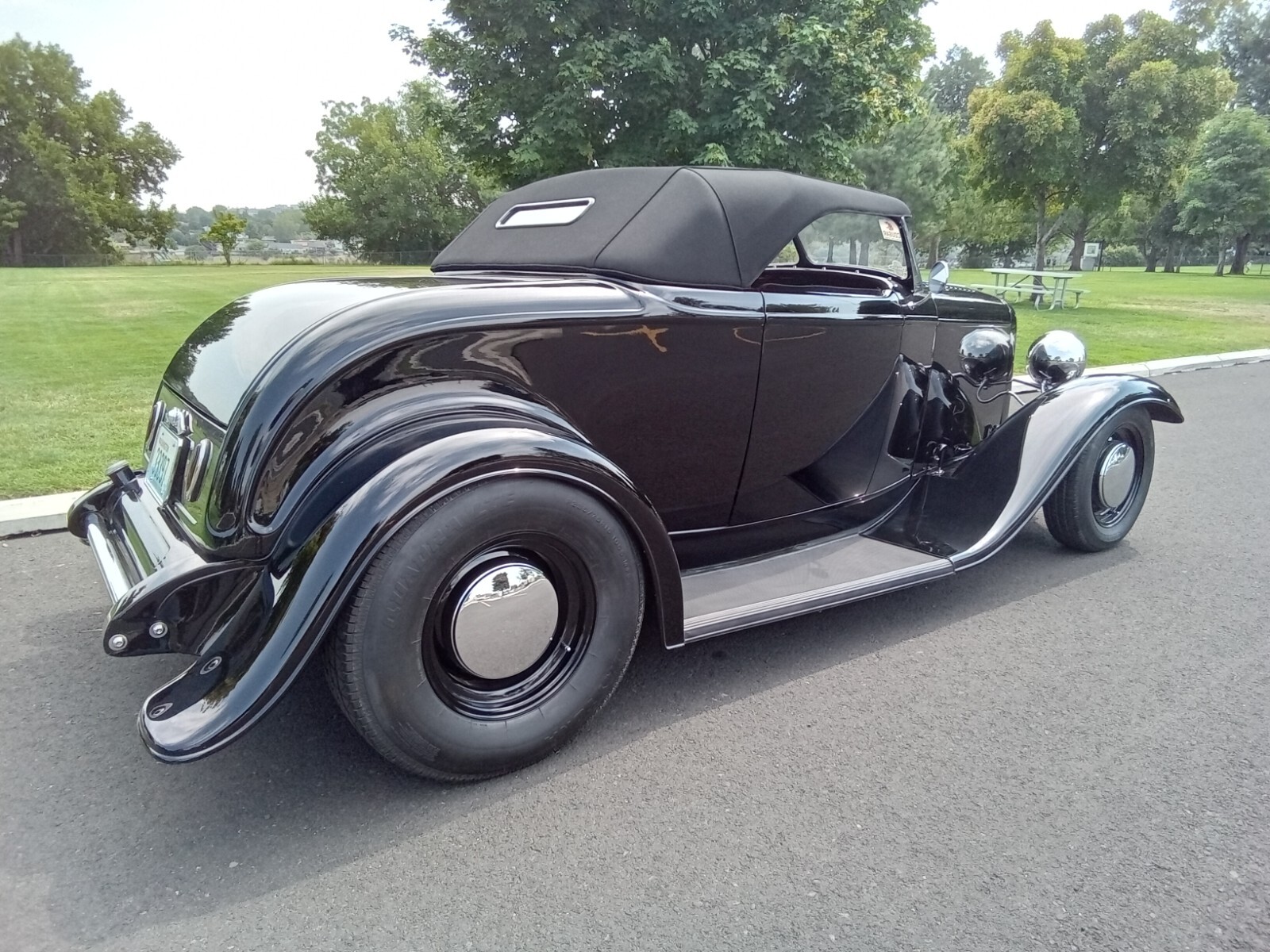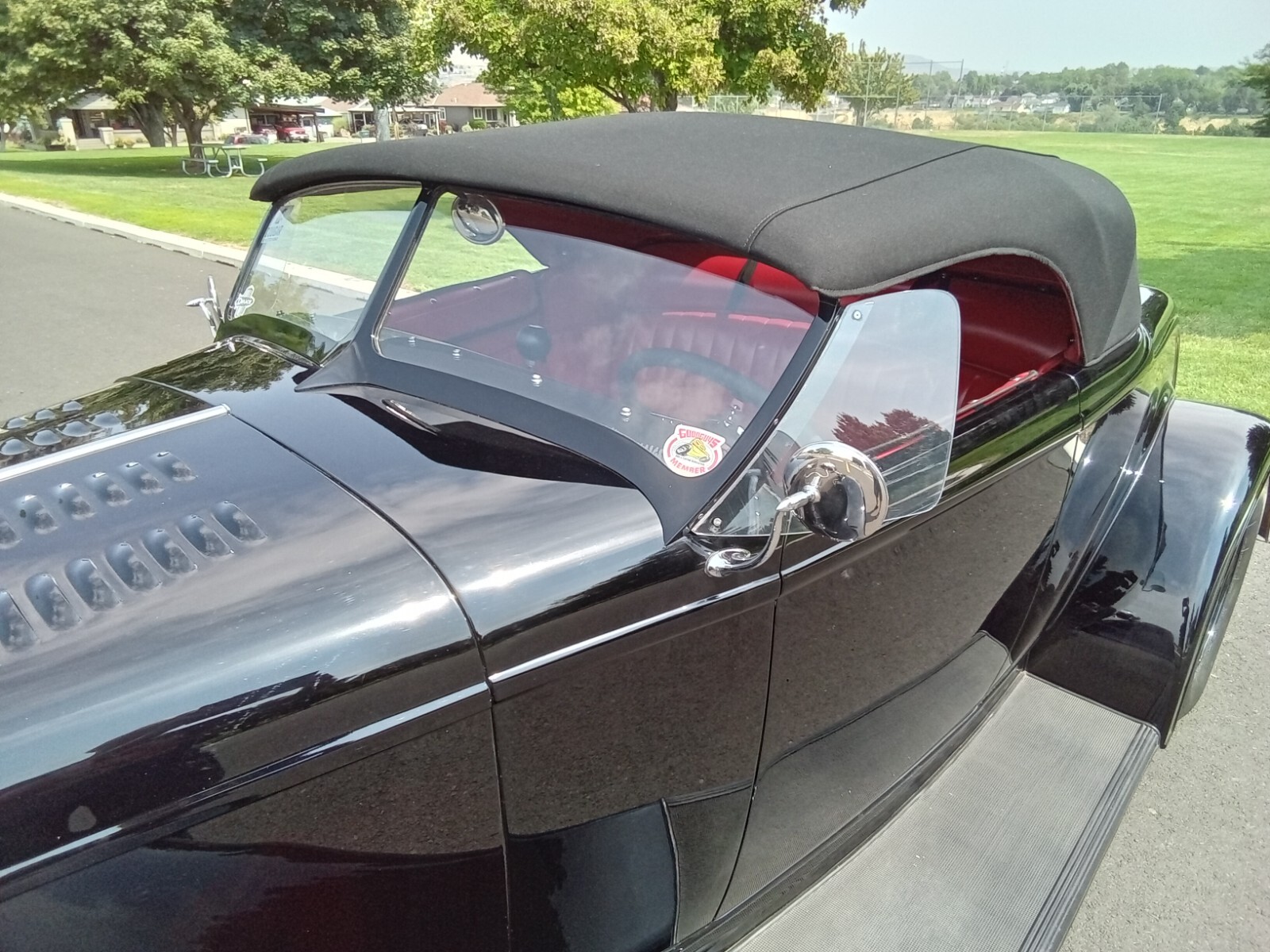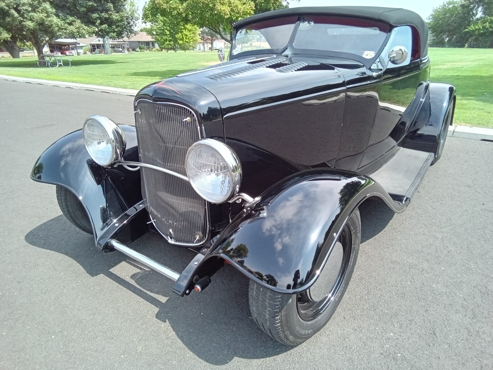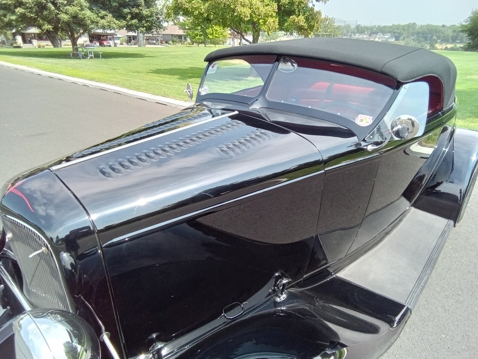 Up for sale is a pro built by Posies 1932 Ford Roadster. This is one nice little Street Rod and with the cool look. I'm listing the car for a nice lady who's husband has passed, and I will take all questions to her. The car was professionally built by Posies Rods and customs.in Pennsylvania. My owners bought the car 10 years ago and now it has 10075 miles on it. I drove the car, and it runs and drives very nice. The build was with a Pete and Jakes frame, Posies front suspension with 4 bar and disk brakes up front. The rear is a Ford 9" with coil overs and ladder bars. The engine is a crate 350 with 202 heads, mild comp 258 cam and 650 cfm carb. A walker radiator keeps it running cool. It has a 700R4 transmission with Lokar tall shifter and it runs strong. It has a Harwood fiberglass body and fenders with medal 4 peace louvered hood and medal trunk lid. Harwood bodies were highly regarded for their quality while in production, but I don't think that they make bodies anymore. Paint is Jet black and done very well. A lift off (non-folding) top is done in black harts' cloth and looks very nice with the Duval windshield. (beautiful body and paint with a cool look) The interior is finished in red leather with GM tilt column and custom dash insert with Stewart Warner wing gages. (very nicely done) Wheels are custom made Vertique to fit under fenders and it is running Ford pickup hubcaps. Headlights are large Ford truck commercial lights with dropped headlight bar and taillights are 1939 Ford. I Couldn't find any flows in the paint and the interior looks new. Overall, condition is very nice showing very little ware if any. This little Ford is one nice Street Rod and a very well-built car. Again, I'm listing this 32 Ford for my friend, and I will take all questions to her. Buyer is responsible for shipping and all shipping costs. We will help with loading on our end and in anyway we can or just come drive it home. For your questions, please call Bill 208-750-0000.