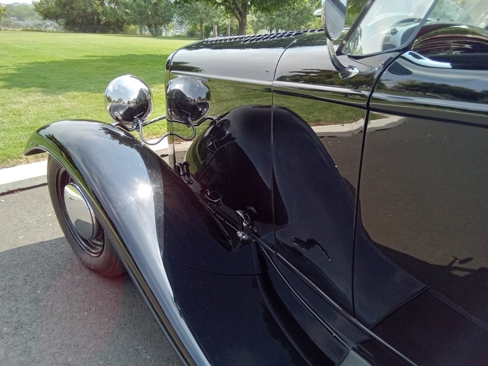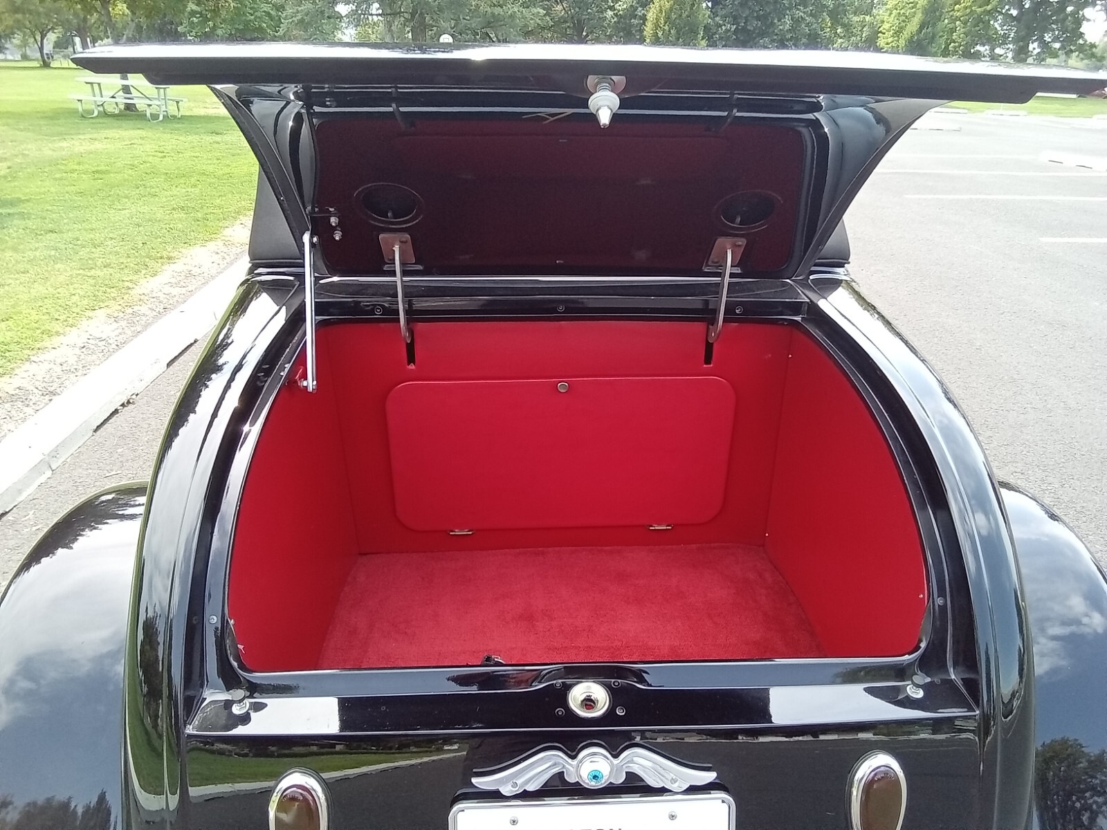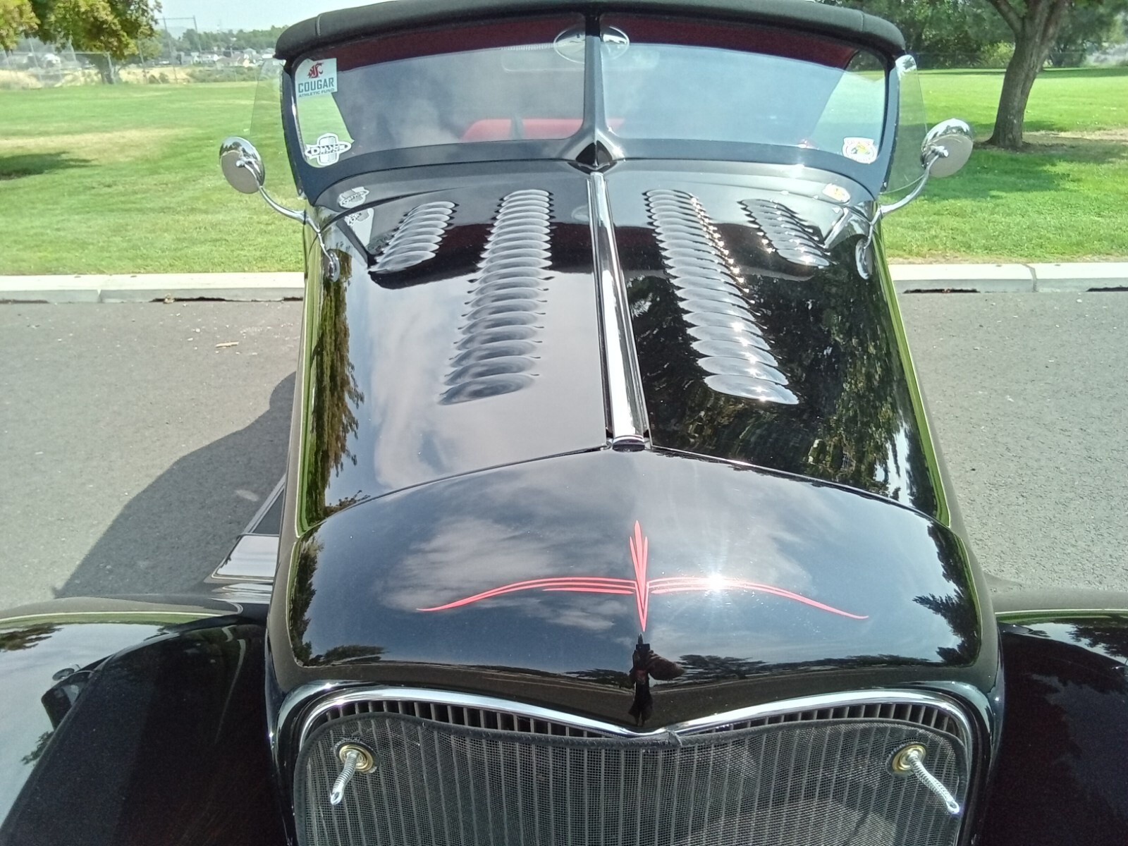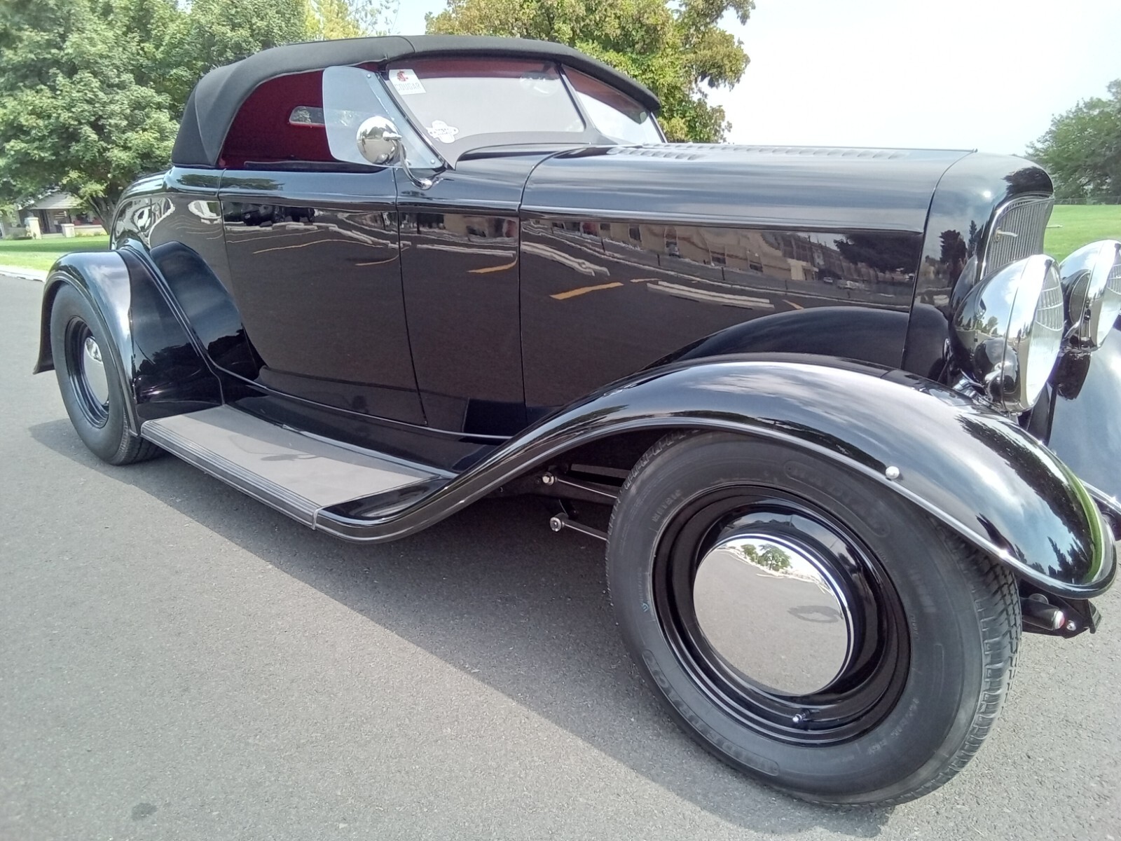 Up for sale is a pro built by Posies 1932 Ford Roadster. This is one nice little Street Rod and with the cool look. I'm listing the car for a nice lady who's husband has passed, and I will take all questions to her. The car was professionally built by Posies Rods and customs.in Pennsylvania. My owners bought the car 10 years ago and now it has 10075 miles on it. I drove the car, and it runs and drives very nice. The build was with a Pete and Jakes frame, Posies front suspension with 4 bar and disk brakes up front. The rear is a Ford 9" with coil overs and ladder bars. The engine is a crate 350 with 202 heads, mild comp 258 cam and 650 cfm carb. A walker radiator keeps it running cool. It has a 700R4 transmission with Lokar tall shifter and it runs strong. It has a Harwood fiberglass body and fenders with medal 4 peace louvered hood and medal trunk lid. Harwood bodies were highly regarded for their quality while in production, but I don't think that they make bodies anymore. Paint is Jet black and done very well. A lift off (non-folding) top is done in black harts' cloth and looks very nice with the Duval windshield. (beautiful body and paint with a cool look) The interior is finished in red leather with GM tilt column and custom dash insert with Stewart Warner wing gages. (very nicely done) Wheels are custom made Vertique to fit under fenders and it is running Ford pickup hubcaps. Headlights are large Ford truck commercial lights with dropped headlight bar and taillights are 1939 Ford. I Couldn't find any flows in the paint and the interior looks new. Overall, condition is very nice showing very little ware if any. This little Ford is one nice Street Rod and a very well-built car. Again, I'm listing this 32 Ford for my friend, and I will take all questions to her. Buyer is responsible for shipping and all shipping costs. We will help with loading on our end and in anyway we can or just come drive it home. For your questions, please call Bill 208-750-0000.