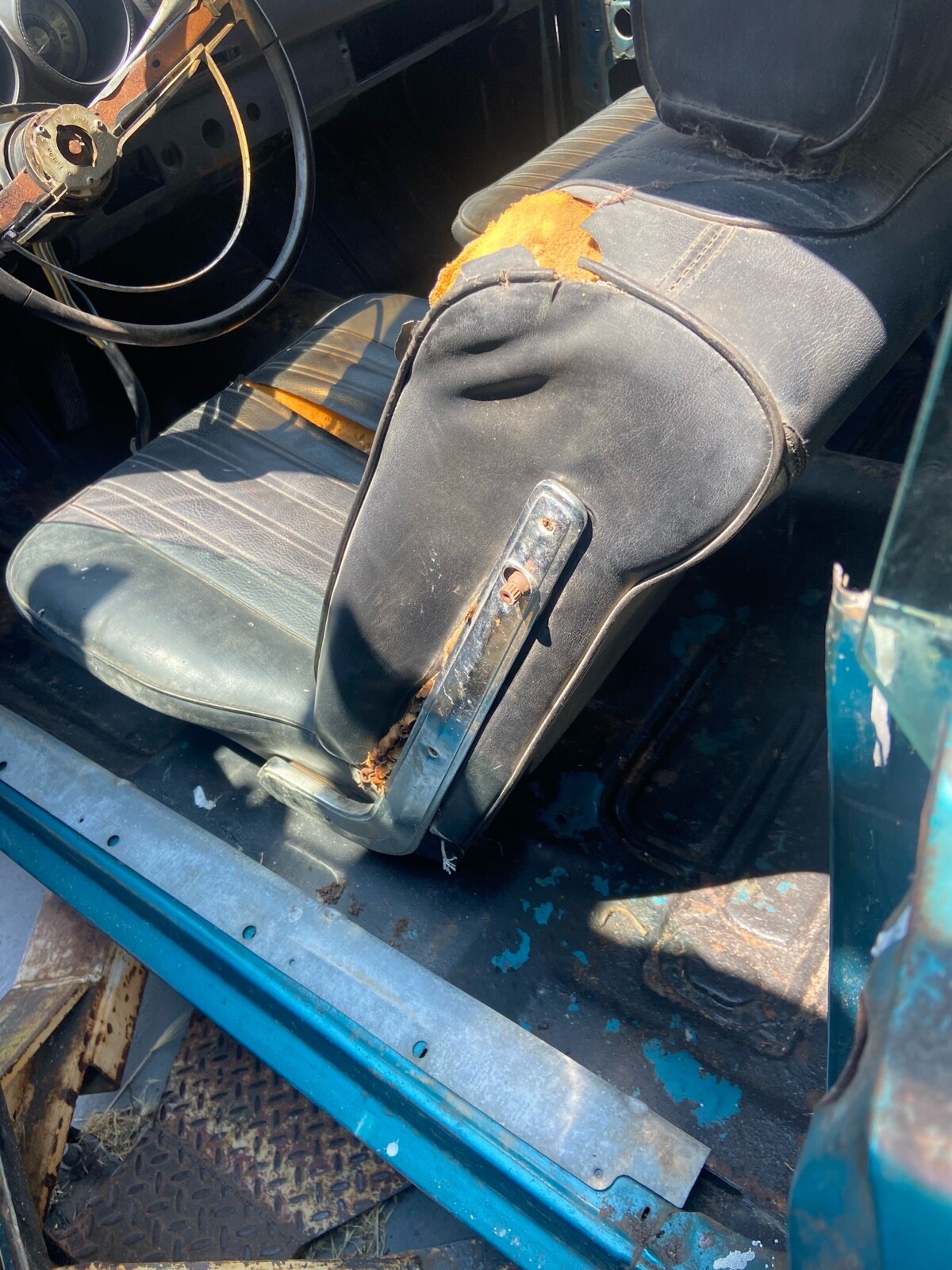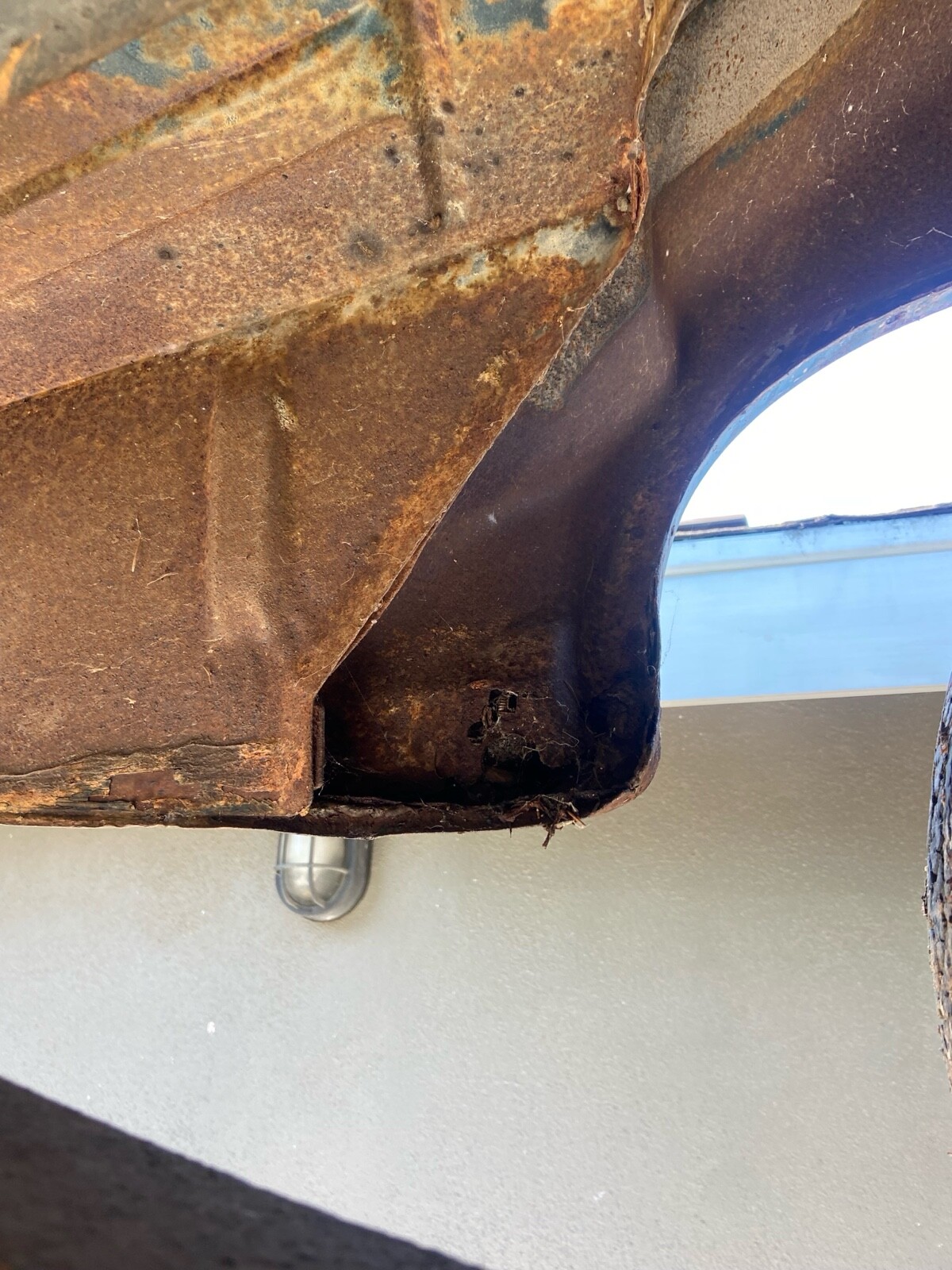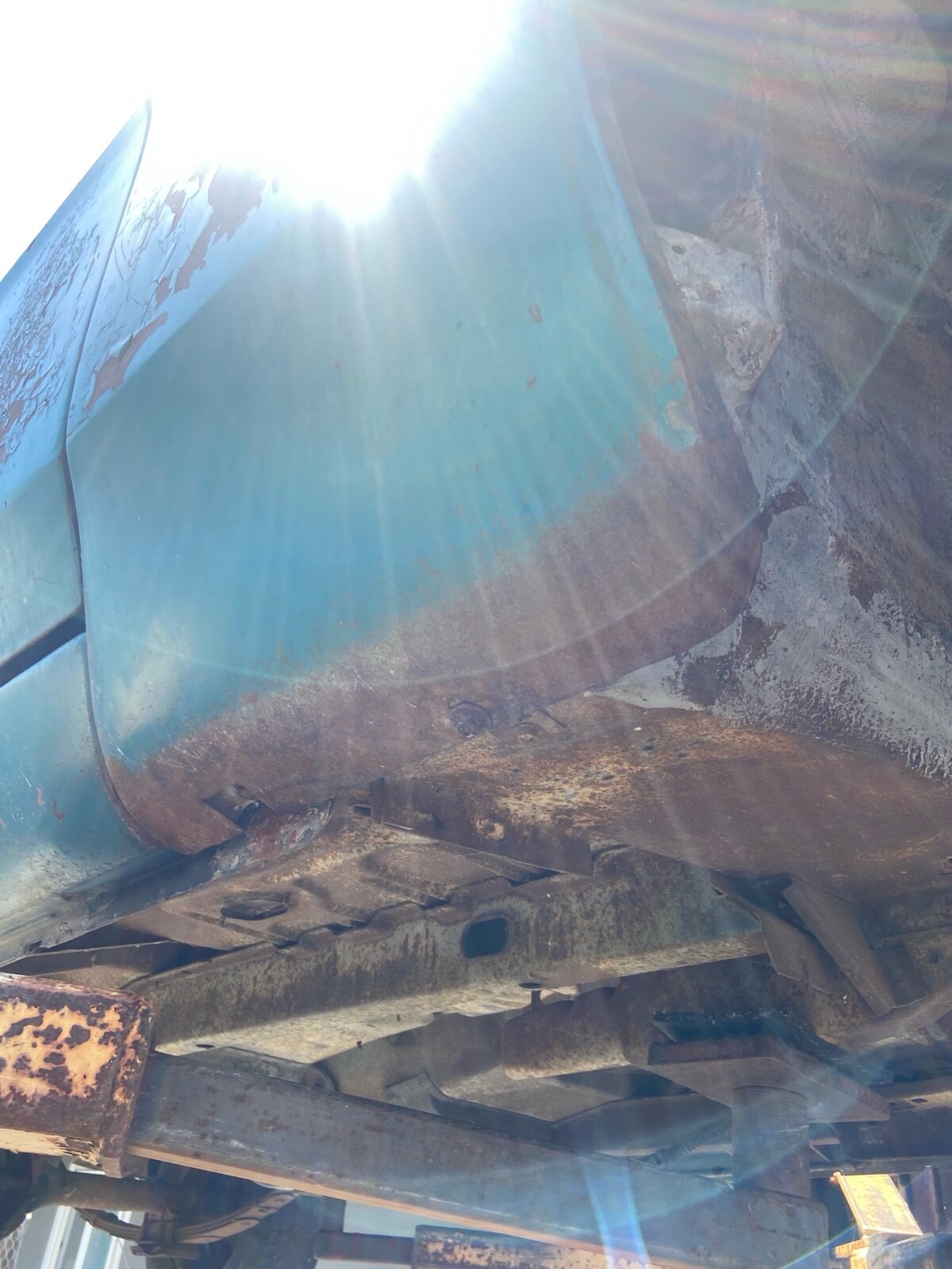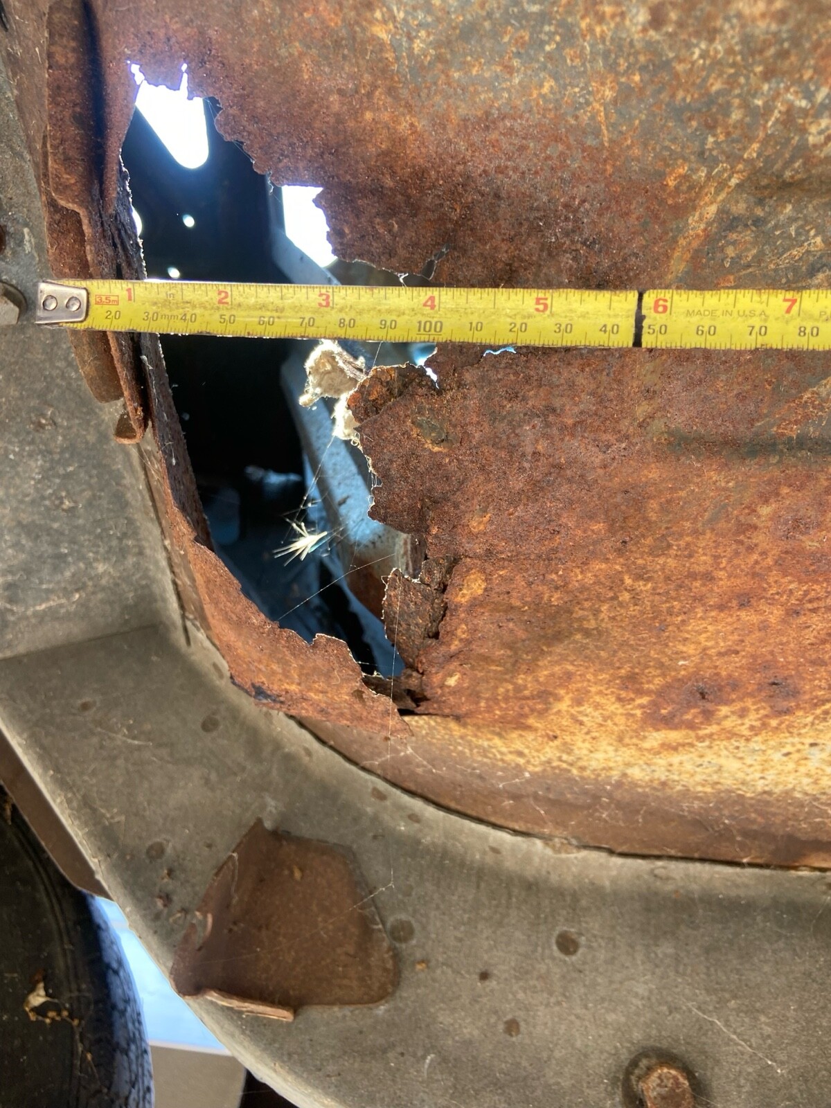Rust in rear seat area about the size of my fist.Hood was striped and not sealed it is rusted.minimal rust in rear wheel well. Steering wheel needs to be restored.
