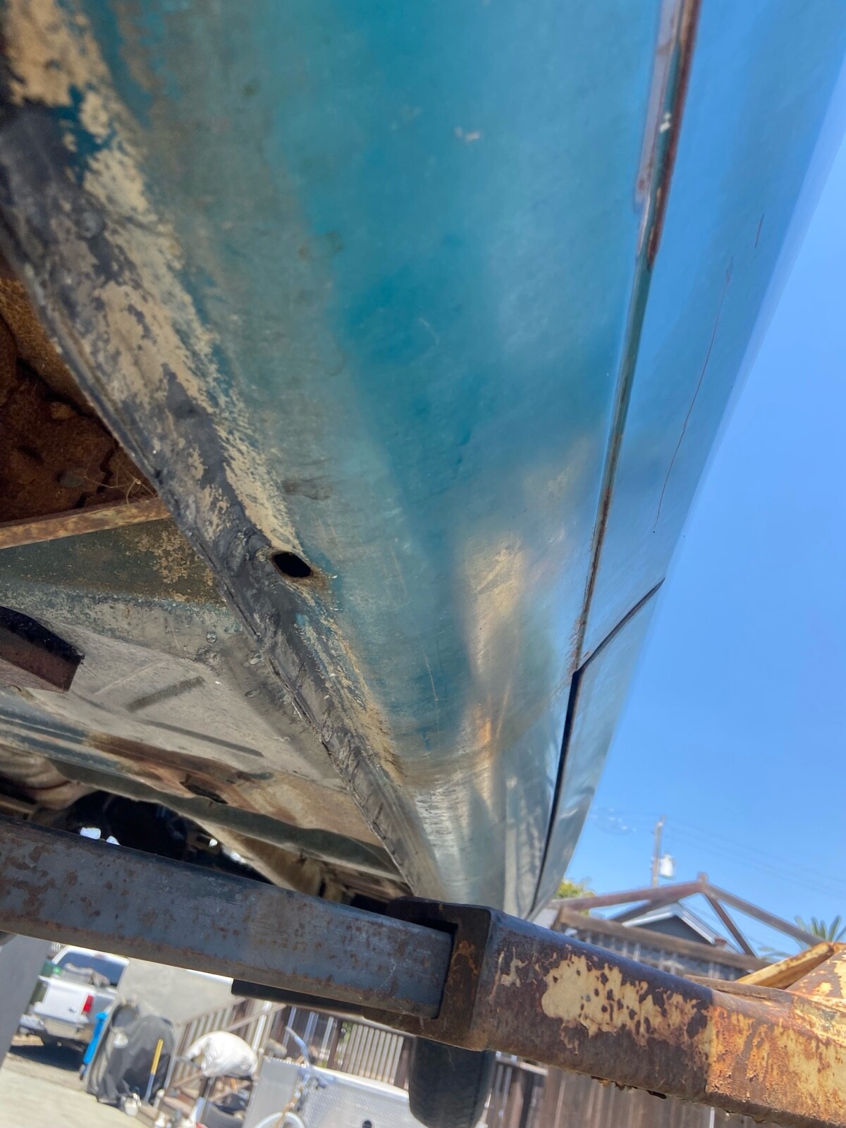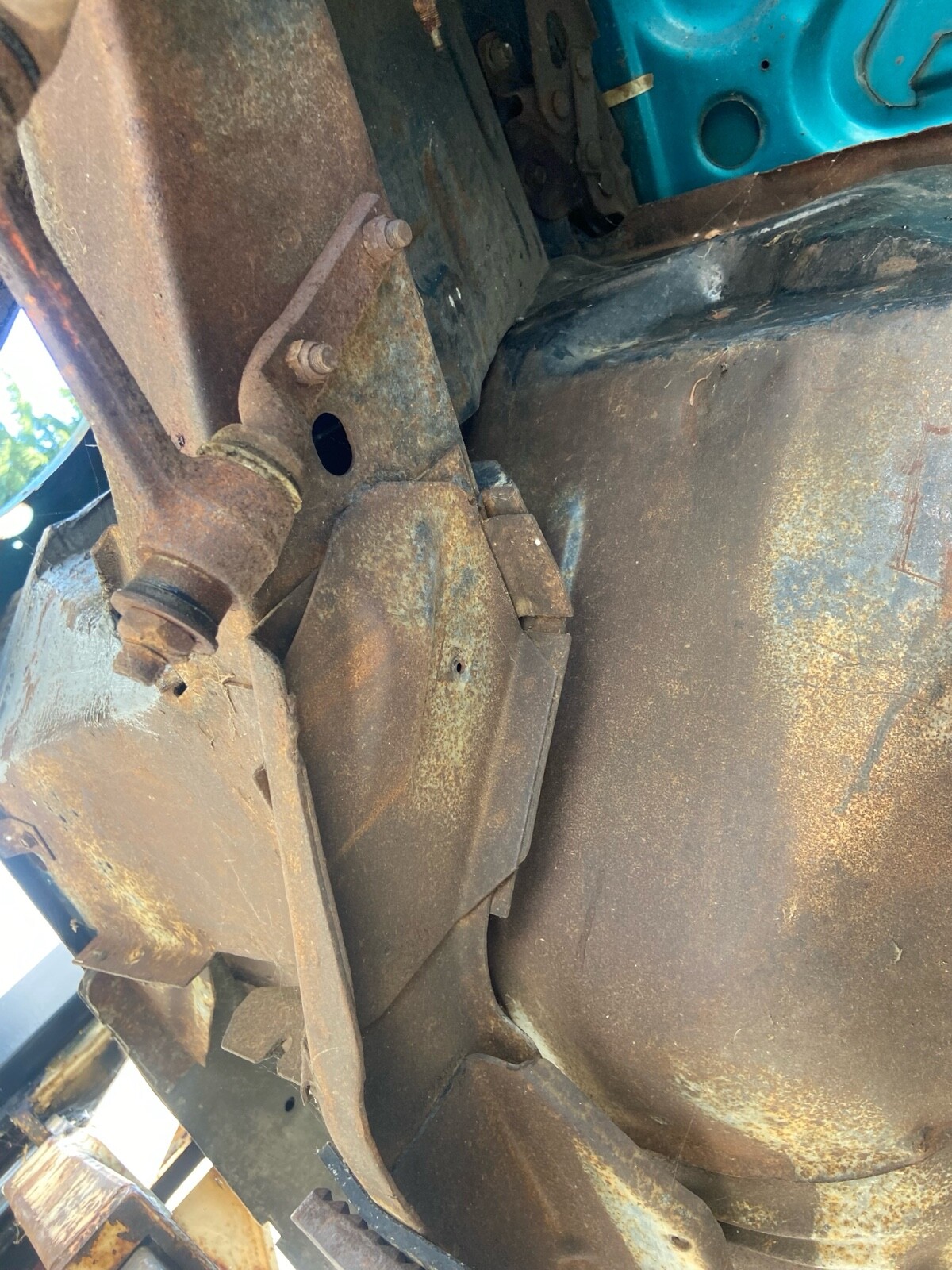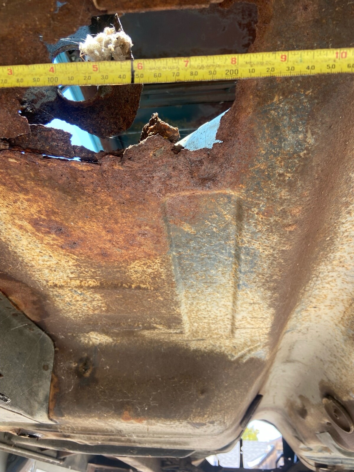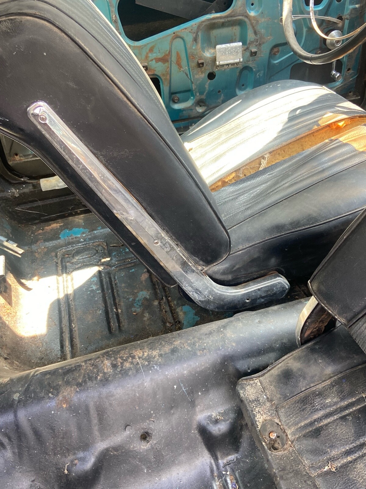 Rust in rear seat area about the size of my fist.Hood was striped and not sealed it is rusted.minimal rust in rear wheel well. Steering wheel needs to be restored.
