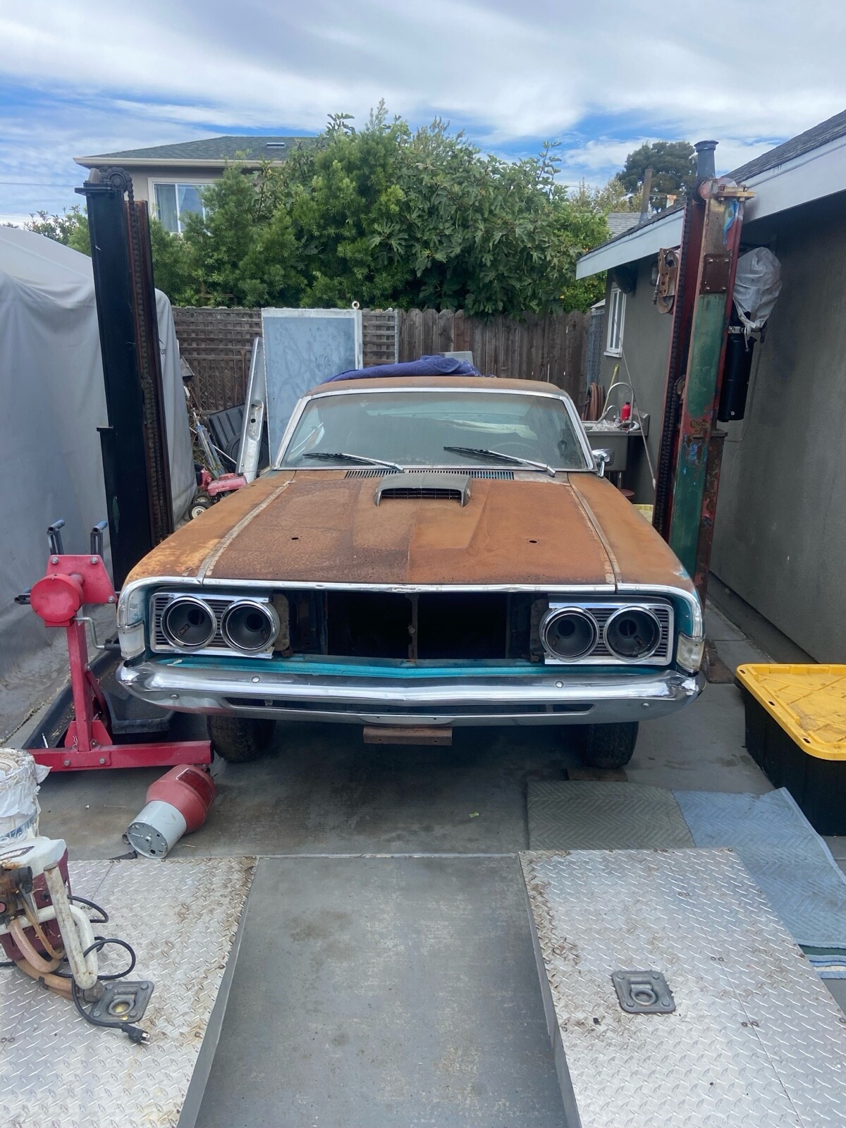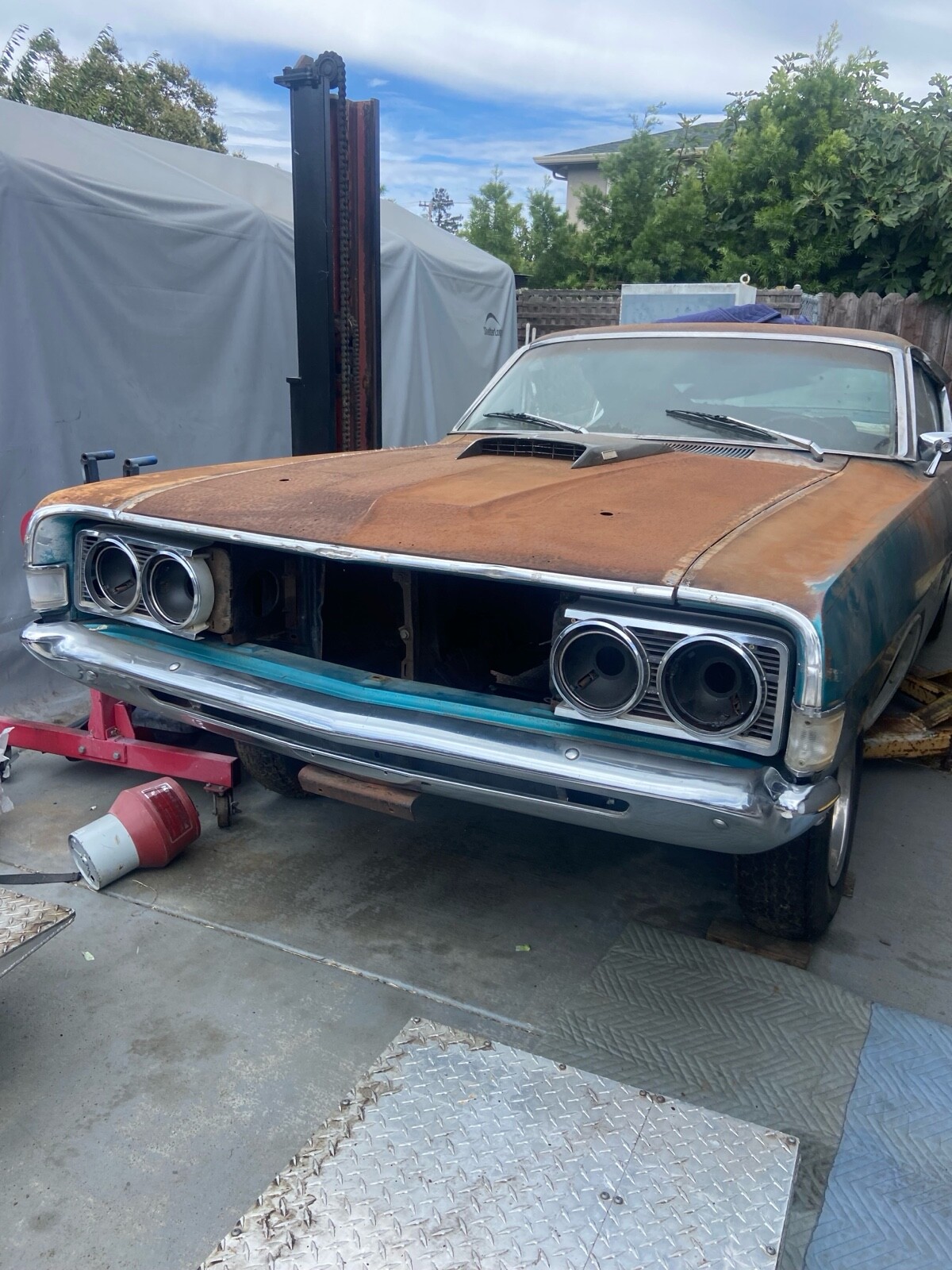 Then was dissembled completely for paint.The owner then got busy with other projects and the car was stored outside.
