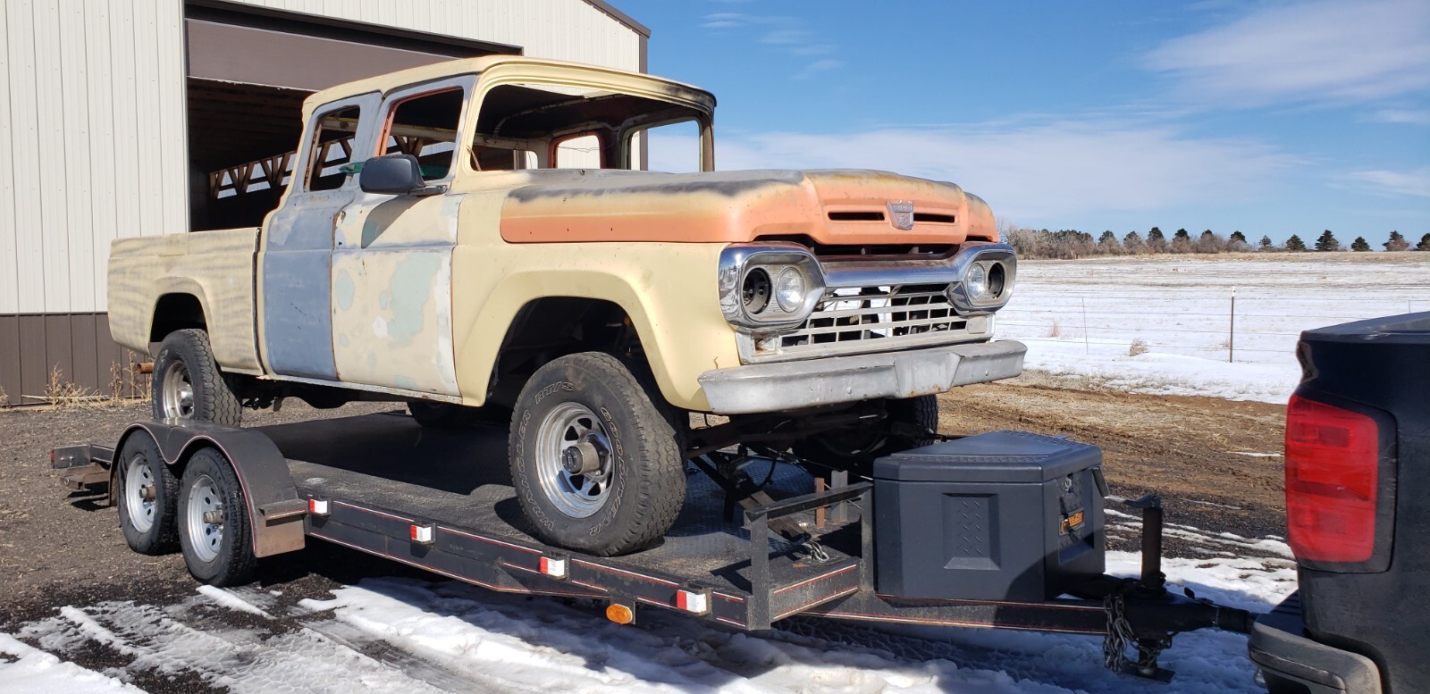 1960 F100 4x4 3 door truck. Truck is not running. Truck was from my dad, who passed away in 2019. Originally wanting to keep it but when researching it found we don't have the time, money or expertise to get this truck running. I do have all the glass, including the moonroof. Boxes of misc. parts are in the cab. Clean title in hand. Restomod was started by previous owners, truck has been sitting, garaged, since 2012. I'm not car/truck savvy so am glad to send additional pictures as requested.