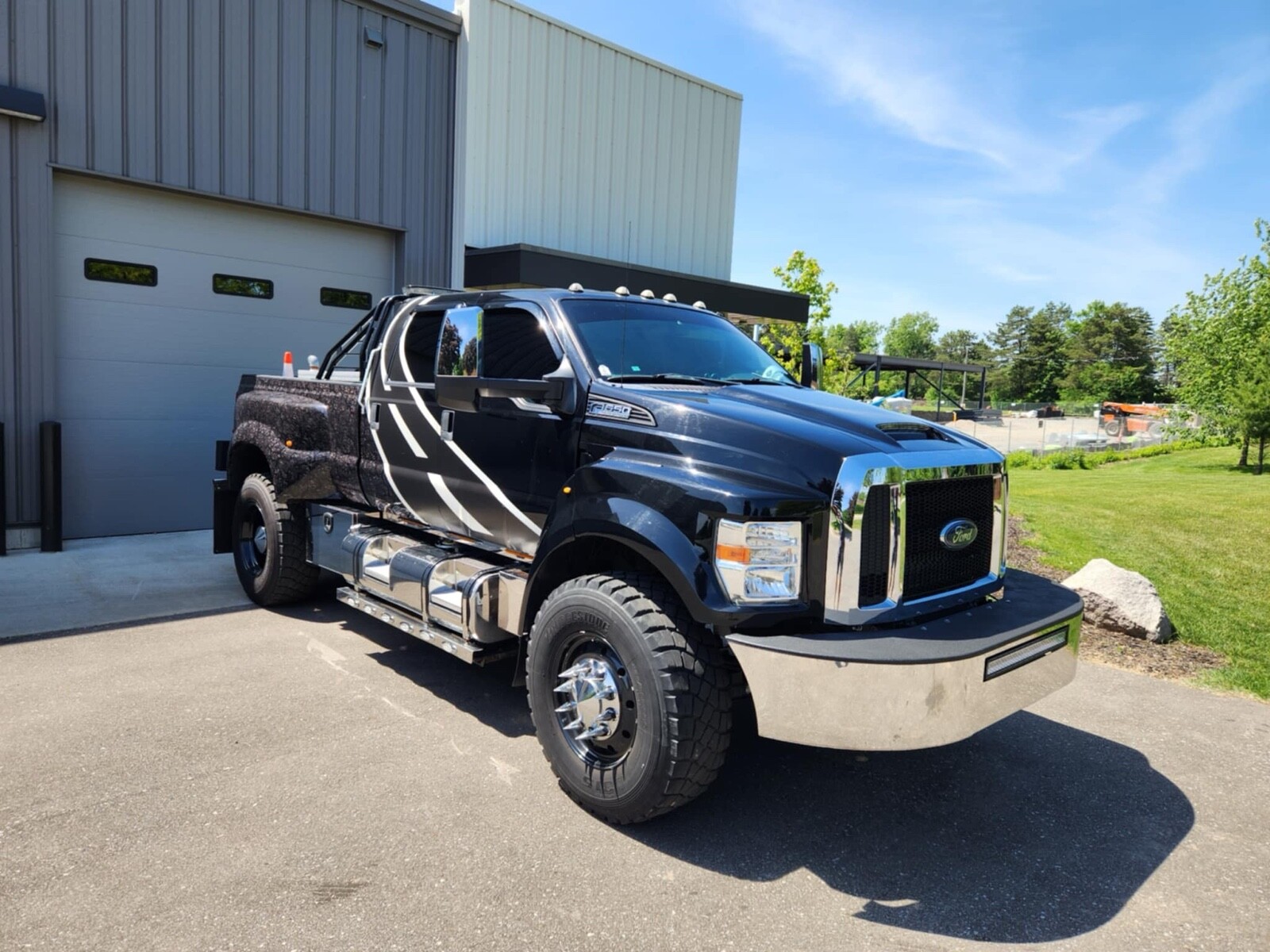 Selling my custom f650. Originally owned and built for NBA star Shaquille O'Neal by supertrucks. The truck has had many more upgrades since he owned it as well. I use it to haul my boat and equipment but it rarely gets used. Only 52,600 original miles on it. 6.7 powerstroke turbo diesel and automatic transmission. Rear Air bag suspension. Built by supertrucks with no expense spared. Custom seats and power fold down rear seat. Nice stereo system. Truck has never seen salt or snow. Overhead strobe Lightbar and water tank not included but I would sell them with it if your interested for a negotiated price. Water tank has Honda motor and works great to clean off the toys when your done for the day. Was only used to wash down boat and toys after use. Water tank has power hose reel. Look these trucks up if your interested at supertrucks. They are not cheap but tow amazing and are a blast to drive. Great for hauling race boats or your toy trailer around. Rigid led lights in front and back bumpers. Rhino liner on rear bumper and in bed. Awesome air train horns mounted under truck. Power running board steps. Custom bumpers, lots of led running lights, digital brake controller, vhf radio, interior lighting on switch, heated seats, powder coated rims with spike lug covers, etc. truck is rated for 26,000. Front 8500 rear 17500. The truck has a wrap on half the doors and on the bed. Could easily be removed and the truck is all black underneath. Truck runs a drives great and it ready to hit the road. Gets a lot of attention everywhere it goes. Great billboard for a company or race industry.
