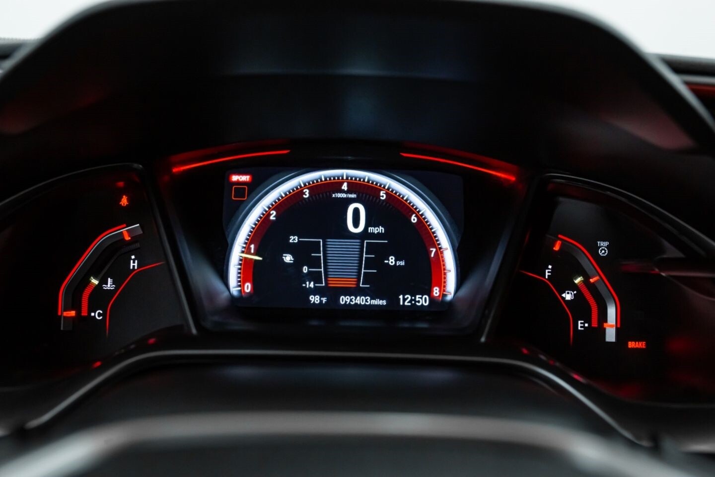 This 2018 Honda Civic Type R Touring is a well-equipped sports car that shows how capable a Honda can truly be. Under the hood is a turbocharged 2.0-liter inline four-cylinder engine that produces 306 horsepower and 295 lb-ft of torque, all of which is sent through a six-speed manual transmission to the front wheels. The engine is not stock, however, having received a PRL cold-air intake system, an upgraded Downpipe and an aftermarket overpipe, which connects to a Tomei Expreme Ti titanium exhaust system. This aggressive machine comes equipped with OEM 20" Honda wheels and is finished in Crystal Black Pearl, a deep hue that makes the car look even sportier. In the interior, this Civic Type R Touring offers cloth "Type R" bucket seats, a semi-digital gauge cluster, selectable drive modes, multi-zone climate controls, quasi-carbon fiber interior panels, and an infotainment system with Bluetooth, navigation, apps, climate controls, phone connectivity, AUX, Apple CarPlay, Android Auto, and a backup camera, truly making this car the complete package.