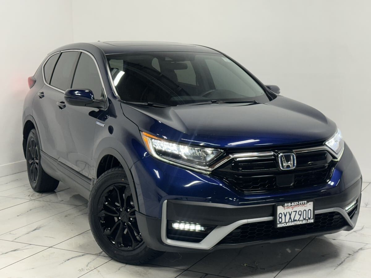 Get into our Obsidian Blue Pearl One Owner 2022 Honda CR-V Hybrid EX AWD and get ready for miles and miles of driving fun! Powered by a 2.0 Liter 4 Cylinder and 2 Electric Motors generating a combined 212hp paired to a CVT with a Sport mode for more spirited adventure. Nimble and notably efficient - this All Wheel Drive SUV scores nearly 40mpg in the city with a daring design that includes a dramatic grille - LED lighting - fog lamps - a power sunroof - and great-looking alloy wheels. It's a look that evokes style and substance! A roomy cabin is another highlight for our EX trim that features first-class accommodations with heated front seats - 12-way power for the driver - a multifunction steering wheel - dual-zone automatic climate controls - remote start - and Smart Entry with Walkway AutoLock. That kind of innovation is matched with smart technology like a 7-inch touchscreen - Android Auto/Apple CarPlay - Bluetooth - and a six-speaker sound system. Drive with confidence knowing you're surrounded by Honda safety features such as a multi-angle backup camera - automatic braking - a blind-spot monitor - lane-keeping assistance - adaptive cruise control - ABS - Smart Vent airbags - and more. Our CR-V Hybrid EX saves fuel without sacrificing the sporty utility that you demand from an SUV! Save this Page and Call for Availability. We Know You Will Enjoy Your Test Drive Towards Ownership!