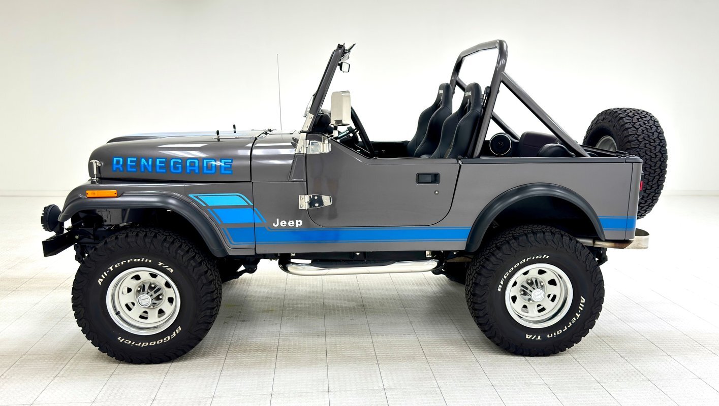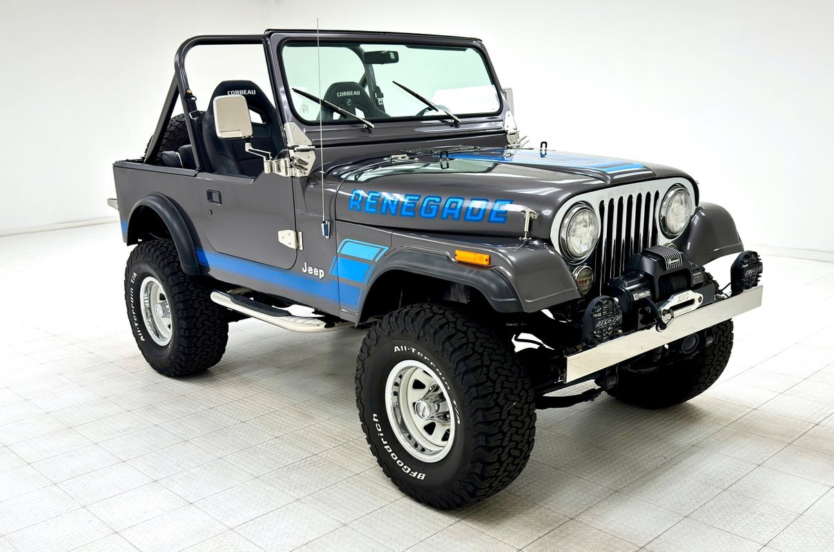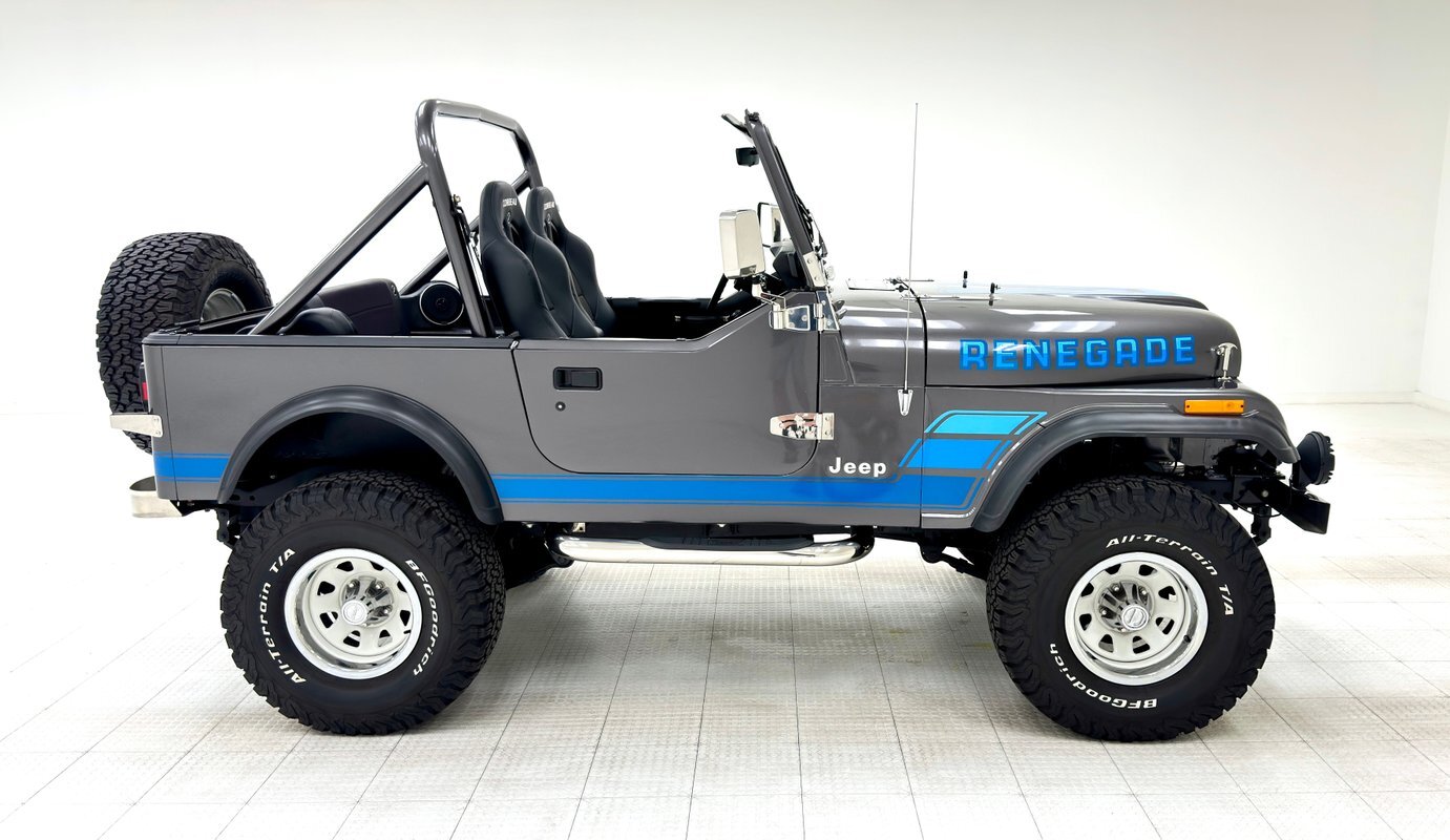 For consignment, a 1986 Jeep CJ7 Renegade, restored in 2020 and with an engine that was rebuilt less than 3,000 miles ago. This Jeep will be coming with two sets of doors, YJ 1/2 doors and CJ full soft doors and top.