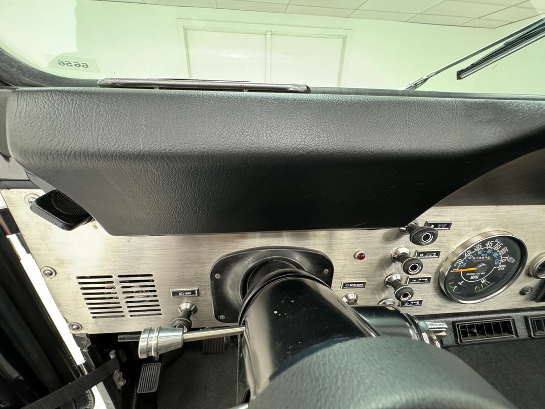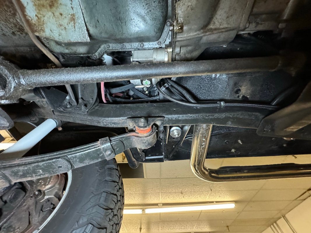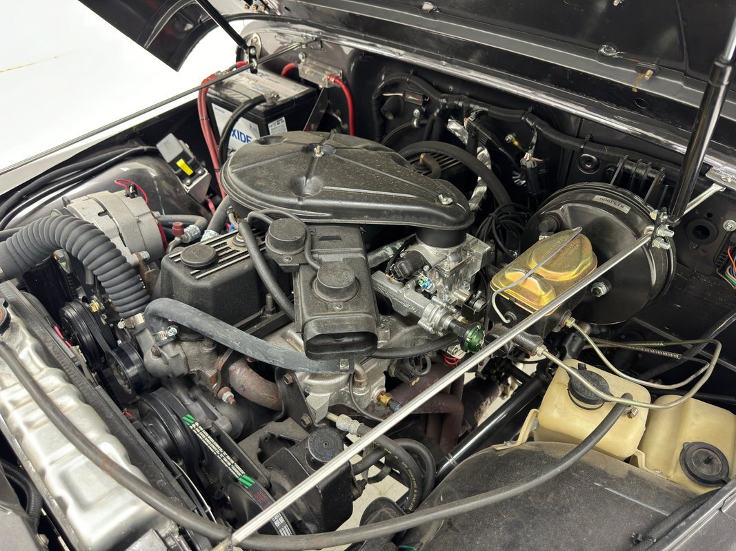 Unhook the latches and open the hood where we find the rebuilt 258ci inline six cylinder fueled by a Holley Sniper EFI system and tied to a T5 5-speed manual transmission. Power is initially sent to the AMC 20 rear axle and then via a Dana 300 transfer case to the Dana 30 axle in front. Power brakes are onboard with discs in front and drums in the rear.