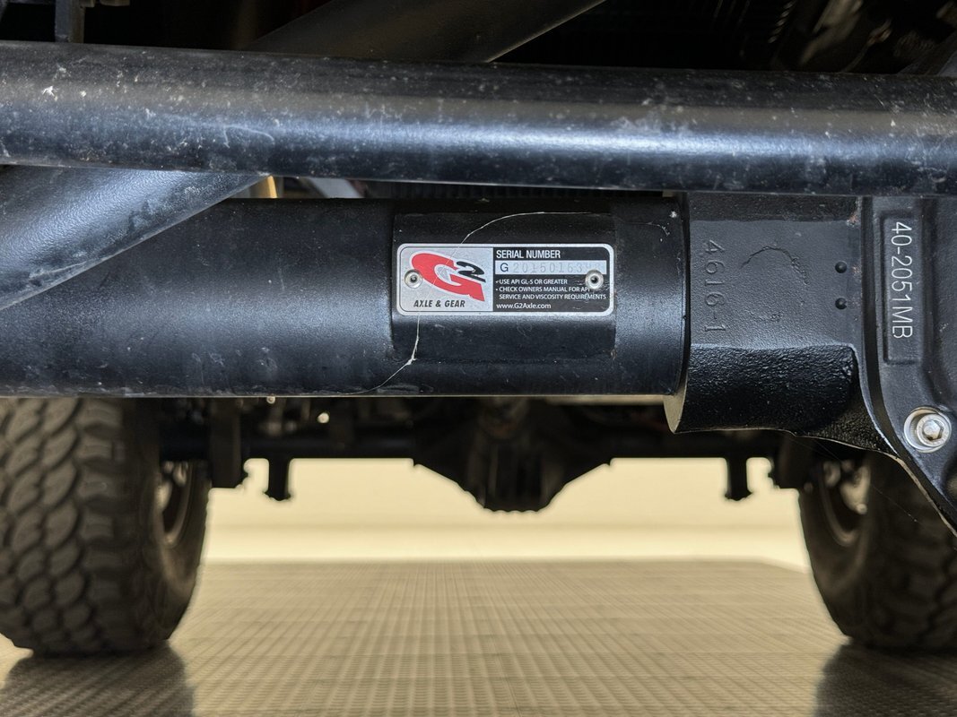 Long gone is the original gasoline burning engine, and in its place now resides a 5,032 mile Cummins R2.8 liter 4 cylinder turbo diesel mill. This "clacker" is fed by EFI and the installation was performed by Axis Industries. A new 5-speed manual transmission was installed in March of 2023 and the receipts are included. 4.10 geared Dana 44 G2 Core axles with electric lockers help you climb your way over every obstacle that gets in your path. Our consignor notes that new Adams Extreme Duty 1330 and 1350 driveshafts have been installed as well. "Every path you know..."