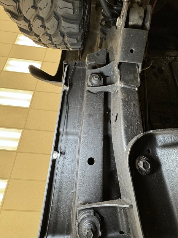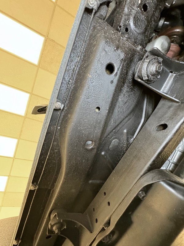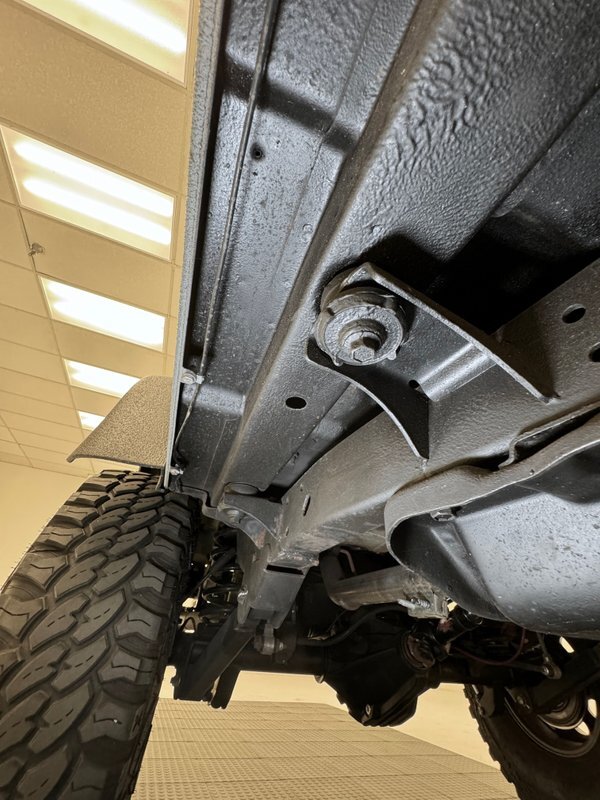 Deep black Line-X coating covers all components of the undercarriage save for the OEM style single exhaust system. Nary an area of surface rust with all steel strong for the straight frame and suspension underneath. Any issues that had developed have been rectified and things are looking tip top. Locked N Loaded 4x4 fabrication in Collegeville, PA was called up for the installation of the Clayton 4" short arm lift, (4 link with coil springs front and rear), with Fox 2.0 shocks, a Fox steering stabilizer, and Currie Current Lync heavy duty tie rod system as well as the JSK rear trac-bar. Power 4 wheel disc brakes are on for your wilderness stopovers. "Fjord every stream..."