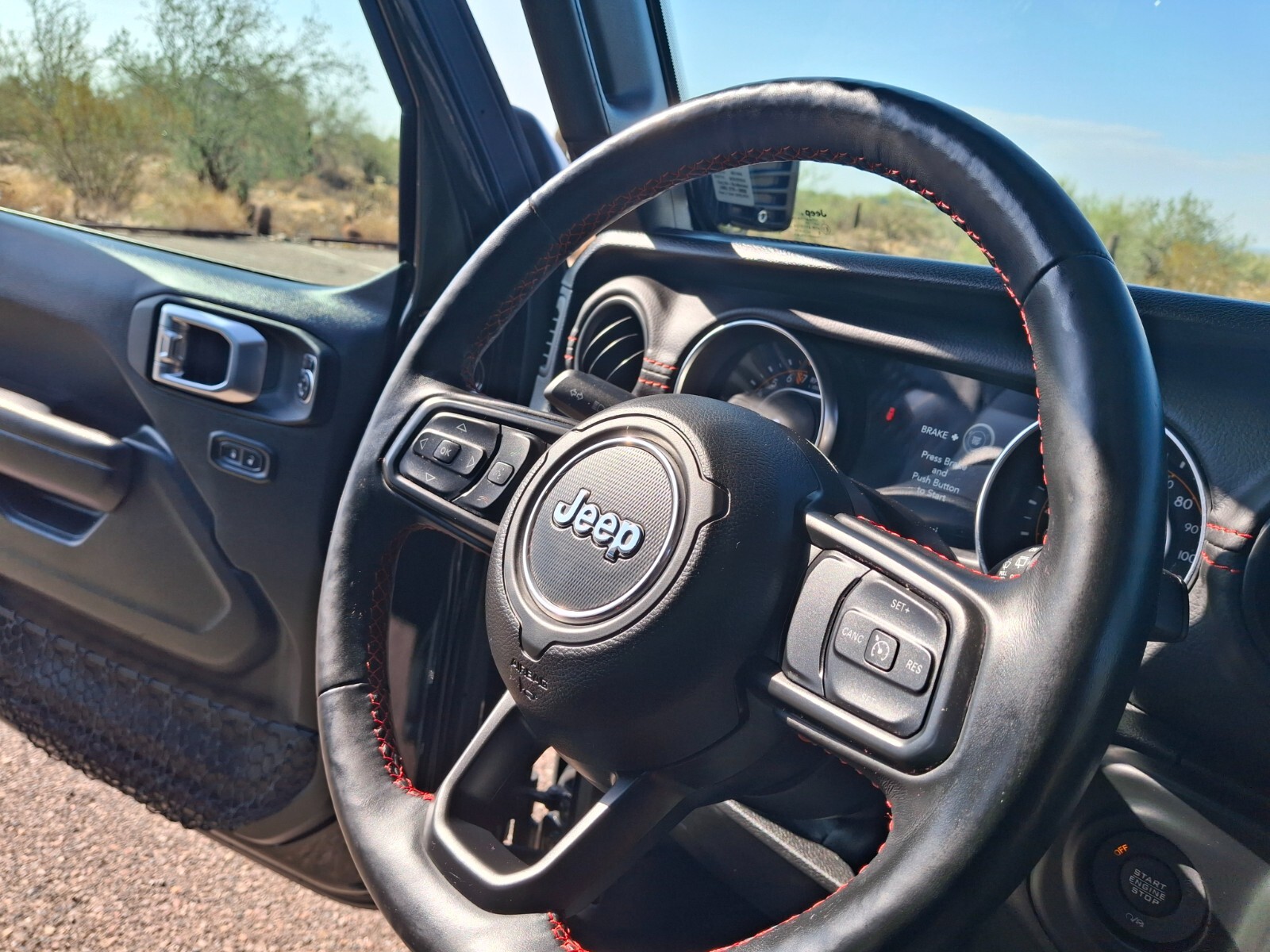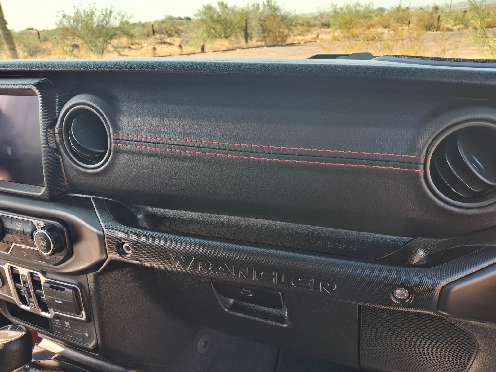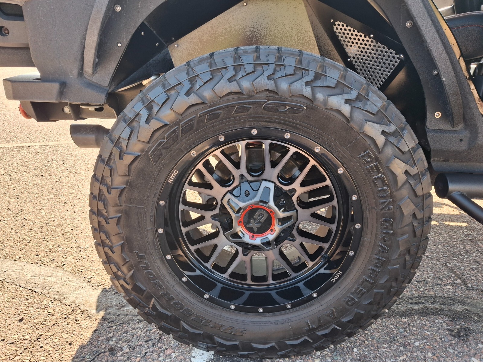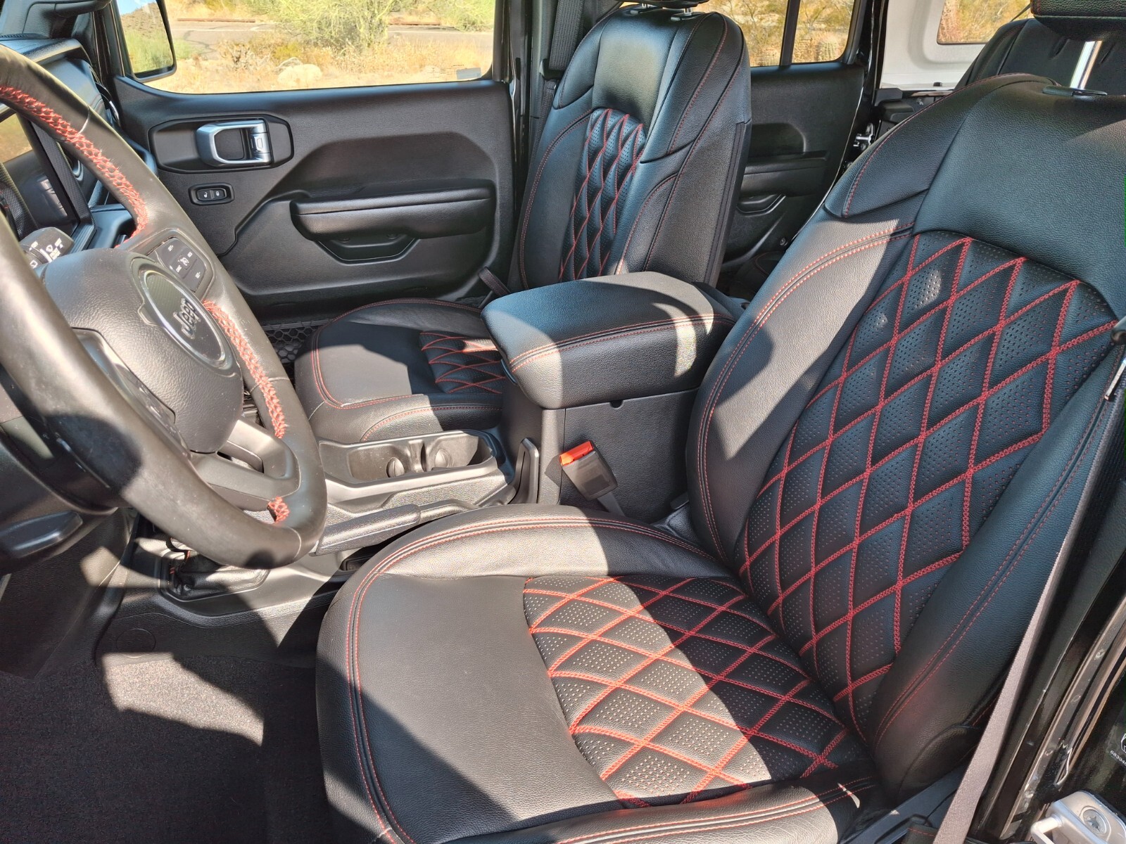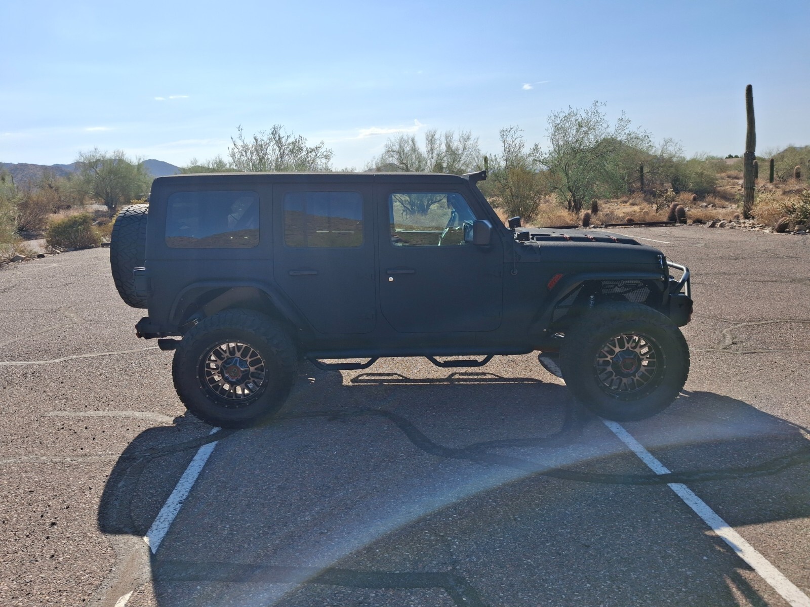 This custom build beauty was built back in 2021 in Carrolton, TX by a custom jeep builder and has been taken care of meticulously and is in phenomenal shape. I flew out to their facility and picked out all the customizations seen below. It has been garage stored, has a clean/clear title in hand and has ONLY been street driven, so it hasn’t been beat up on at all on the trails and backroads. This Jeep also comes with an electric hoist for the garage to lift off and store the hardtop and works through an app. This Jeep is coated with the Dupont Kevlar fiber spray when it was built and is a head turner and gets compliments everywhere I take it. It has been routinely maintenanced and runs perfectly. Let me know if you have any questions and no low ball offers or trades. Thanks. FACTORY OPTIONS INCLUDE/ 8.4 SCREEN WITH ALPINE AUDIO, CONVIENCE GROUP COLD WEATHER PACKAGE, AUTO TRANS, V6 TECHNOLOGY GROUP, 25SCUSTOM BUILD *RAPTOR BLACK KEVLAR COATING WITH RED ACCENTS (GRILL AND FENDER MESH RED) * RX SPORT HOOD WITH RED ACCENTS* FABFOUR STUBBY FRONT BUMPER WITH PRERUNNER GUARD*DV8 07 REAR BUMPER WITH TOW HITCH*RUGGED RIDGE REAR TIRE CARRIER WITH HINGE UPGRADE*DV8 SLIM FENDERS KEVLAR BLACK TO MATCH*SMITTYBILT GEN 2 WIRELESS WATERPROOF WINCH W/ SYNTHETIC ROPE (RED FAIRLEAD)*FRONT AND REAR RED D-RINGS WITH BLACK ISOLATORS*FACTOR 55 BLACK FLAT LINK*DRAKE OFF ROAD HOOD LATCHES*RUBICON EXPRESS 2.5 INCH SUSPENSION LIFT W/CONTROL ARMS (RED SUSPENSION) * FALCON 2.1 SERIES MONOTUBE SHOCKS*FALCON 2.2 NEXUS ADJUSTABLE STEERING STABILIZER*RUGGED RIDGE ELITE HEADLIGHT AND TAILLIGHT GAURDS*N-FAB STYLE BLACK NERF BARS*MOPAR BLACK FUEL DOOR*VOSWITCH AUX SWITCHES WITH RELAY/FUSE BOX* TVE UPPER LIGHT BRACKETS KEVLAR BLACK TO MATCH*50" LED LIGHT BAR MOUNTED AT TOP OF WINDSHIELD*2 SETS OR RIGID LED LIGHT PODS AT BOTTOM OF WINSHIELD*CUSTOM ALEA BLACK LEATHER WITH RED STITCH DOPPIO 60 WITH PERF*MATCHING BOOTS, STRAPS AND CONSOLE LID / BLACK WITH RED STITCH STEERING WHEEL*BLACK LEATHER DASH W RED STITCH / ALL WEATHER FLOOR MATS*FACTORY MATCH LED HEADLIGHTS*EVOLUTION BLACK LED TAILLIGHTS AND FOGLIGHTS *5 X NITTO 37/13.50/20 RECON GRAPPLER TIRES*5 X 20X10 XD SNARE WHEELS WITH RED RING*TAZER RECALIBRATION PROGRAMMER*RUGGED RIDGE LED THIRD BRAKE LIGHT RING*DV8 INNER LINERS FRONT AND REAR W / SILVER MESH*MAGNAFLOW BLACK AXLE BACK EXHAUST