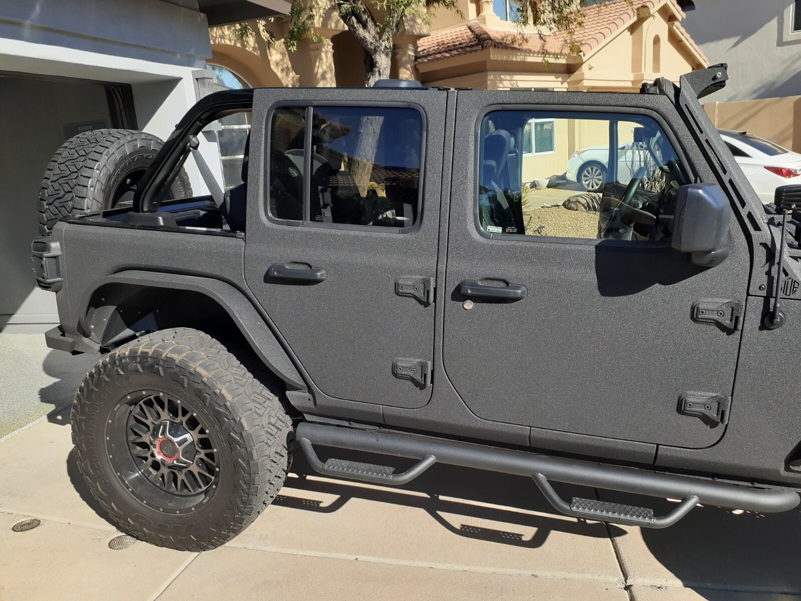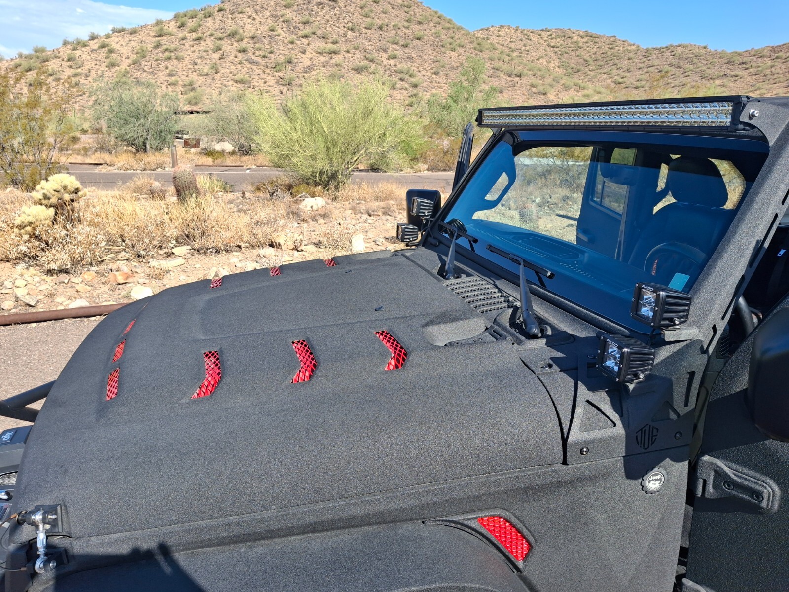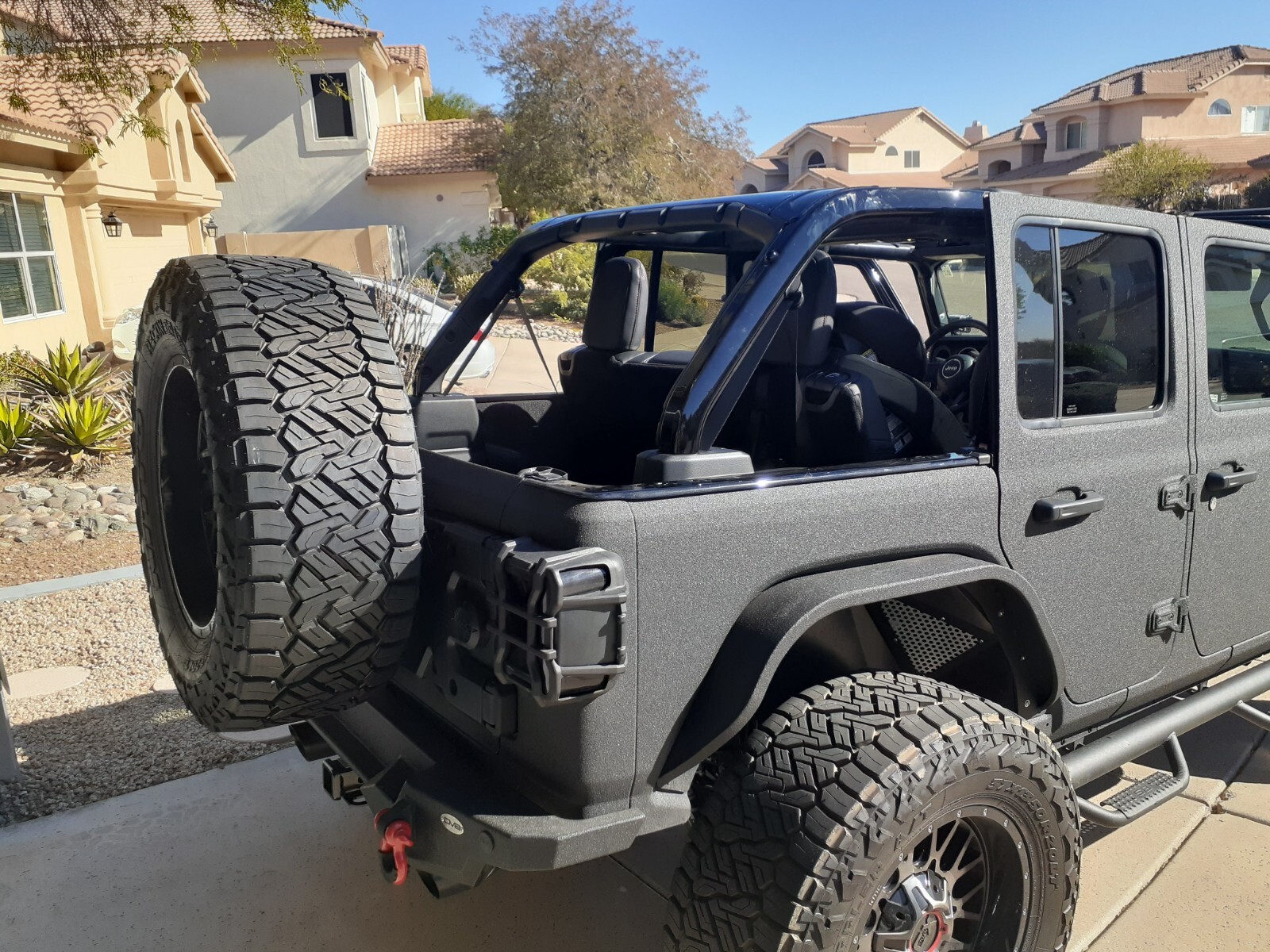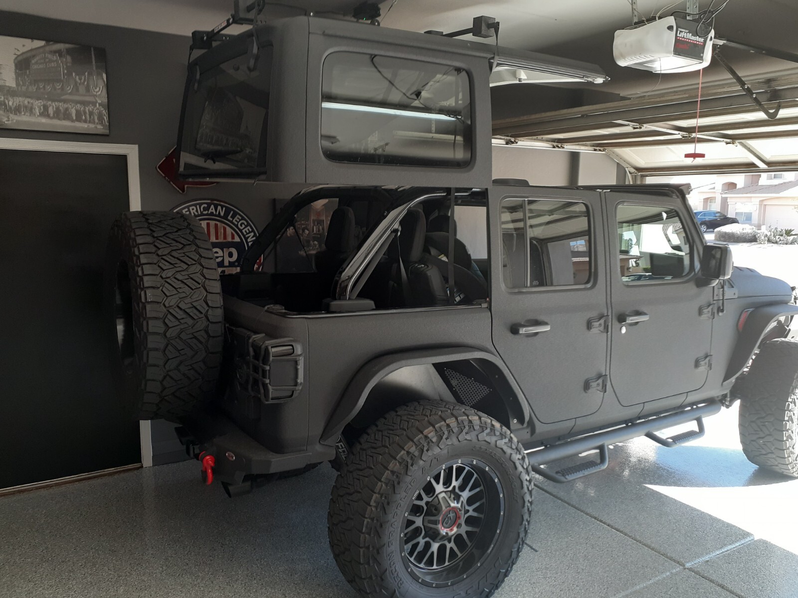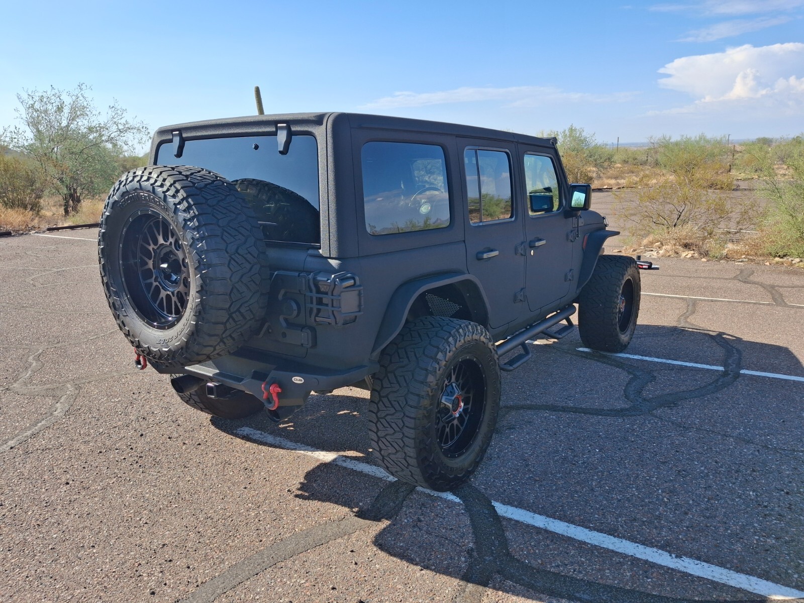 This custom build beauty was built back in 2021 in Carrolton, TX by a custom jeep builder and has been taken care of meticulously and is in phenomenal shape. I flew out to their facility and picked out all the customizations seen below. It has been garage stored, has a clean/clear title in hand and has ONLY been street driven, so it hasn’t been beat up on at all on the trails and backroads. This Jeep also comes with an electric hoist for the garage to lift off and store the hardtop and works through an app. This Jeep is coated with the Dupont Kevlar fiber spray when it was built and is a head turner and gets compliments everywhere I take it. It has been routinely maintenanced and runs perfectly. Let me know if you have any questions and no low ball offers or trades. Thanks. FACTORY OPTIONS INCLUDE/ 8.4 SCREEN WITH ALPINE AUDIO, CONVIENCE GROUP COLD WEATHER PACKAGE, AUTO TRANS, V6 TECHNOLOGY GROUP, 25SCUSTOM BUILD *RAPTOR BLACK KEVLAR COATING WITH RED ACCENTS (GRILL AND FENDER MESH RED) * RX SPORT HOOD WITH RED ACCENTS* FABFOUR STUBBY FRONT BUMPER WITH PRERUNNER GUARD*DV8 07 REAR BUMPER WITH TOW HITCH*RUGGED RIDGE REAR TIRE CARRIER WITH HINGE UPGRADE*DV8 SLIM FENDERS KEVLAR BLACK TO MATCH*SMITTYBILT GEN 2 WIRELESS WATERPROOF WINCH W/ SYNTHETIC ROPE (RED FAIRLEAD)*FRONT AND REAR RED D-RINGS WITH BLACK ISOLATORS*FACTOR 55 BLACK FLAT LINK*DRAKE OFF ROAD HOOD LATCHES*RUBICON EXPRESS 2.5 INCH SUSPENSION LIFT W/CONTROL ARMS (RED SUSPENSION) * FALCON 2.1 SERIES MONOTUBE SHOCKS*FALCON 2.2 NEXUS ADJUSTABLE STEERING STABILIZER*RUGGED RIDGE ELITE HEADLIGHT AND TAILLIGHT GAURDS*N-FAB STYLE BLACK NERF BARS*MOPAR BLACK FUEL DOOR*VOSWITCH AUX SWITCHES WITH RELAY/FUSE BOX* TVE UPPER LIGHT BRACKETS KEVLAR BLACK TO MATCH*50" LED LIGHT BAR MOUNTED AT TOP OF WINDSHIELD*2 SETS OR RIGID LED LIGHT PODS AT BOTTOM OF WINSHIELD*CUSTOM ALEA BLACK LEATHER WITH RED STITCH DOPPIO 60 WITH PERF*MATCHING BOOTS, STRAPS AND CONSOLE LID / BLACK WITH RED STITCH STEERING WHEEL*BLACK LEATHER DASH W RED STITCH / ALL WEATHER FLOOR MATS*FACTORY MATCH LED HEADLIGHTS*EVOLUTION BLACK LED TAILLIGHTS AND FOGLIGHTS *5 X NITTO 37/13.50/20 RECON GRAPPLER TIRES*5 X 20X10 XD SNARE WHEELS WITH RED RING*TAZER RECALIBRATION PROGRAMMER*RUGGED RIDGE LED THIRD BRAKE LIGHT RING*DV8 INNER LINERS FRONT AND REAR W / SILVER MESH*MAGNAFLOW BLACK AXLE BACK EXHAUST