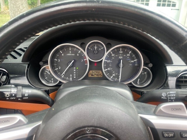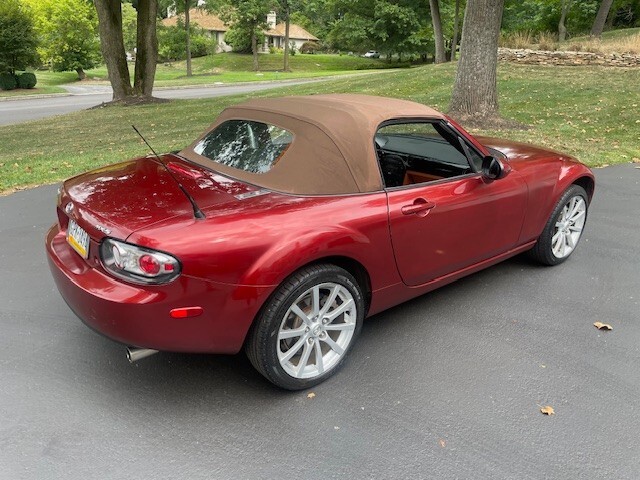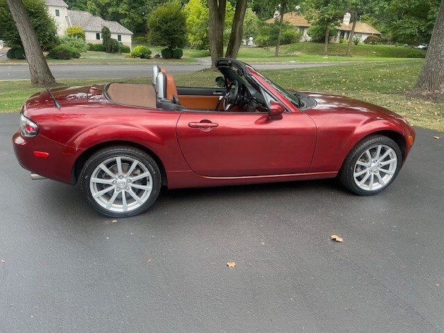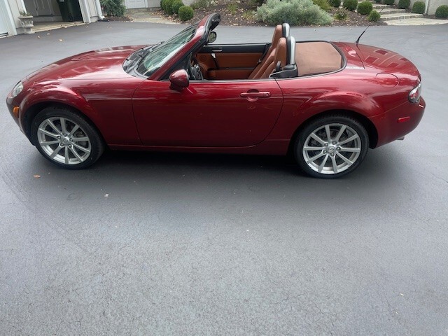 2006 Mazda MX5 Convertible. Grand Touring Convertible 2D. 4-Cyl, 2.0 Liter. RWD. Automatic. Garage Kept. Red exterior, Brown leather interior. 62,910 Miles. Exterior Red paint little mismatch and by front right headlight. Selling for my parents who are older and can' Runs well, mechanically good.Will consider reasonable Offers.