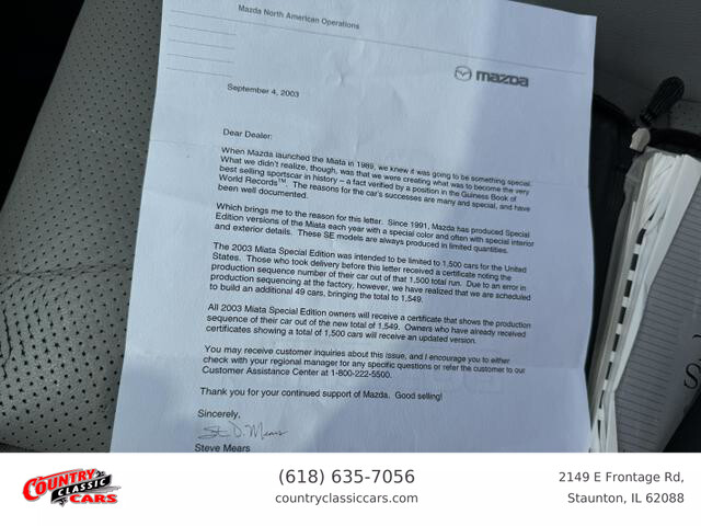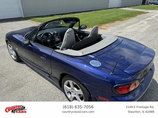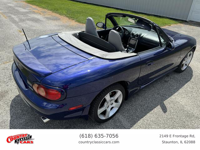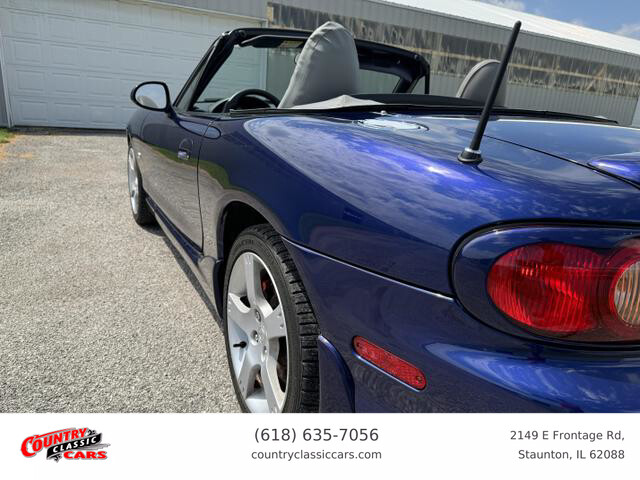Available now is this 2003 Mazda Miata MX-5 Special Edition finished in blue over a black and grey interior with a black convertible top. This Miata is the Special Edition being 1 of 1,549 produced for the US market in 2003. This car has just over 125k miles through 3 owners and runs and drives excellent. All options work as they should and the convertible top is in excellent condition and operates as designed with no leaks. Pioneer head unit with Bose speakers and back up camera. The Miata is powered by the 1.8L inline 4-cylinder engine mated to a proper 6-Speed manual gear box. CarFax report included.