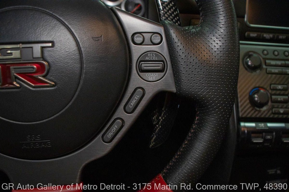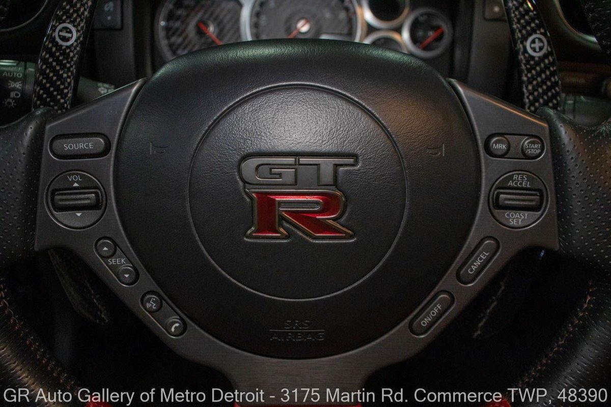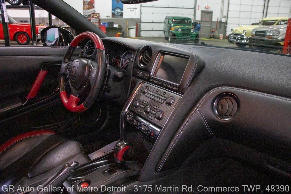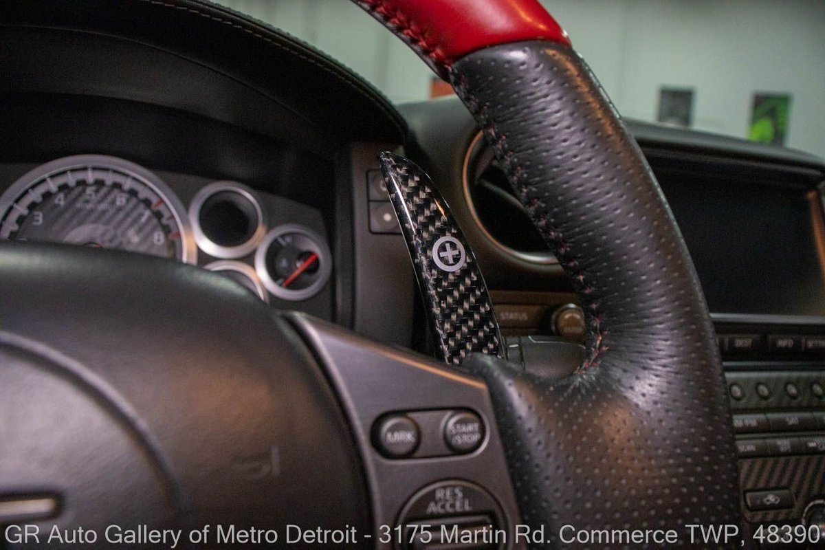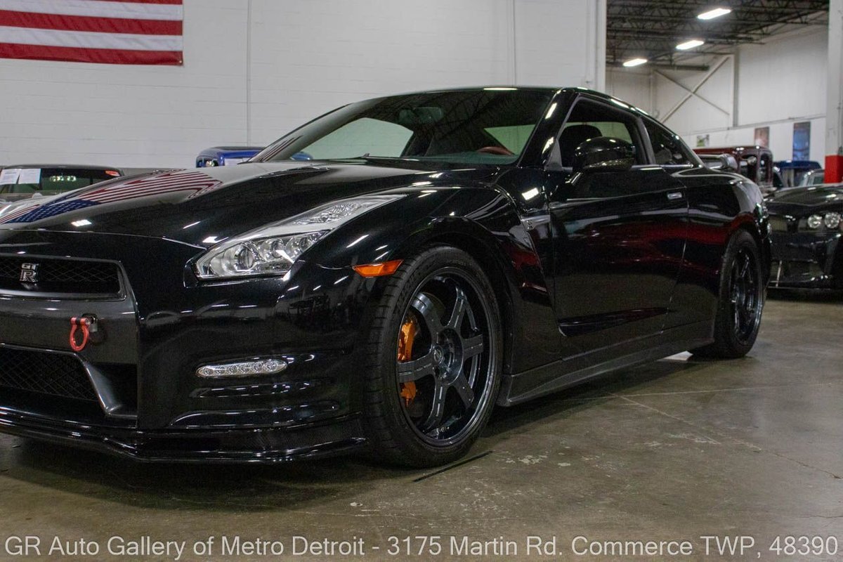 GR Auto Gallery is pleased to present this tastefully modified, 2015 Nissan GT-R Black Edition for your consideration. This GT-R comes in a Jet Black Pearl exterior paint with tons of carbon fiber, complemented by a beautiful black & red interior and tinted windows. This powerful hand-built 3.6L V6 twin-turbo has some very tasteful modifications done to it including; a full HKS titanium race exhaust, GFB blow-off valves, COBB intakes, Zeitronix ethanol sensor, Ecutek, front carbon fiber splitter, carbon fiber side skirts, and newer Michelin Pilot 4S tires. The engine and transmission were custom-tuned by Sam Barros at PowerLabs Tuning, who did a full 93 octane & E85 flex tune, where either fuel type can be pumped in the tank, and the computer will automatically adjust itself for the fueling. This GT-R puts down 630+ wheel horsepower (750hp at the crank) on E85 and seamlessly puts the power down to all four wheels. This GTR features dual-mode heated seats, BOSE stereo, 20-inch wheels, Brembo brakes, rear spoiler, navigation system, sport Recaro leather seats, and more. If you are looking for a clean, high-horsepower, reliable head-turner, this is the car for you! Drive this one out of our showroom or have us assist with shipping it to you anywhere in the United States! Don't hesitate to give us a call with any questions or for more information.