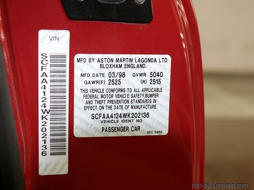 Aston Martin DB73.2L V6 EngineAutomatic TransmissionPremium Audio SystemKeyless EntryPower WindowsPower Door LocksRed ExteriorTan Leather InteriorOwners ManualFloor Mats PLEASE FEEL FREE TO CALL US AT630-405-2246 WITH ANY QUESTION YOU MIGHT HAVE OR ASK US FOR DETAIL WALK AROUNDWE HOPE YOU ARE OUR NEXT SATISFIED ONLINE BUYER At Auto Gallery Chicago, we strive to provide you with the best quality vehicles for the lowest possible price, and this 1998 Aston Martin DB7 is no exception.We provide low-cost worldwide shipping directly to your chosen destination*Although Auto Gallery Chicago. prides itself on accuracy in our descriptions & pricing, on occasion, mistakes can happen. Please verify all descriptions and pricing. In the event of a mistake, Auto Gallery Chicago. is not responsible for errors. We also reserve the right to withdraw/terminate any vehicle listed for sale. Thank you.*