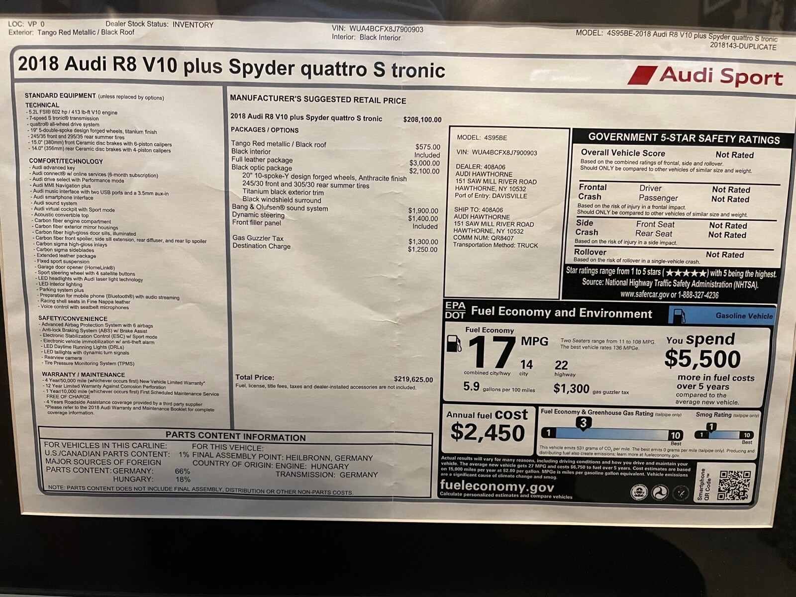 2018 Audi RS V10+ spyder in excellent condition. Always garaged. Ceramic coated and clear bra on front. Ceramic brakes. No modifications.