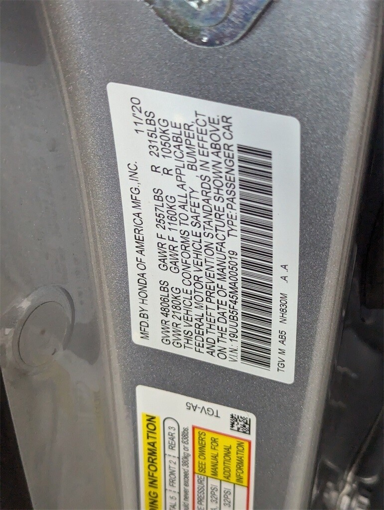 2021 Acura TLX Technology Package 2.0L DOHC 10-Speed Automatic FWD sparkle silver met 13 Speakers, 4-Wheel Disc Brakes, ABS brakes, Acura Navigation System w/3D View, Air Conditioning, Alloy wheels, AM/FM radio: SiriusXM, Anti-whiplash front head restraints, Apple CarPlay/Android Auto, Auto High-beam Headlights, Auto-dimming Rear-View mirror, Automatic temperature control, Brake assist, Bumpers: body-color, Compass, Delay-off headlights, Driver door bin, Driver vanity mirror, Dual front impact airbags, Dual front side impact airbags, Electronic Stability Control, Emergency communication system: AcuraLink, Exterior Parking Camera Rear, Four wheel independent suspension, Front anti-roll bar, Front Bucket Seats, Front Center Armrest w/Storage, Front dual zone A/C, Front reading lights, Garage door transmitter: HomeLink, Heated door mirrors, Heated front seats, Heated Front Sport Seats, HVAC memory, Illuminated entry, Knee airbag, Lane departure: Lane Keeping Assist System (LKAS) active, Leather steering wheel, Low tire pressure warning, Memory seat, Navigation system: Acura Navigation System with 3D View, Occupant sensing airbag, Outside temperature display, Overhead airbag, Overhead console, Panic alarm, Passenger door bin, Passenger vanity mirror, Power door mirrors, Power driver seat, Power moonroof, Power passenger seat, Power steering, Power windows, Prem Perforated Milano Leather-Trimmed Interior, Premium audio system: Acura/ELS Surround, Radio data system, Radio: ELS Studio Premium Audio System, Rear anti-roll bar, Rear reading lights, Rear seat center armrest, Rear window defroster, Remote keyless entry, Security system, Speed control, Speed-sensing steering, Speed-Sensitive Wipers, Split folding rear seat, Steering wheel mounted audio controls, Tachometer, Telescoping steering wheel, Tilt steering wheel, Traction control, Trip computer, Turn signal indicator mirrors, Variably intermittent wipers, Wheels: 19 x 8.5 Sparkle Silver Met Interwoven.