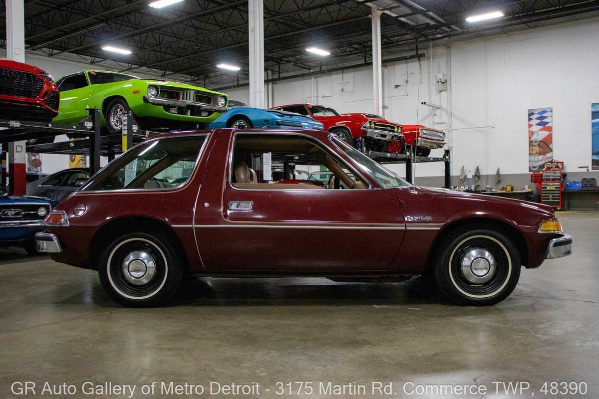 GR Auto Gallery is pleased to present this 1976 AMC Pacer for your consideration. This unique classic features a striking Burgundy exterior complemented by a comfortable Tan interior. Powering this Pacer is a reliable 3.8L Inline 6 engine, paired with an automatic transmission, delivering a smooth driving experience. With only 77,883 miles showing on the odometer. Recent updates include new tires, a new battery, a fresh oil change, and a sound system featuring Boston speakers and a Sony stereo, making it a joy to cruise in. Additional features include crank windows and a clamshell hood. Drive this one out of our showroom or have us assist with shipping it to you anywhere in the United States! Don't hesitate to call us with any questions or for more information.