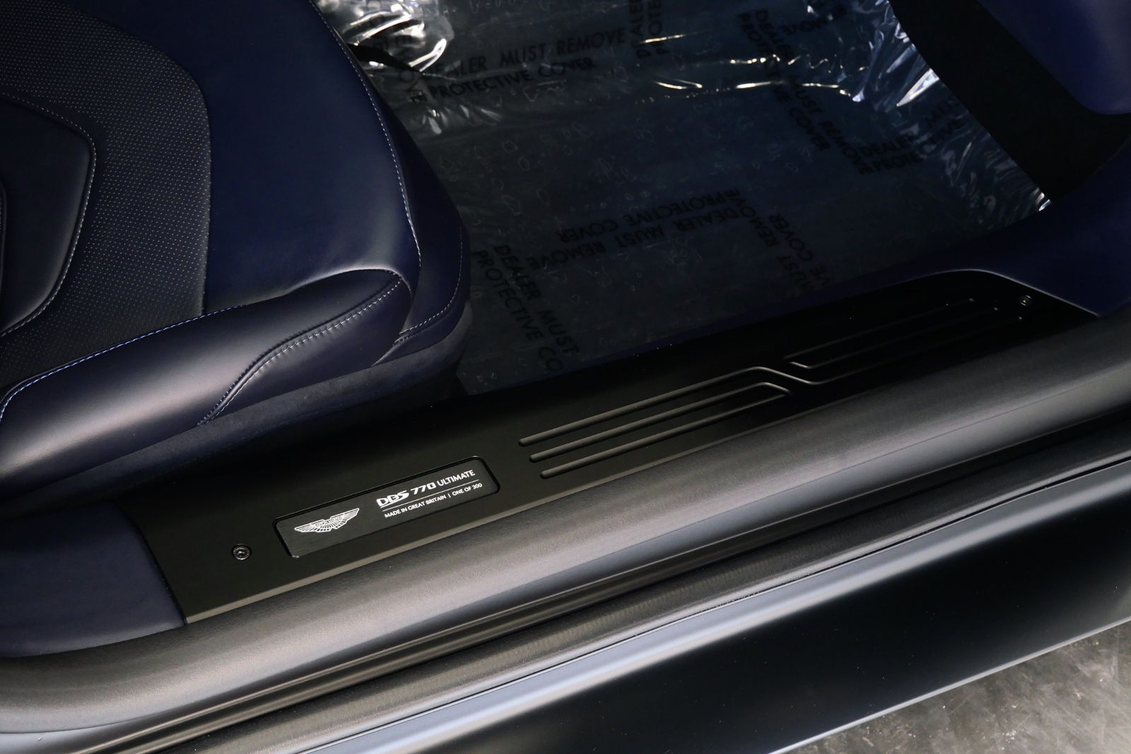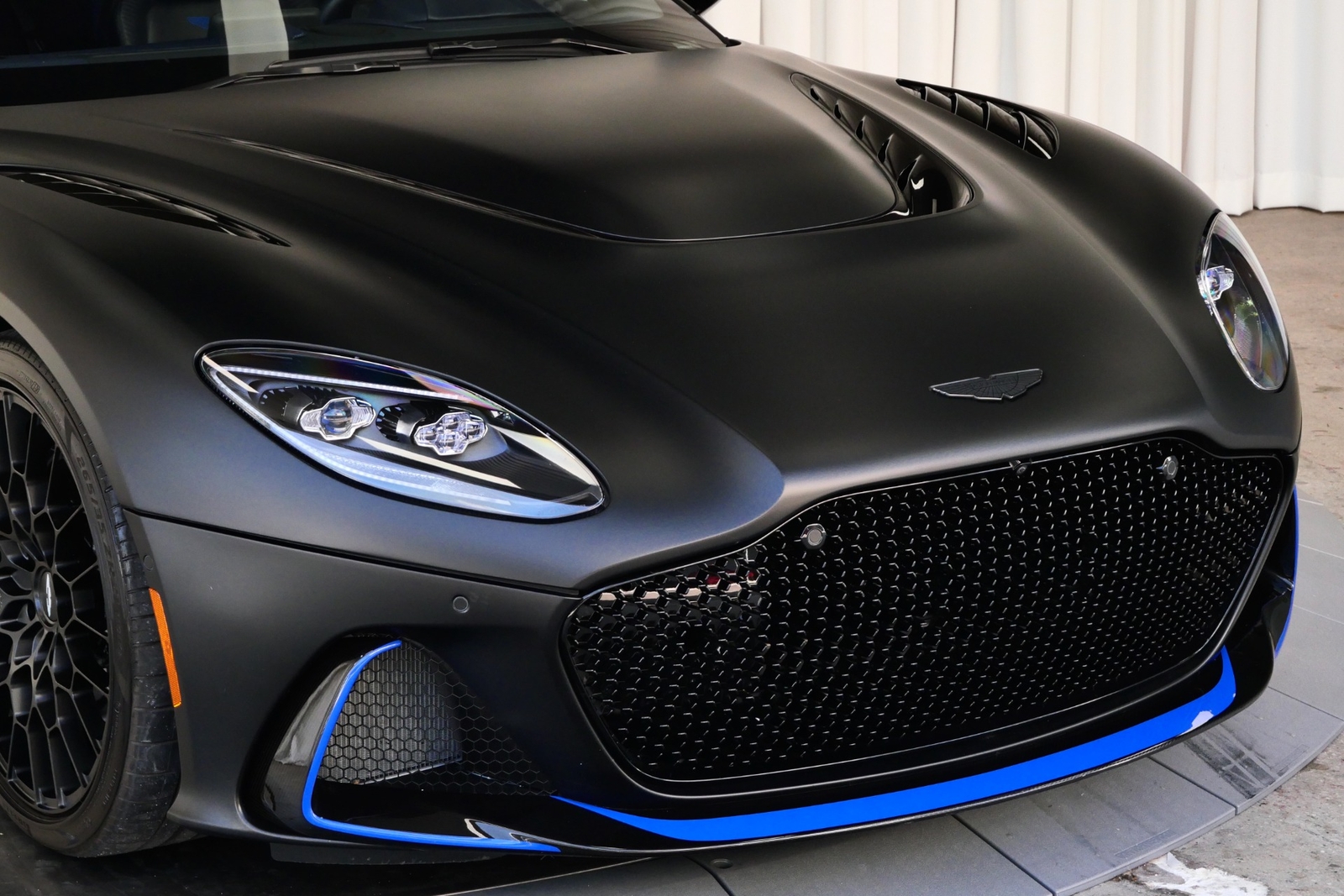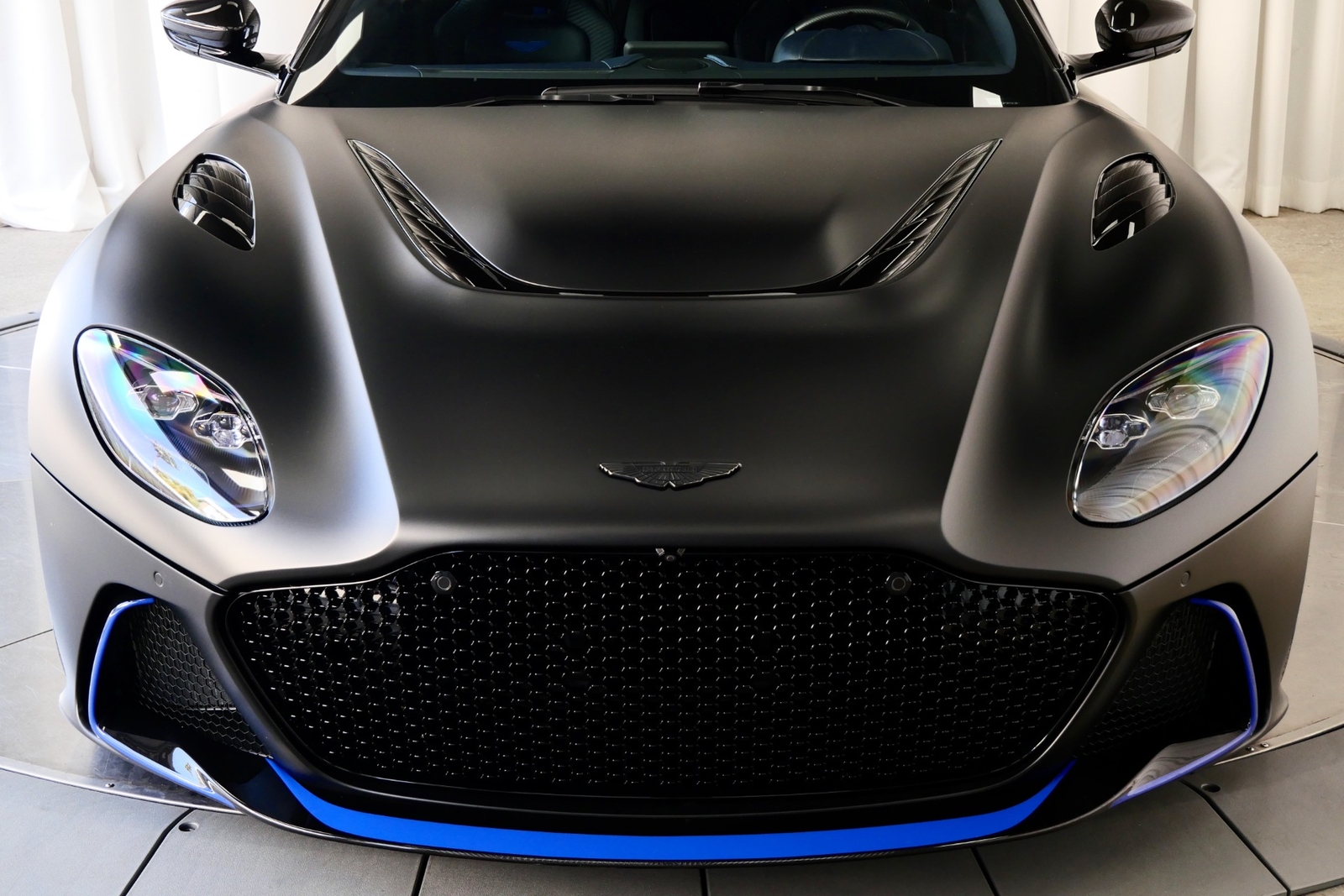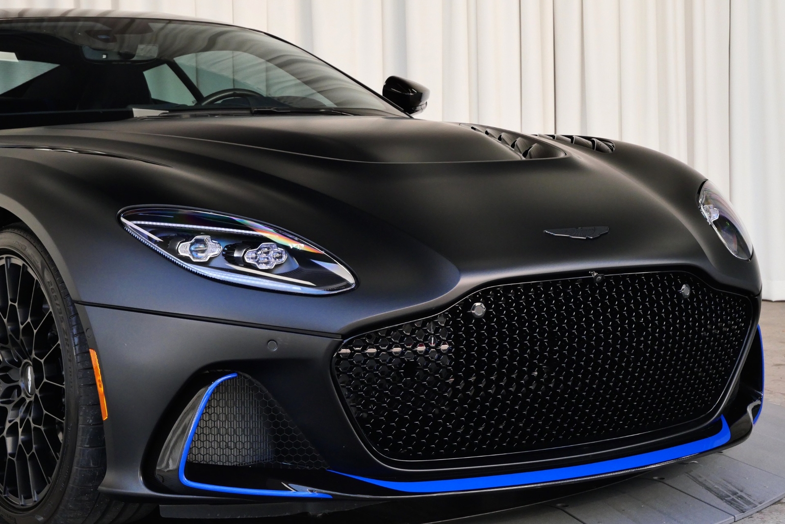 We have just added to our extensive exotic car inventory a beautiful 2023 Aston Martin DBS Ultimate in Satin Jet Black over Dark Knight interior and only 661 original miles. This DBS is loaded with: 5.2 liter twin turbo V12 with 759 horsepower, 8 speed automatic transmission, satin black 21 inch Ultimate wheels, carbon ceramic brakes with calipers in black, titanium exhaust finishers in black, carbon gloss tint roof panel, tinted lower carbon pack, tinted 2x2 twill carbon fiber upper pack, gloss black exterior badge pack, smoked rear lamps, paint color--satin, accent pack 2 (blue painted accents on exterior carbon trim), Inspire Sport monotone interior, Aston Martin wings embroidered in seat backs, Q palette contrasting stitching and welting, Bang & Olufsen BeoSound audio, contemporary leather color, navigation, 16 way seats with heat and ventilation, dark chrome and satin carbon interior pack, 2x2 twill carbon interior trim, carbon fiber and leather sports steering wheel, floor mats and much more. This is one of only 300 700 Ultimates built for the world, and this one carried a stratospheric $515,186 MSRP.