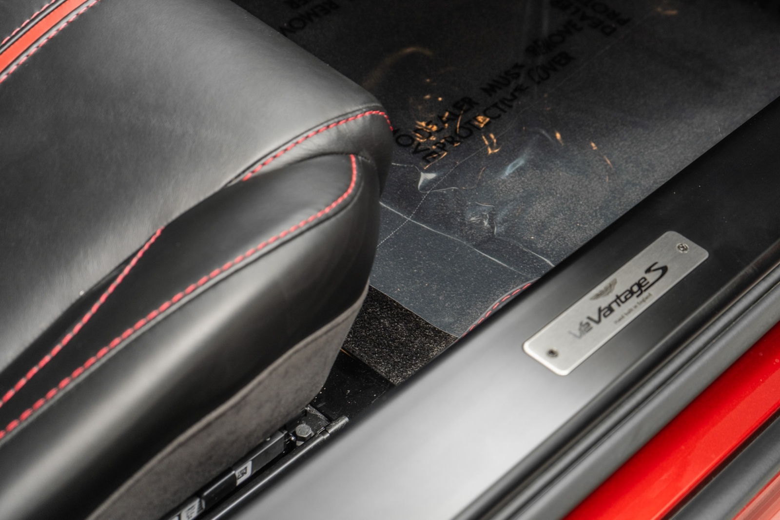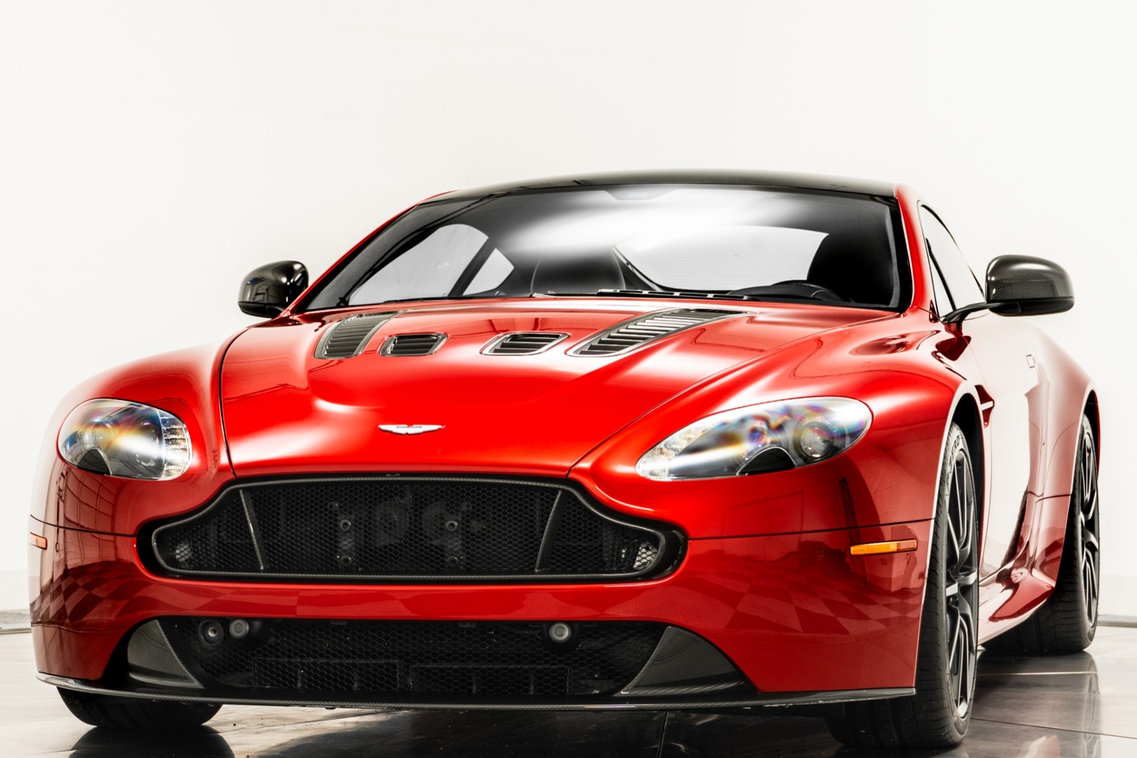 We have just added to our extensive exotic car inventory a beautiful 2015 Aston Martin V12 Vantage S in Volcano Red over Obsidian Black leather and only 15,083 miles. This Vantage is loaded with: 6.0 Liter V12 with 565 horsepower, 7 speed dual clutch transmission, 10 spoke wheels in matte black, red brake calipers, exterior carbon pack, clear taillights, gloss black tail finish panel, power seats with memory, red contrast stitching, red accent leather, carbon fiber fascia trim, Aston martin premium audio, navigation, rear camera and much more.