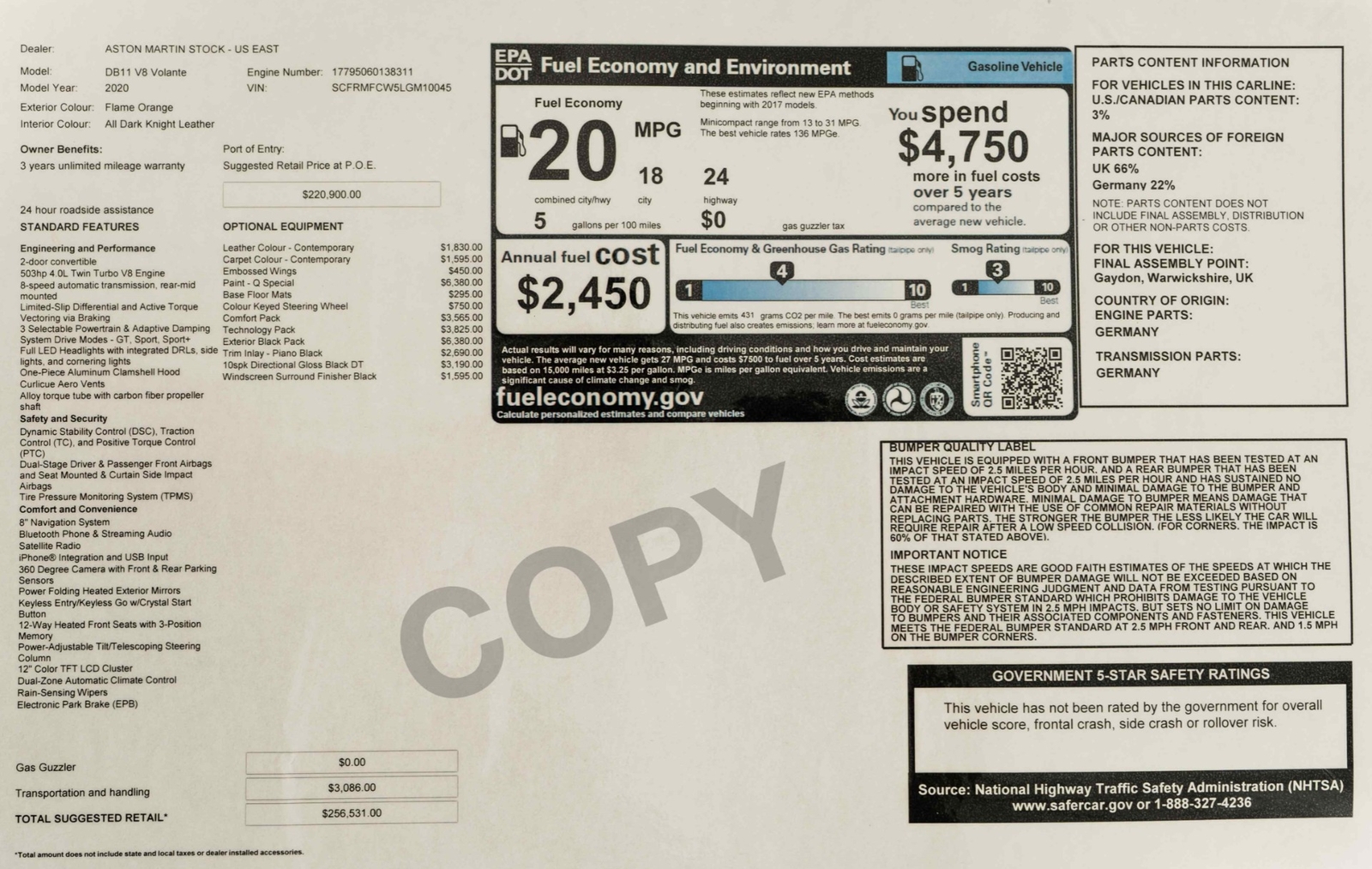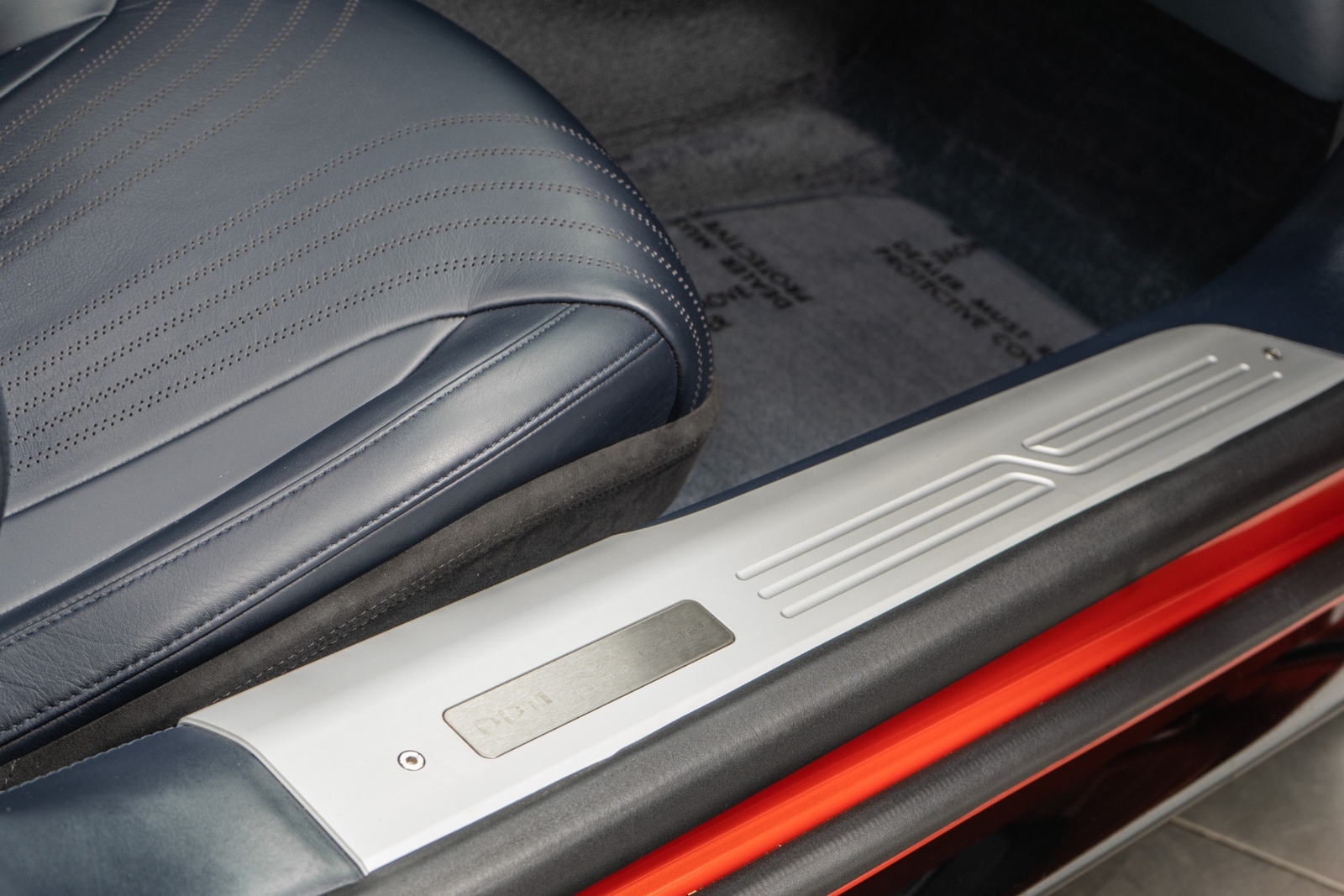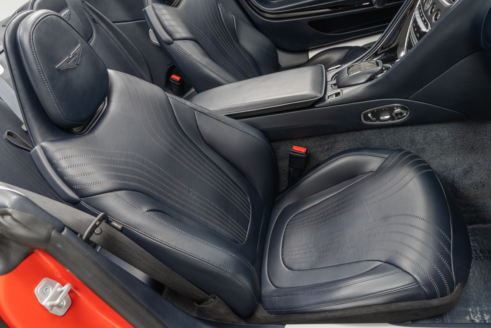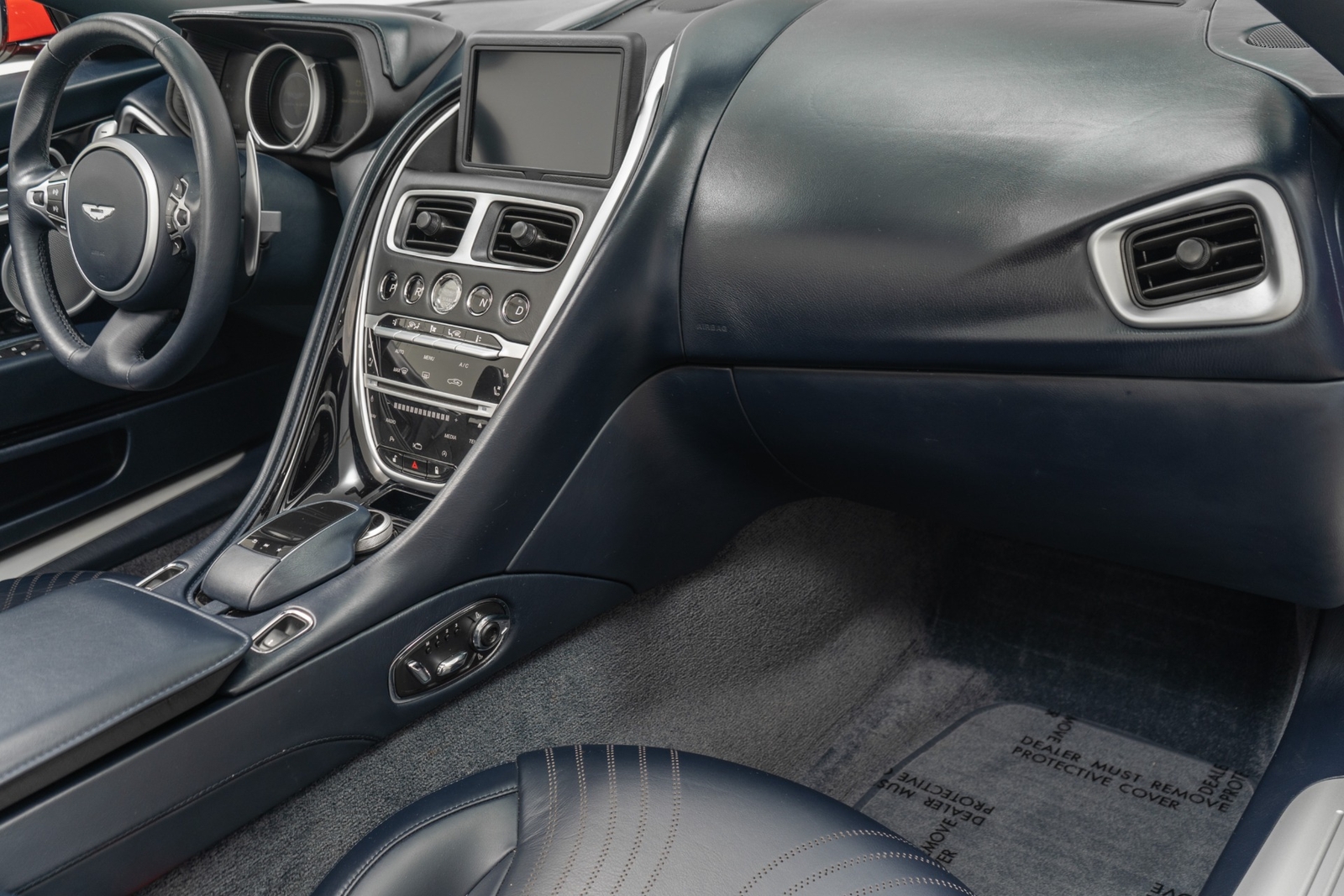 We have just added to our extensive exotic car inventory a beautiful 2020 Aston Martin DB11 Volante in Flame Orange over Dark Night leather with only 9,596 miles. This DB11 is loaded with: 4.0 Liter twin turbo V8, 8 speed automatic transmission, diamond turned 10 spoke directional wheels, black brake calipers, Q special paint, exterior black pack, windscreen surround in black, red taillights, comfort pack, technology pack, color keyed steering wheel, AM wings embossed in seat backs, touch control for navigation, heated and ventilated front seats, trim inlay in piano black, surround view cameras, floor mats, wind stop and much more. The original MSRP was $256,531.