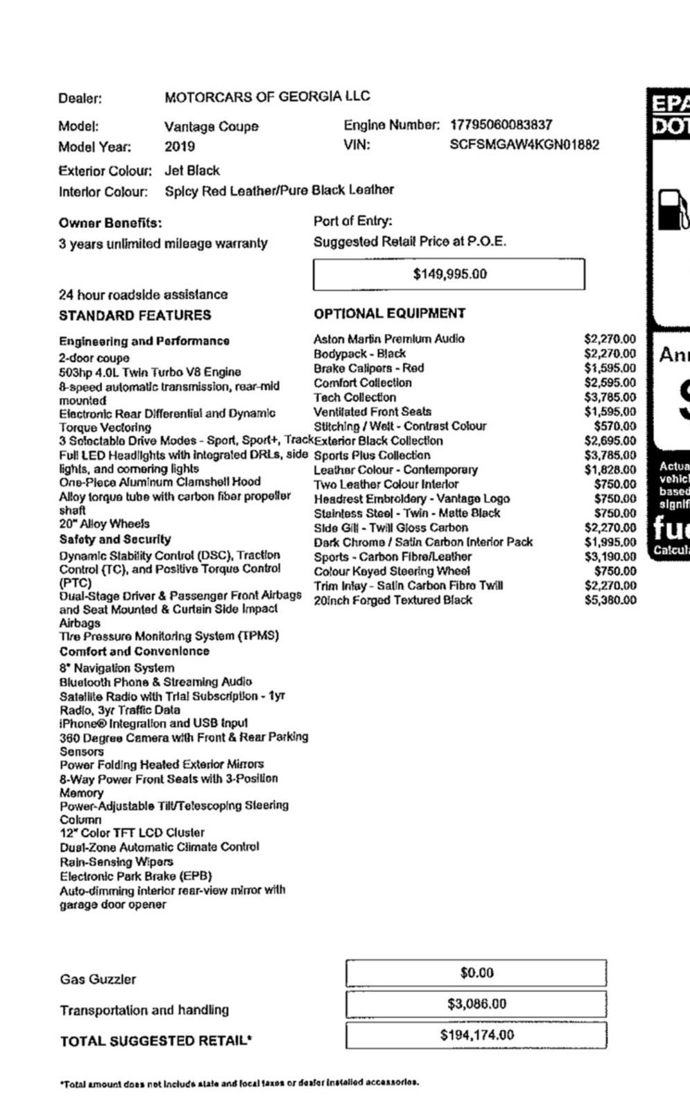 State or local taxes, title, license fee, processing fees, registration fee, dealer documentary fee, finance charges, emission testing fees, and compliance fees are additional to the advertised price.