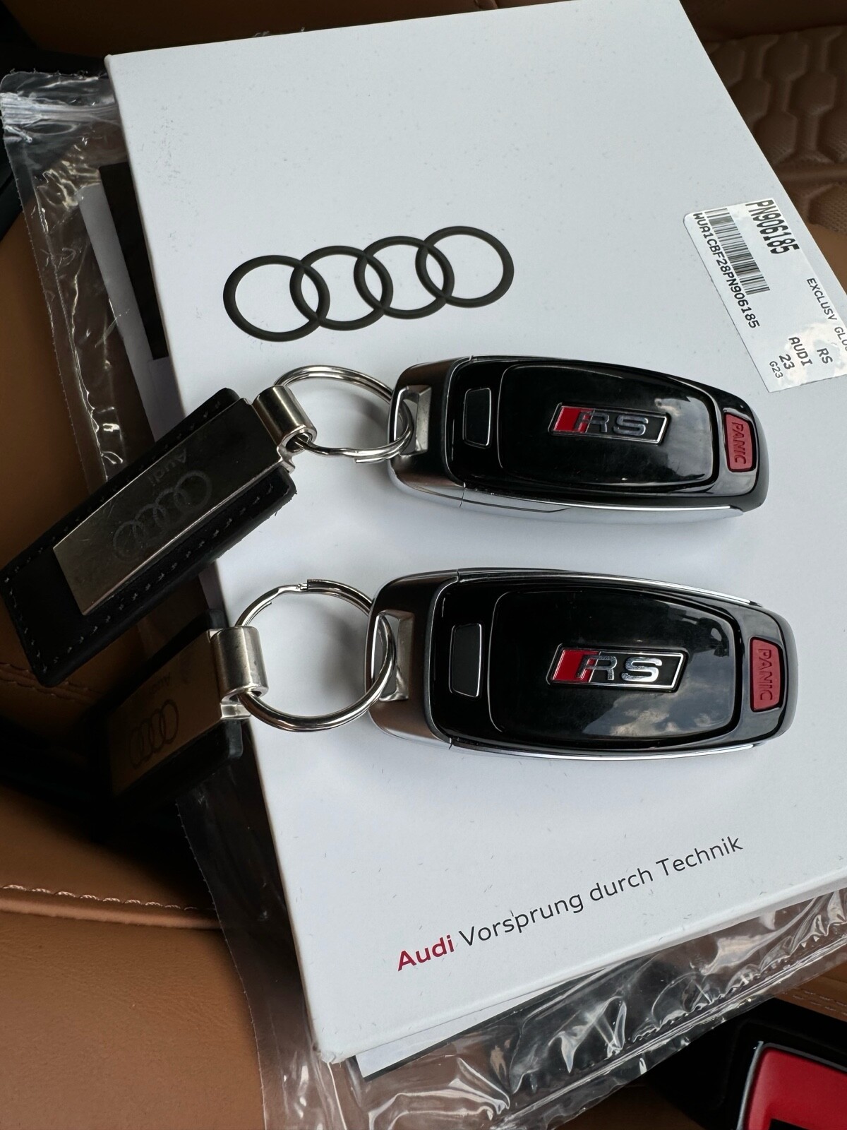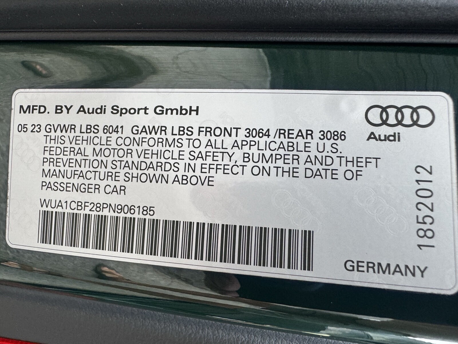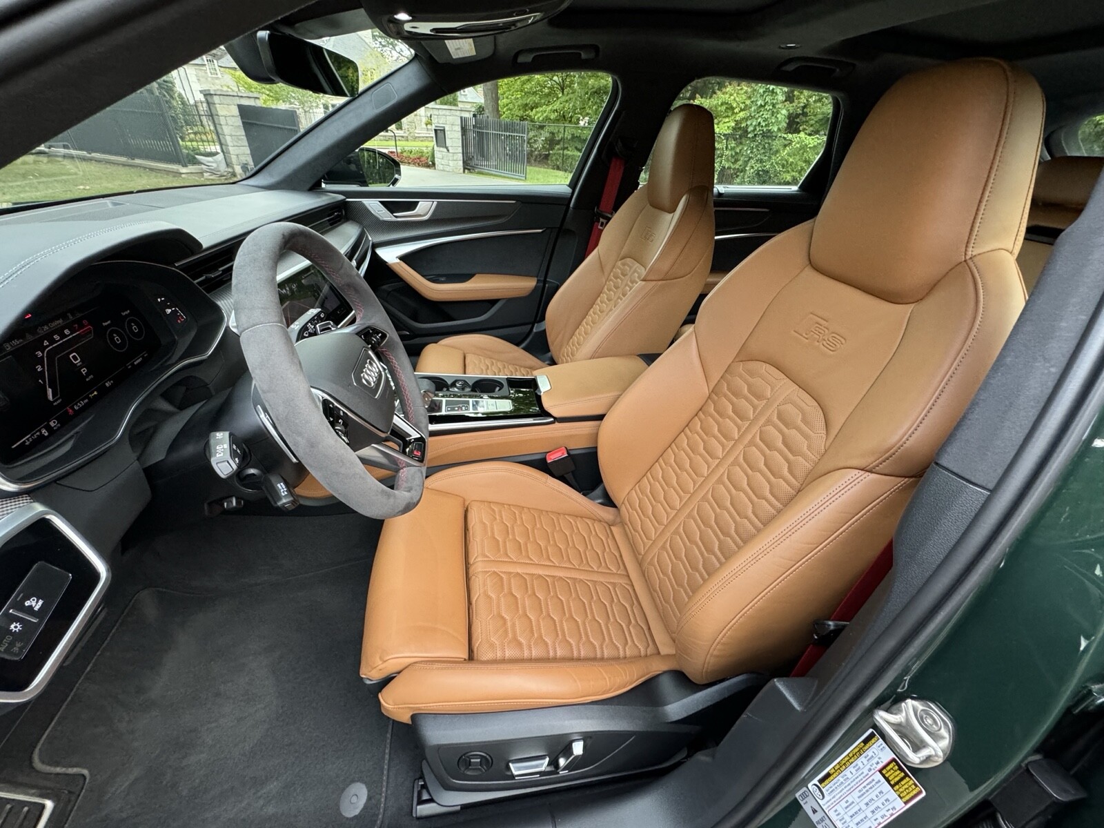 600hp Twin Turbo V8. Audi Exclusive Goodwood Green over Cognac. Black Dinamica Headliner. Audi Exclusive Alcantara Steering Wheel, Shifter and Seatbelts in Crimson Red. Executive Package with extended leather, Head-up display, Heated Rear Seats, Soft Close Doors and Remote Park Assist. Black Optic Package. RS Sport Exhaust. Red Calipers.