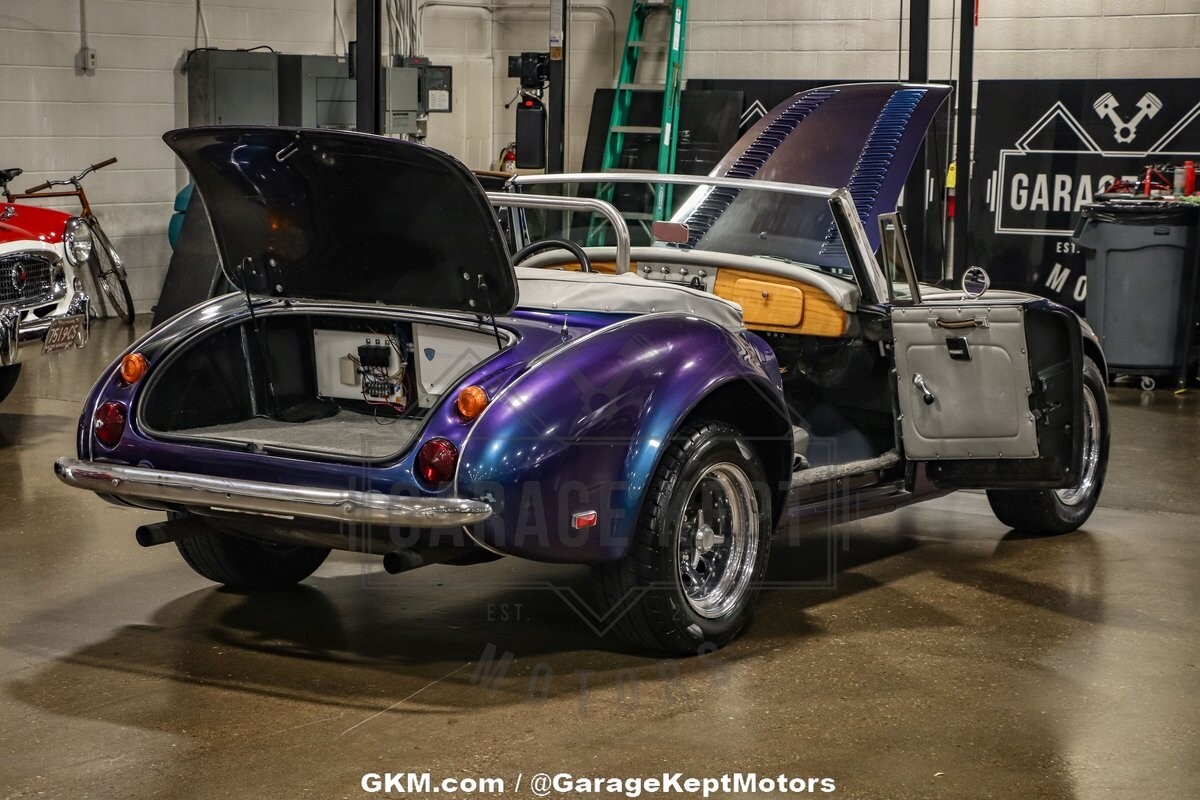 In summary, this 1991 Austin Healey 3000 Replica by Classic Roadsters is a unique blend of classic design and modern performance. With its striking blue color shift pearlescent exterior, comfortable gray interior, and powerful 350ci V8 engine, it offers a driving experience that is both visually and mechanically rewarding. Maintained by the same owner since 2008, this replica is a testament to timeless elegance and contemporary engineering. Don't miss the opportunity to own this exceptional vehicle that combines the best of both worlds.