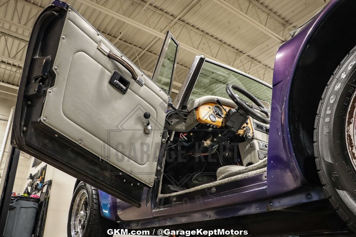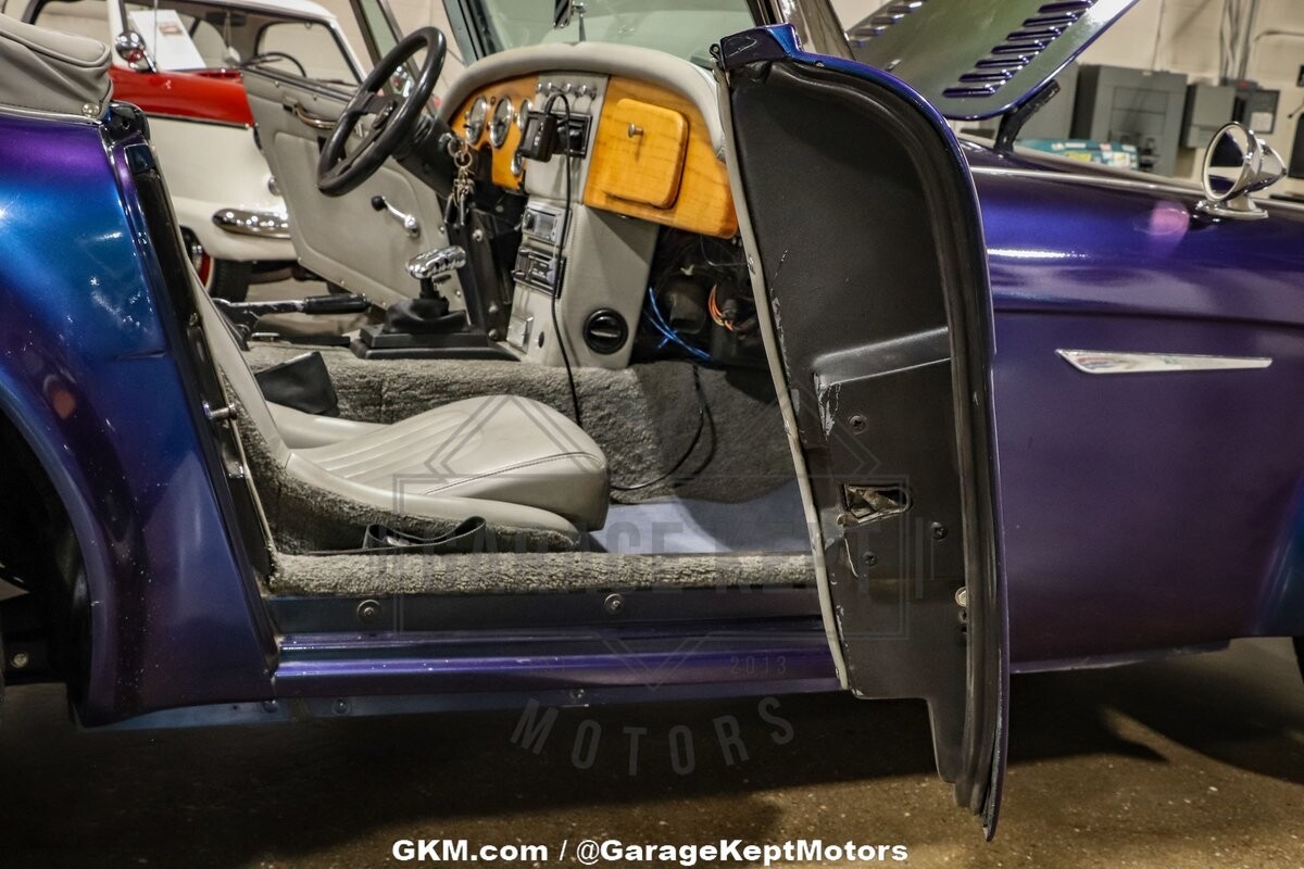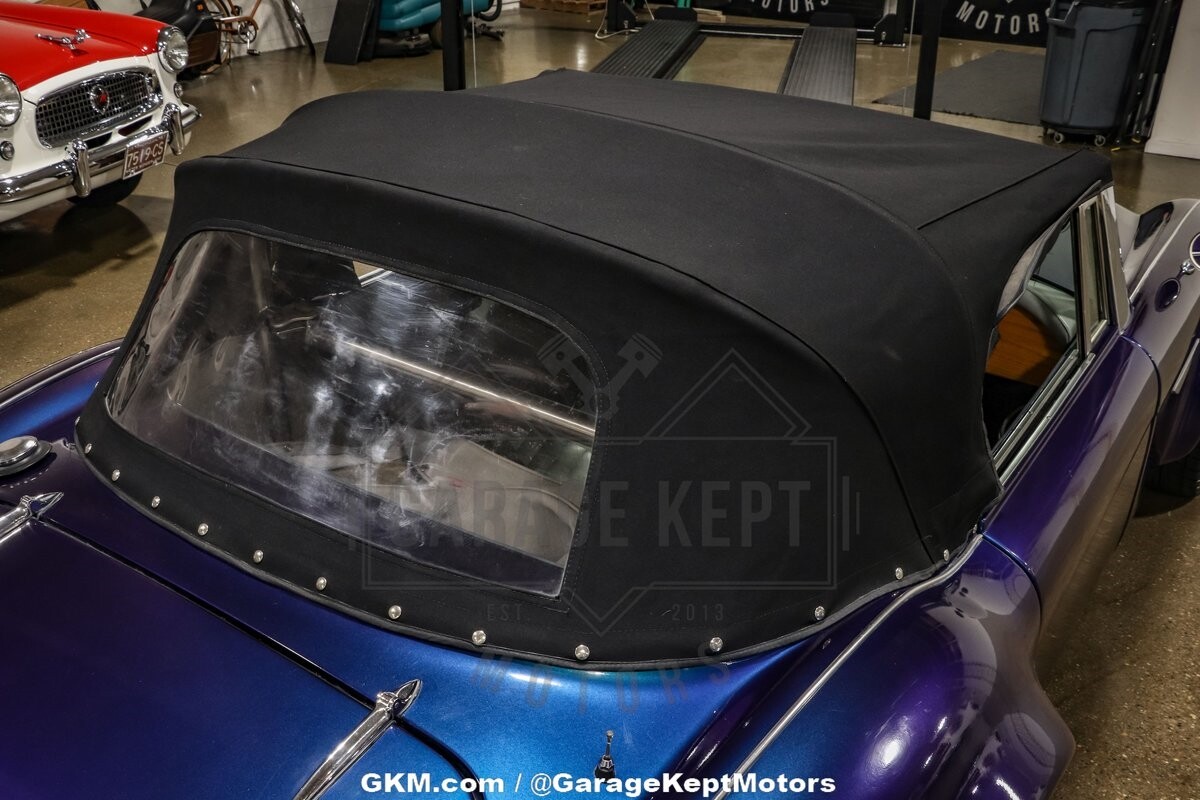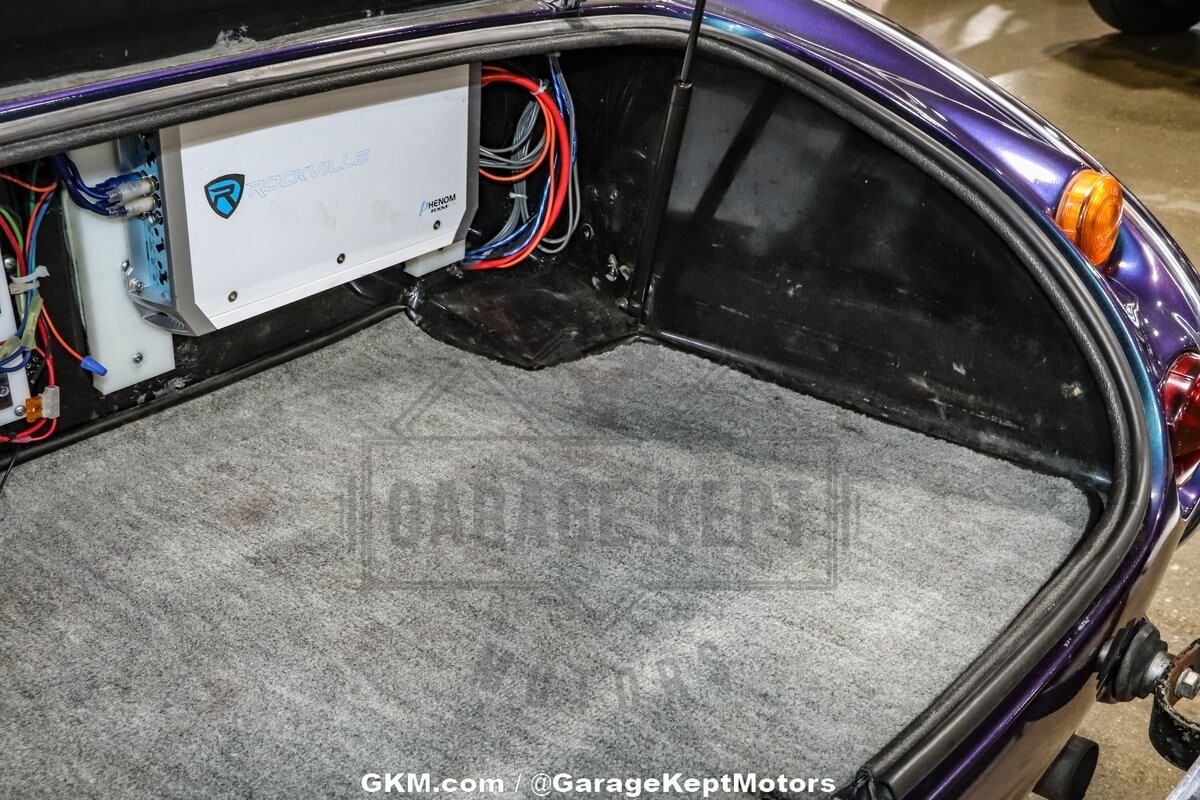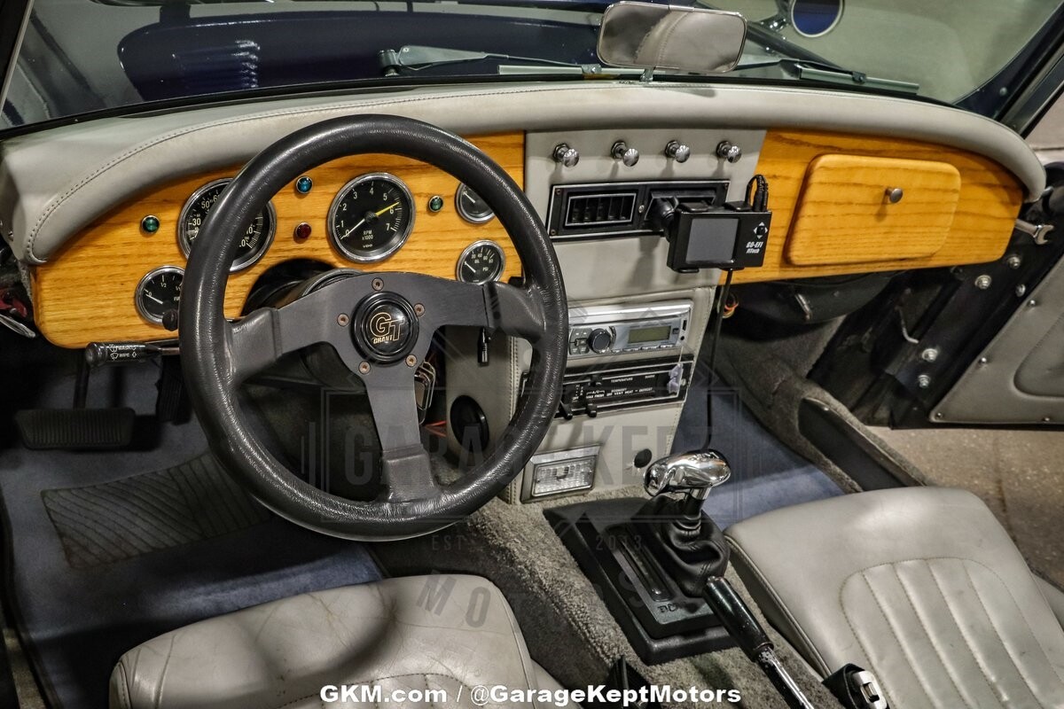 The exterior of this Austin Healey 3000 Replica is truly a sight to behold. Finished in a captivating blue color shift pearlescent paint, the car shimmers with varying hues depending on the angle of light, making it a head-turner wherever it goes. This unique and eye-catching paint job not only adds a touch of modern flair to the classic design but also ensures that this vehicle stands out in any setting. The elegant lines and curves of the body are faithfully recreated, paying homage to the iconic design of the original Austin Healey 3000.