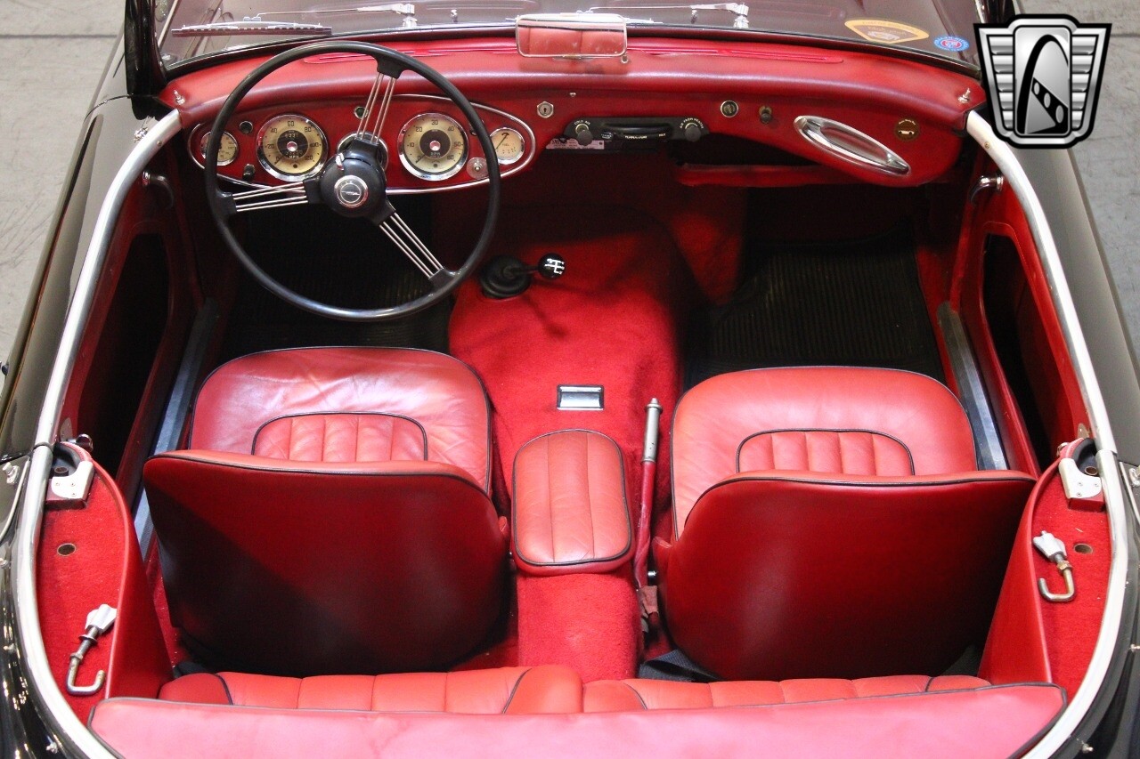 Introducing the timeless elegance and classic charm of the 1959 Austin-Healey 100-6, a true icon of British motoring heritage. This Collectable Classic boasts a striking black exterior that complements its sophisticated red leather interior, creating a visually stunning contrast that is sure to turn heads wherever you go. Under the hood, you'll find a robust Inline-6 engine paired with a 4-speed manual transmission, offering an engaging and authentic driving experience that enthusiasts will appreciate.