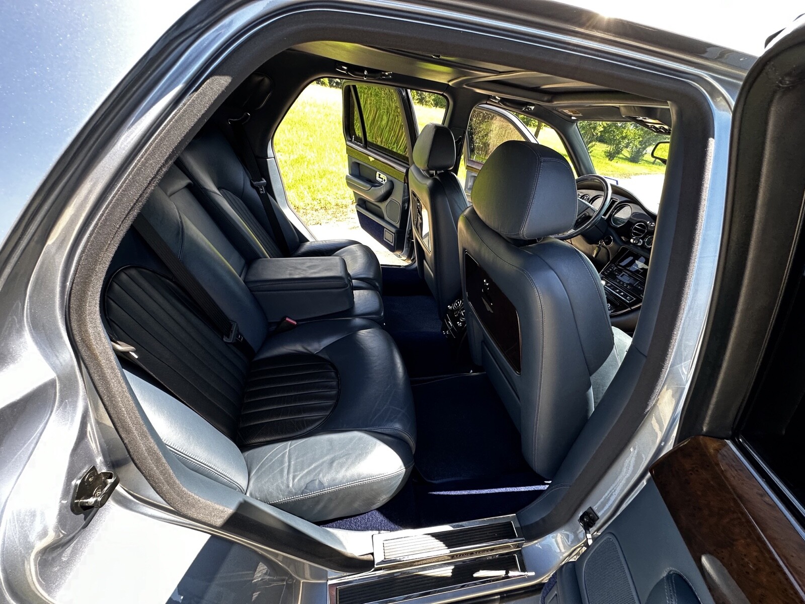 2001 silver storm Bentley Arnage red label “Le Mans Edition”. A total of 153 Le Mans Editions were made for the 2001 (139) and 2002 (14) model years. This is car number 6 of the 2001 model year. The Le Mans edition was distinguished by quad exhaust pipes, ducting vents in front wing, wide wheel arches, red brake calipers, 5 spoke chrome wheels, Le Mans badges on front quarter panel, dark green instrument background, dark burr walnut, Bentley wing etched inlaids into waist rails of the doors, drilled brake pedals, chrome and leather gear shift level. The HVAC system recently stopped working on this car, other than that the car is in great mechanical condition and drives and shift gears as it should. All windows, door locks, seat controls, cruise control, audio, lights, horn, turn signals works. Both front and rear suspension was replaced by independent Bentley mechanic two years ago and car rides as it should. My schedule is flexible for a car inspection at my home. Contact me via eBay messaging for an appointment prior to listing end. The car is being sold as is with no warranty.