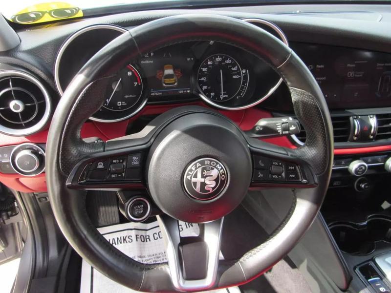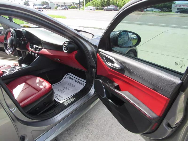 Welcome to the world of Italian luxury and performance with this stunning Gray 2021 Alfa Romeo Giulia. This sleek sedan is powered by a spirited 2.0L 280HP I4 DI Turbo engine, ensuring an exhilarating driving experience every time you hit the road. With rear-wheel drive and a smooth Touring Suspension, you'll enjoy precise handling and a thrilling ride.The exterior of this Alfa Romeo Giulia is both elegant and sporty, featuring a clearcoat paint finish, body-colored bumpers, and stylish aluminum side window trim. The Auto On/Off Projector Beam High Intensity Headlamps and LED Brakelights not only enhance visibility but also add a touch of sophistication to the overall design.Slide into the luxurious interior where you'll find a spacious cabin appointed with premium leather seats and a leather-wrapped steering wheel. The Dual Zone Front Automatic Air Conditioning keeps you and your passengers comfortable on any journey, while the 40-20-40 folding rear seats offer versatility for transporting cargo.One of the standout features of this Alfa Romeo Giulia is its advanced technology package. The Radio with Bluetooth connectivity and 8.8-inch display lets you stay connected and entertained on the go. The Smart Device Integration allows you to seamlessly integrate your smartphone for easy access to your favorite apps.Safety is a top priority in this Alfa Romeo Giulia, with features like Full Speed Forward Collision Warning-Plus and Collision Mitigation Front helping to keep you and your passengers secure on the road. The Back-Up Camera provides added convenience and peace of mind when maneuvering in tight spaces.This Carfax One Owner beauty comes with a detailed Carfax report, giving you confidence in the vehicle's history and condition. Whether you're cruising through city streets or hitting the open highway, this Alfa Romeo Giulia is sure to turn heads wherever you go.Don't miss your chance to experience the perfect blend of style, performance, and luxury in this Gray 2021 Alfa Romeo Giulia. Schedule a test drive today and elevate your driving experience to a whole new level!