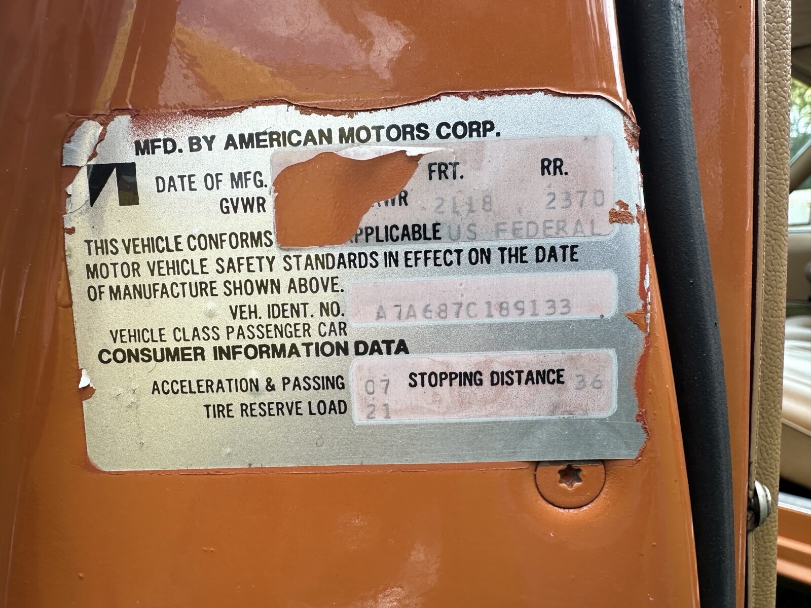 2 DOOR PACER WAGON HAS BEEN IN ENCLOSED STORAGED FOR PAST FIVE YEARS IN OCALA FL BY 2nd OWNER