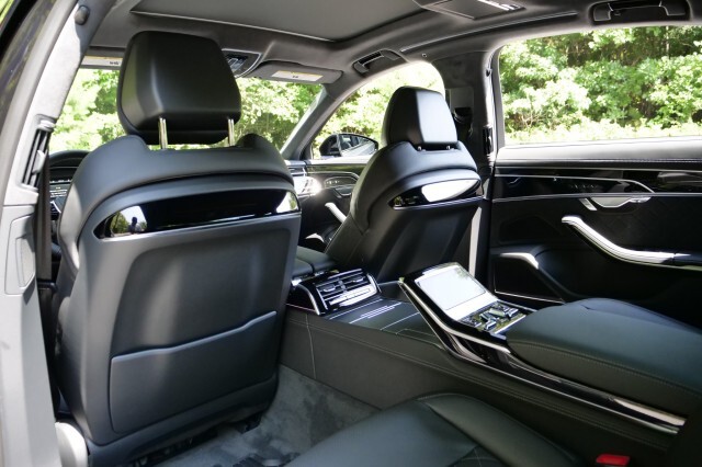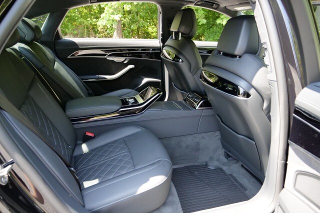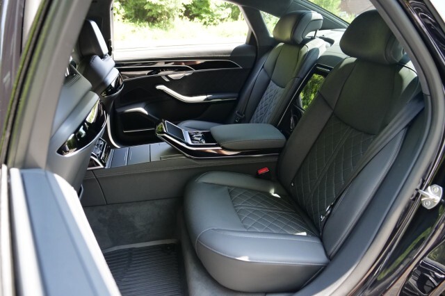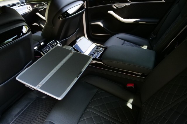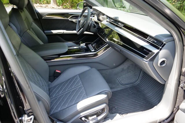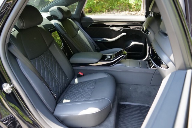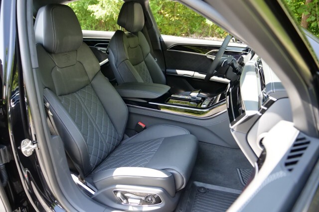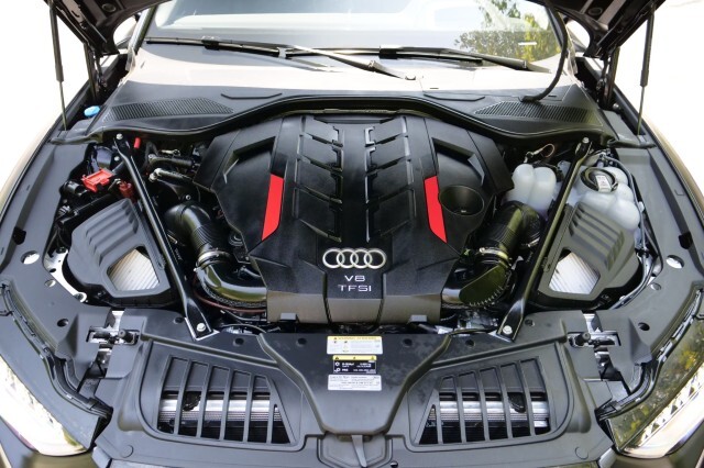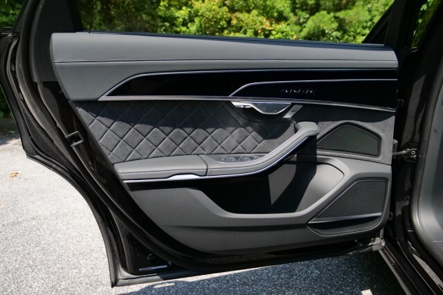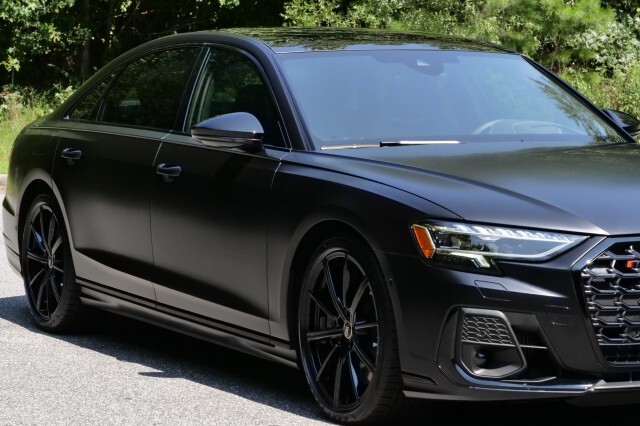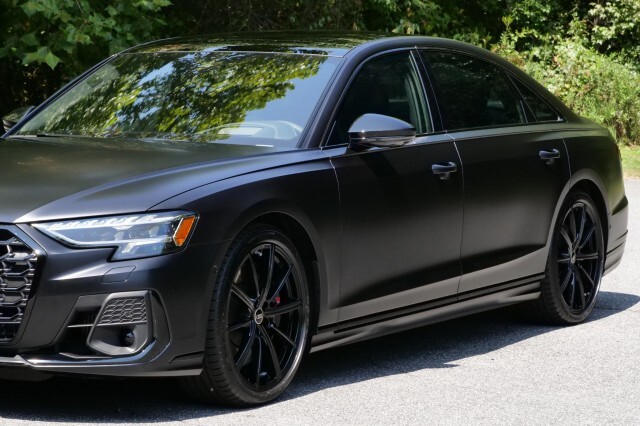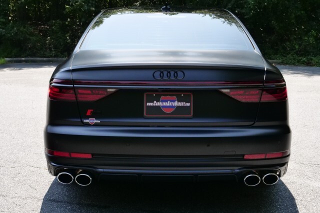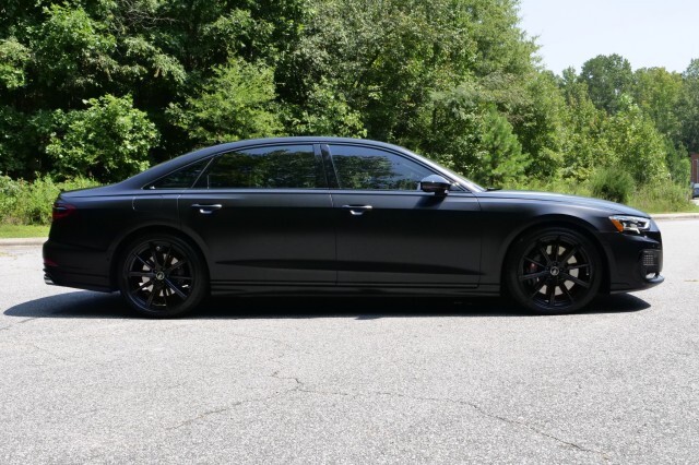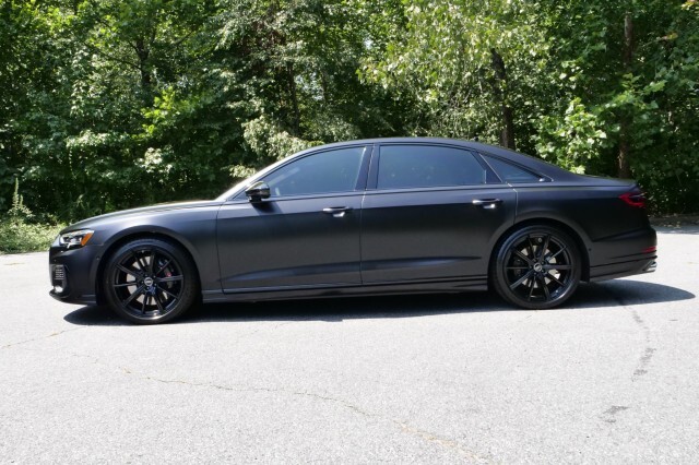 HIGHLIGHTED FEATURES Rear Seat Comfort Package $5,900 Full-Length Rear Center Console in Leather Folding Tables Rear Center Console Power Outlet Heated Rear Seat Armrests Rear Seat Remote Control Rear Outboard Seat Heating, Ventilation & Massage Power Rear Outboard Seats with Lumbar & Memory Functions Safety Package Plus Airbag between rear seats and illuminated rear seat belt buckles FULL BODY MATTE BLACK WRAP $8,000 S8 Executive Package $4,050 Intersection Assist Adaptive Cruise Assist with Lane Guidance Traffic Sign Recognition Audi Side Assist with Pre Sense Rear Remote Park Assist Plus S8 Comfort Plus Package $4,700 Heated Rear Outboard Seats Head-Up Display Extended Leather Package Upper dashboard and top of doors Black Dinamica Headliner Digital Matrix-Design LED Headlights S8 Black Optic Plus Package $2,100 Black Exterior Trim Black Audi Rings & Model Badge Black Exterior Mirror Housings Wheels: 21 10-Spoke Design with Gloss Black Finish Front Seat Massage Front Heated & Cooled Seats CarPlay & Android Auto Heated Steering wheel Navigation 360 Degree Back-Up Camera Bang & Olufsen Audio