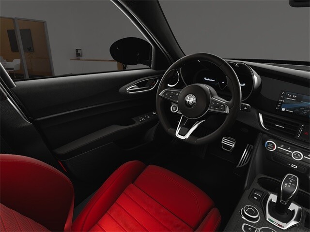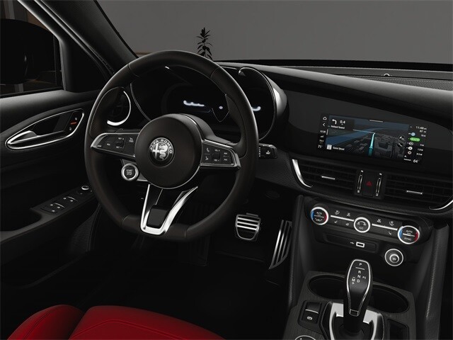 This Giulia Ti is nicely equipped with Performance Driving Package (Gloss Red Calipers w/White Script, Power Adjustable Bolster, Red Leather Sport Seats w/AAP, and Wheels: 19 x 8 Dark 5-Hole Aluminum), Quick Order Package 22G Ti, Apple CarPlay/Android Auto, Auto High-beam Headlights, Auto-dimming door mirrors, Auto-dimming Rear-View mirror, Automatic temperature control, Brake assist, Compass, Electronic Stability Control, Exterior Parking Camera Rear, Four wheel independent suspension, Front dual zone A/C, Fully automatic headlights, Garage door transmitter, Heated door mirrors, Heated front seats, Heated rear seats, Heated steering wheel, Illuminated entry, Memory seat, Navigation System, Outside temperature display, Power door mirrors, Power driver seat, Power moonroof, Power steering, Power windows, Radio: AM/FM/HD 8.8 w/Navigation, Rain sensing wipers, Rear window defroster, Remote keyless entry, Security system, Speed control, Speed-sensing steering, Steering wheel mounted audio controls, Traction control, Turn signal indicator mirrors, 4-Wheel Disc Brakes, 8 Speakers, ABS brakes, Air Conditioning, Alloy wheels, AM/FM radio: SiriusXM, Bumpers: body-color, Delay-off headlights, Driver door bin, Driver vanity mirror, Dual front impact airbags, Dual front side impact airbags, Front anti-roll bar, Front Bucket Seats, Front Center Armrest, Front reading lights, Knee airbag, Leather Seats, Leather Shift Knob, Leather steering wheel, Low tire pressure warning, Occupant sensing airbag, Overhead airbag, Overhead console, Panic alarm, Passenger door bin, Passenger vanity mirror, Power passenger seat, Radio data system, Rear anti-roll bar, Rear reading lights, Rear seat center armrest, Red Leather Sport Seats, Speed-Sensitive Wipers, Split folding rear seat, Sport steering wheel, Tachometer, Telescoping steering wheel, Tilt steering wheel, Trip computer, Variably intermittent wipers, and Wheels: 18 x 8.0 Dark Turbine Aluminum.