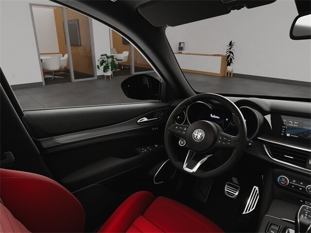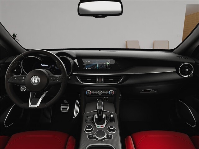 This Stelvio Ti is nicely equipped with Performance Driving Package (Gloss Red Calipers w/White Script, Power Adjust 8-Way Front Passenger Seat, Power Adjustable Bolster, Red Leather Sport Seats, and Wheels: 21 x 8.5 Dark 5-Hole Aluminum), Quick Order Package 22G Ti, Apple CarPlay/Android Auto, Auto High-beam Headlights, Auto-dimming door mirrors, Auto-dimming Rear-View mirror, Automatic temperature control, Brake assist, Compass, Electronic Stability Control, Four wheel independent suspension, Front dual zone A/C, Garage door transmitter, Heated door mirrors, Heated front seats, Heated rear seats, Heated steering wheel, High-Intensity Discharge Headlights, Illuminated entry, Memory seat, Navigation System, Outside temperature display, ParkView Rear Back-Up Camera, Power door mirrors, Power driver seat, Power Liftgate, Power moonroof, Power steering, Power windows, Radio: AM/FM/HD 8.8 w/Navigation, Rain sensing wipers, Rear audio controls, Rear window defroster, Rear window wiper, Remote keyless entry, Security system, Speed control, Speed-sensing steering, Steering wheel mounted audio controls, Traction control, Turn signal indicator mirrors, 3.73 Axle Ratio, 4-Wheel Disc Brakes, 8 Speakers, ABS brakes, Air Conditioning, Alloy wheels, AM/FM radio: SiriusXM, Bumpers: body-color, Delay-off headlights, Driver door bin, Driver vanity mirror, Dual front impact airbags, Dual front side impact airbags, Emergency communication system: Alfa Connect, Front anti-roll bar, Front Bucket Seats, Front Center Armrest, Front reading lights, Fully automatic headlights, Knee airbag, Leather Seats, Leather Shift Knob, Low tire pressure warning, Occupant sensing airbag, Overhead airbag, Overhead console, Panic alarm, Passenger door bin, Passenger vanity mirror, Power passenger seat, Radio data system, Rear anti-roll bar, Rear fog lights, Rear reading lights, Rear seat center armrest, Roof rack: rails only, Speed-Sensitive Wipers, Split folding rear seat, Spoiler, Sport steering wheel, Tachometer, Telescoping steering wheel, Tilt steering wheel, Trip computer, Variably intermittent wipers, and Wheels: 19 x 8.0 Sport 5-Hole Aluminum.