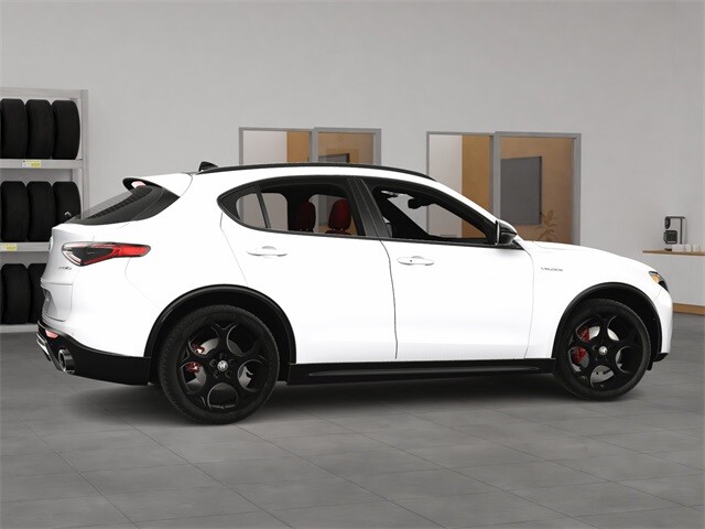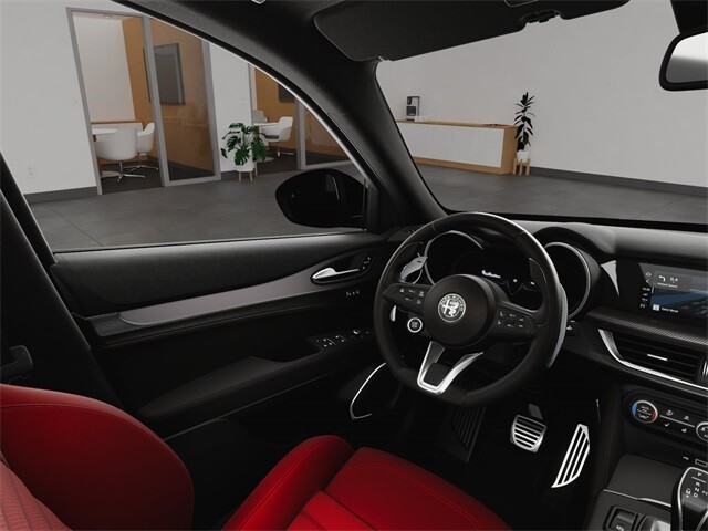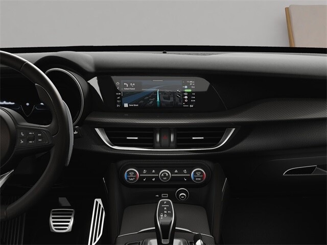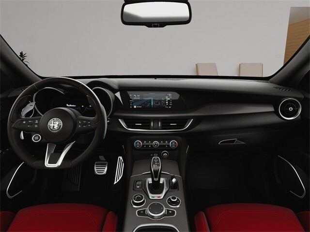 This Stelvio Veloce Ti is nicely equipped with Active Assist Plus Package (Driver Attention Alert and Traffic Jam Assist), Quick Order Package 22S Veloce (Dark Miron V Scudetto Grille, Limited Slip Differential Rear Axle, Power Adjust 8-Way Front Passenger Seat, and Sport Leather Seats), 3.73 Axle Ratio, 4-Wheel Disc Brakes, 8 Speakers, ABS brakes, Air Conditioning, Alloy wheels, AM/FM radio: SiriusXM, Apple CarPlay/Android Auto, Auto High-beam Headlights, Auto-dimming door mirrors, Auto-dimming Rear-View mirror, Automatic temperature control, Brake assist, Bumpers: body-color, Compass, Delay-off headlights, Driver door bin, Driver vanity mirror, Dual front impact airbags, Dual front side impact airbags, Electronic Stability Control, Emergency communication system: Alfa Connect, Four wheel independent suspension, Front anti-roll bar, Front Bucket Seats, Front Center Armrest, Front dual zone A/C, Front reading lights, Fully automatic headlights, Garage door transmitter, Heated door mirrors, Heated front seats, Heated rear seats, Heated steering wheel, High-Intensity Discharge Headlights, Illuminated entry, Knee airbag, Leather Seats, Leather Shift Knob, Low tire pressure warning, Manufacturer's Statement of Origin, Memory seat, Navigation System, Occupant sensing airbag, Outside temperature display, Overhead airbag, Overhead console, Panic alarm, ParkView Rear Back-Up Camera, Passenger door bin, Passenger vanity mirror, Power door mirrors, Power driver seat, Power Liftgate, Power moonroof, Power passenger seat, Power steering, Power windows, Radio data system, Radio: AM/FM/HD 8.8 w/Navigation, Rain sensing wipers, Rear anti-roll bar, Rear audio controls, Rear fog lights, Rear reading lights, Rear seat center armrest, Rear window defroster, Rear window wiper, Remote keyless entry, Roof rack: rails only, Security system, Speed control, Speed-sensing steering, Speed-Sensitive Wipers, Split folding rear seat, Spoiler, Sport steering wheel, Steering wheel mounted audio controls, Tachometer, Telescoping steering wheel, Tilt steering wheel, Traction control, Trip computer, Turn signal indicator mirrors, Variably intermittent wipers, Wheels: 19 x 8.0 Sport 5-Hole Aluminum, and Wheels: 21 x 8.5 Dark 5-Hole Aluminum.
