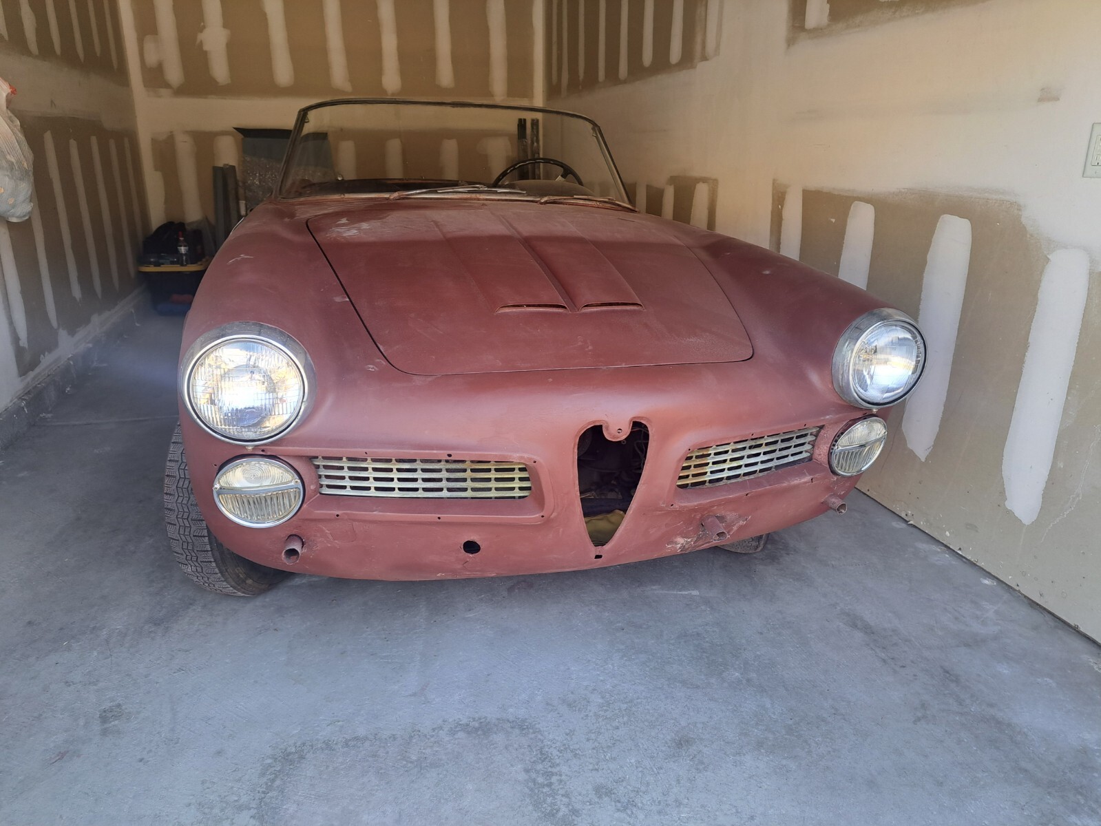 1959 Alfa Romeo 102 Touring Spider. Includes sheetmetal for spare tire, floors and supports. No interior, only seat frames and springs. No engine or gearbox.