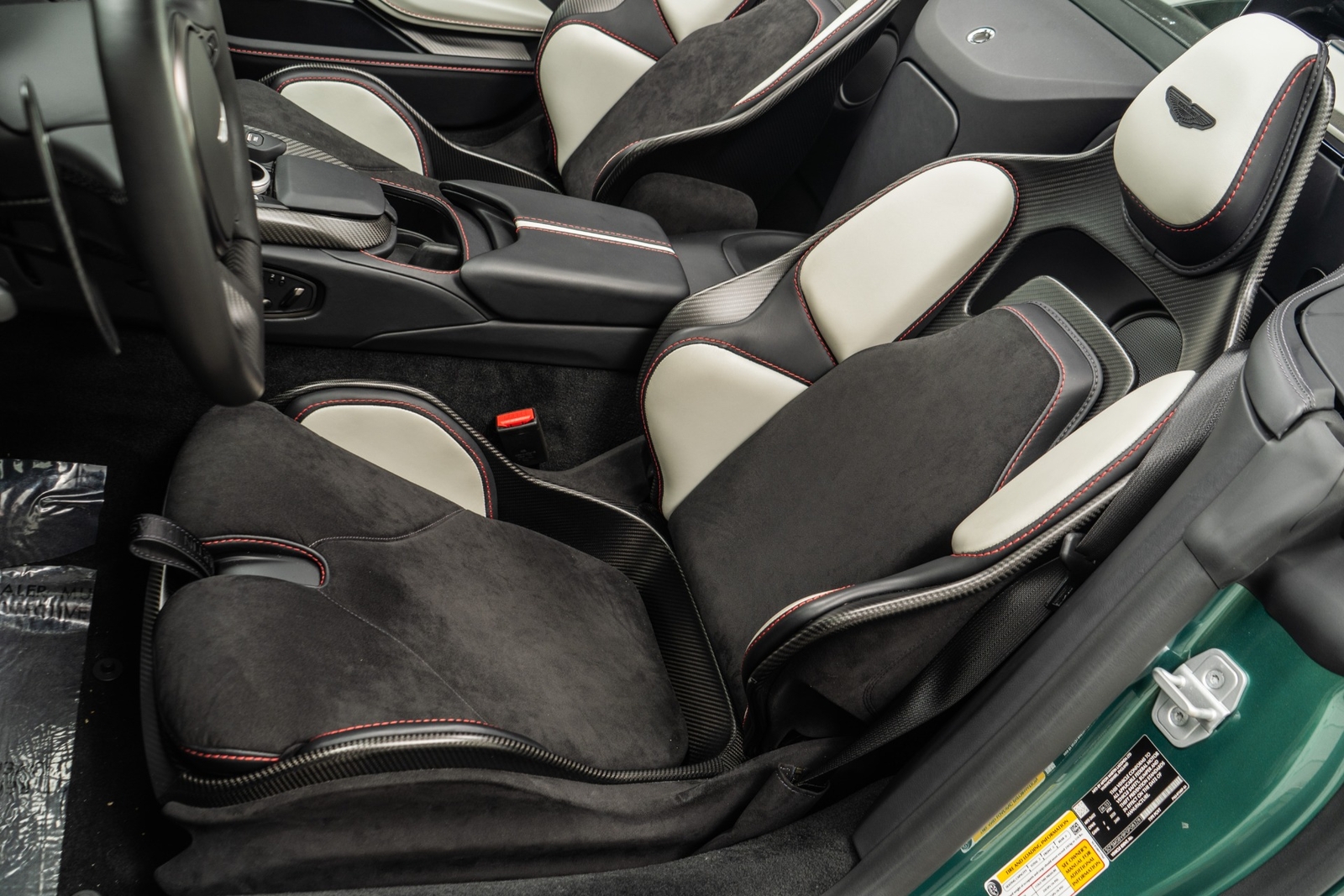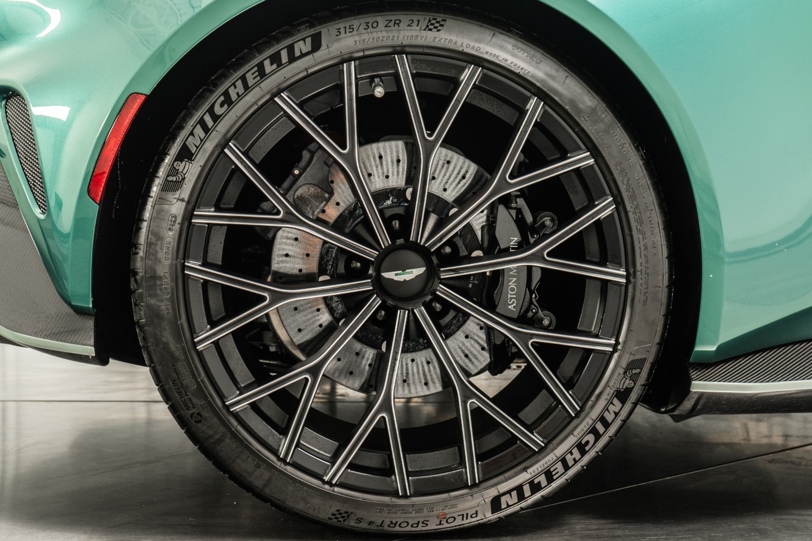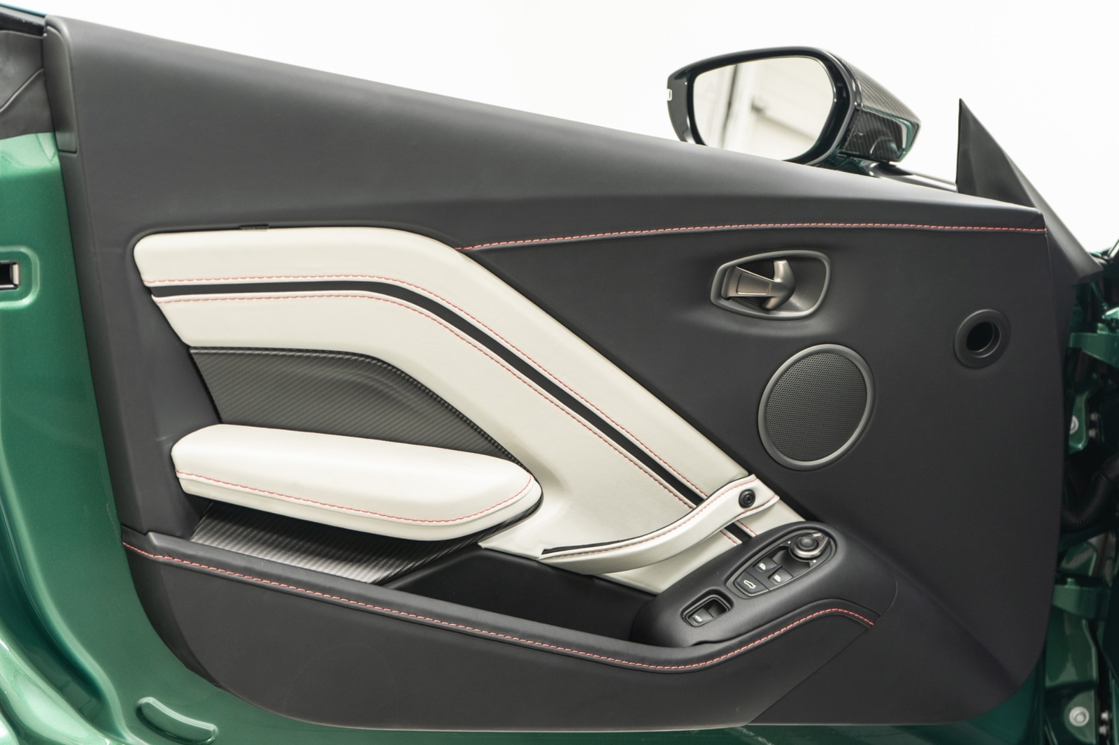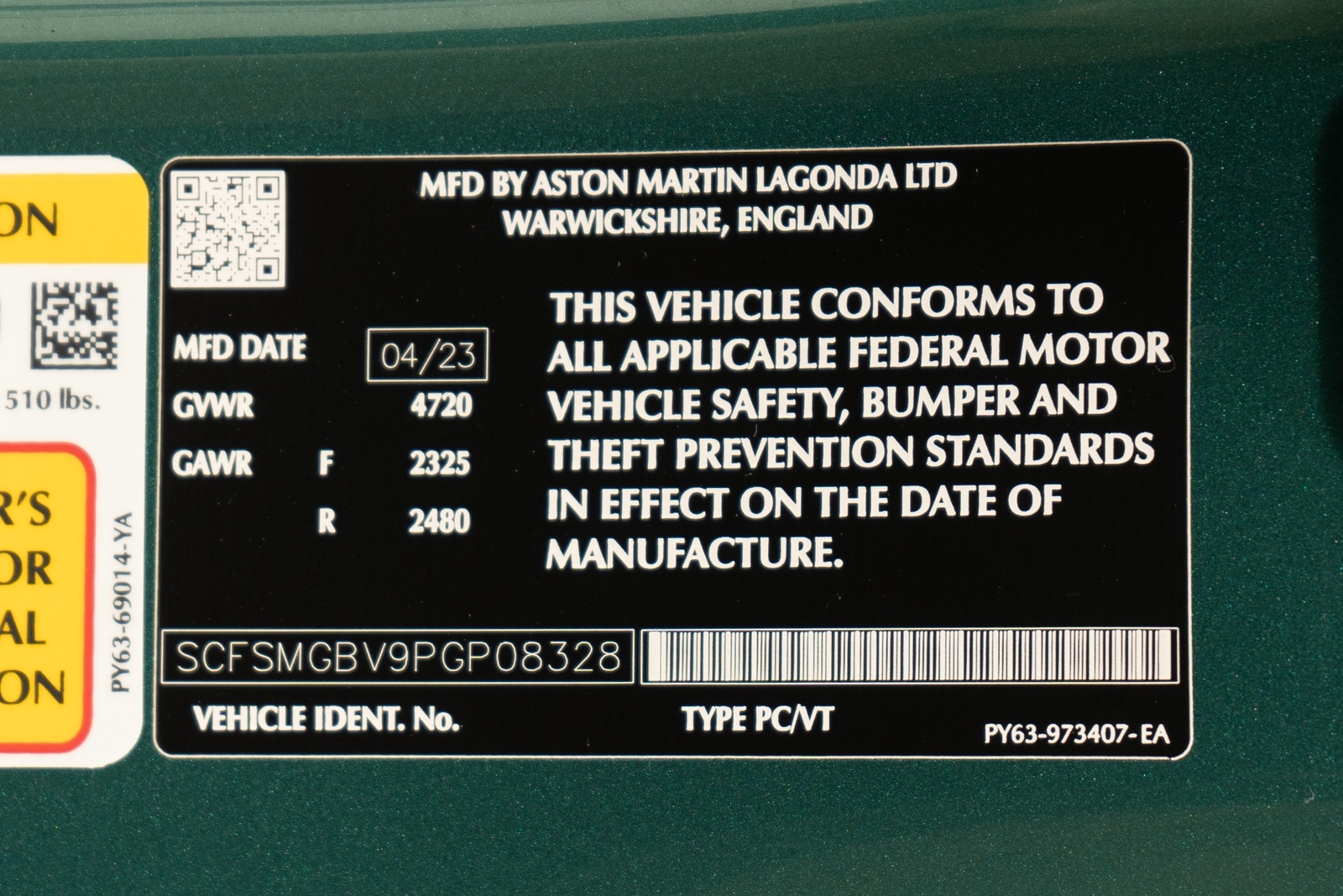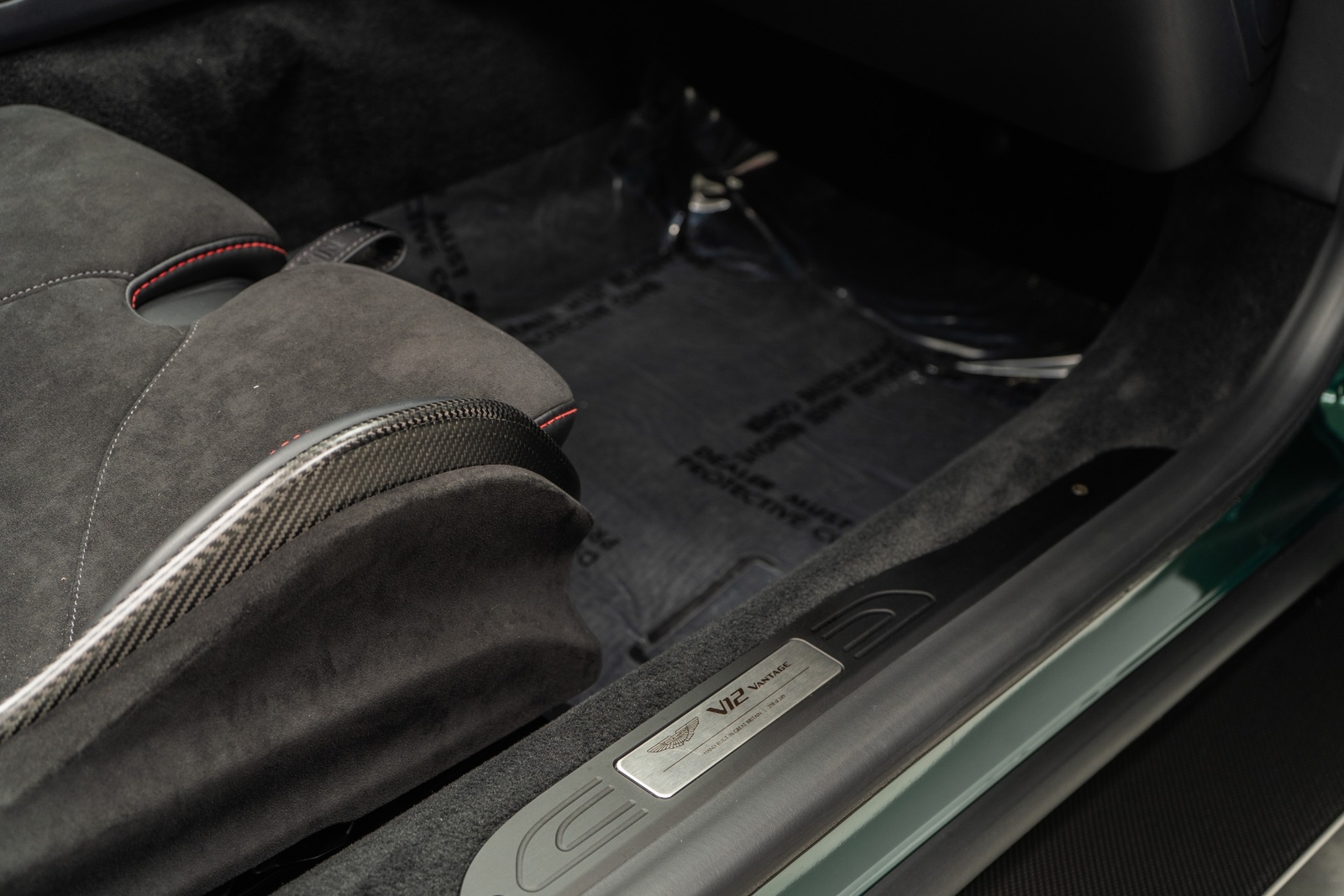 We have just added to our extensive exotic car inventory a beautiful 2023 Aston Martin Vantage V12 Roadster in Aston Martin Racing Green over Onyx Black and Light Argento Metallic leather interior and only 914 original miles. This Vantage is loaded with: 5.2 liter twin turbo V12 with 590 horsepower, 8 speed automatic transmission, 21 inch Y spoke matte black and diamond turned wheels, carbon fiber lower pack, paint color from the Racing Line collection, pinstripe livery, smoked rear lamps, lightweight carbon fiber seats, Alcantara and semi aniline leather duotone color scheme, contemporary leather color, contrast stitching, 2x2 twill carbon fiber interior trim, Aston Martin premium audio, AML special color black and silver convertible top, battery charger, floor mats and much more. This is #218 of only 249 V12 Roadsters built for the world. The MSRP was a massive $415,386, more than triple the cost of a base model Vantage convertible.