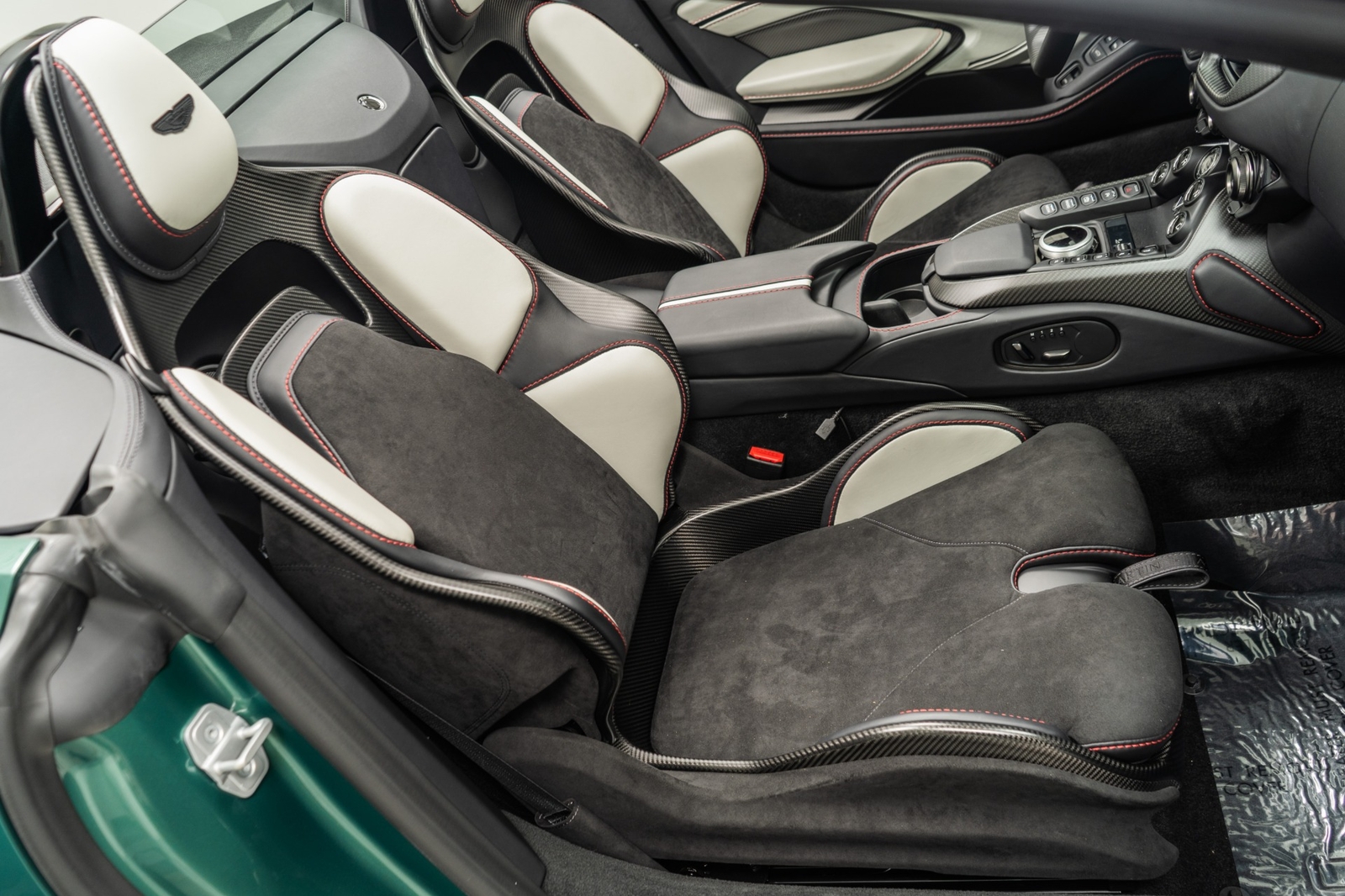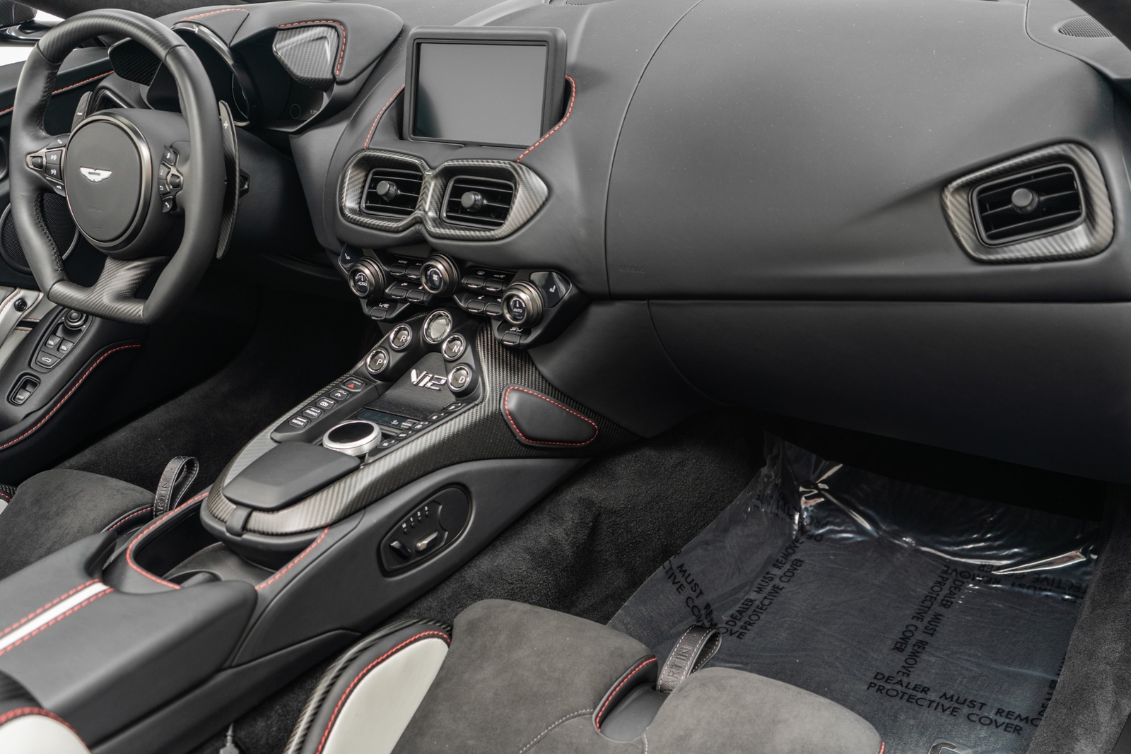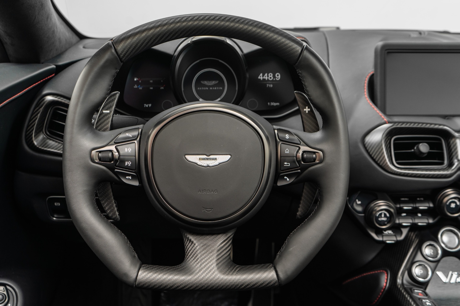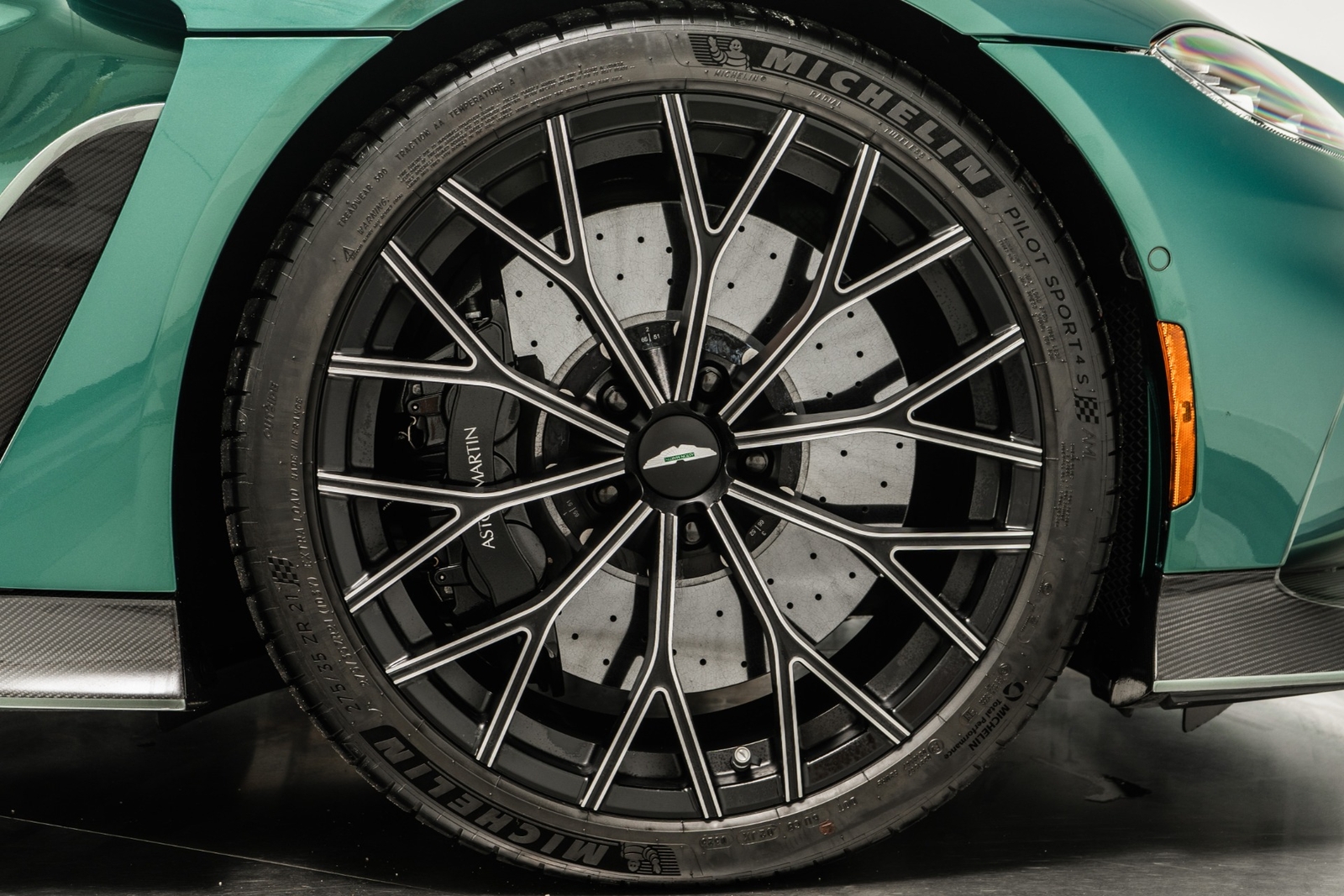 We have just added to our extensive exotic car inventory a beautiful 2023 Aston Martin Vantage V12 Roadster in Aston Martin Racing Green over Onyx Black and Light Argento Metallic leather interior and only 914 original miles. This Vantage is loaded with: 5.2 liter twin turbo V12 with 590 horsepower, 8 speed automatic transmission, 21 inch Y spoke matte black and diamond turned wheels, carbon fiber lower pack, paint color from the Racing Line collection, pinstripe livery, smoked rear lamps, lightweight carbon fiber seats, Alcantara and semi aniline leather duotone color scheme, contemporary leather color, contrast stitching, 2x2 twill carbon fiber interior trim, Aston Martin premium audio, AML special color black and silver convertible top, battery charger, floor mats and much more. This is #218 of only 249 V12 Roadsters built for the world. The MSRP was a massive $415,386, more than triple the cost of a base model Vantage convertible.