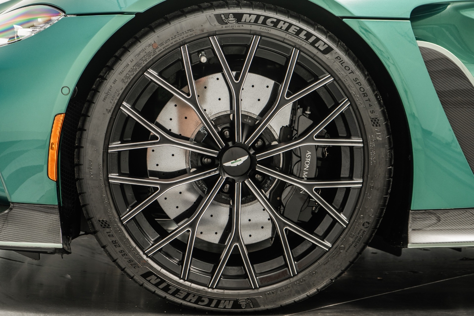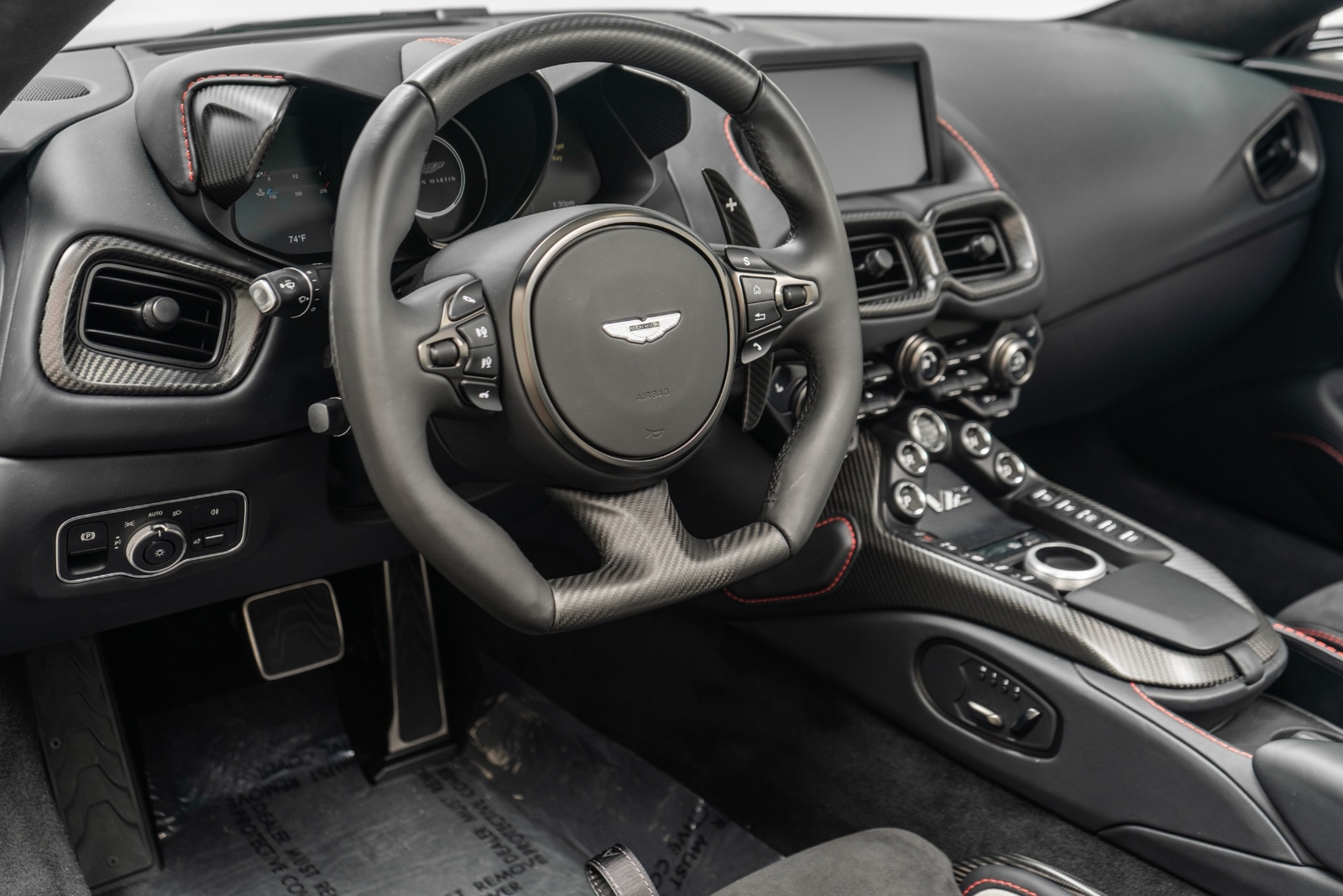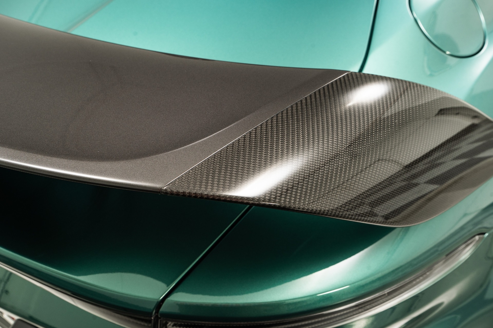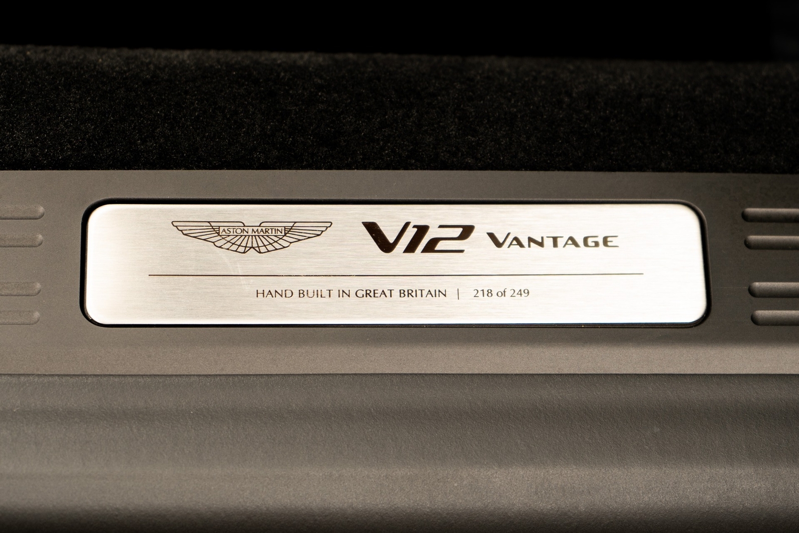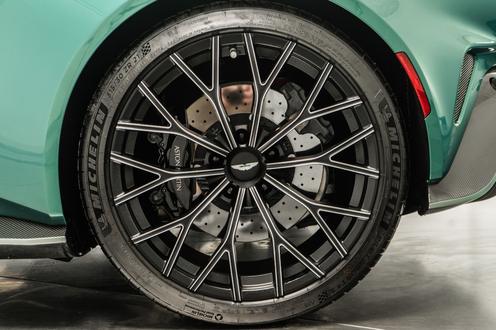 We have just added to our extensive exotic car inventory a beautiful 2023 Aston Martin Vantage V12 Roadster in Aston Martin Racing Green over Onyx Black and Light Argento Metallic leather interior and only 914 original miles. This Vantage is loaded with: 5.2 liter twin turbo V12 with 590 horsepower, 8 speed automatic transmission, 21 inch Y spoke matte black and diamond turned wheels, carbon fiber lower pack, paint color from the Racing Line collection, pinstripe livery, smoked rear lamps, lightweight carbon fiber seats, Alcantara and semi aniline leather duotone color scheme, contemporary leather color, contrast stitching, 2x2 twill carbon fiber interior trim, Aston Martin premium audio, AML special color black and silver convertible top, battery charger, floor mats and much more. This is #218 of only 249 V12 Roadsters built for the world. The MSRP was a massive $415,386, more than triple the cost of a base model Vantage convertible.