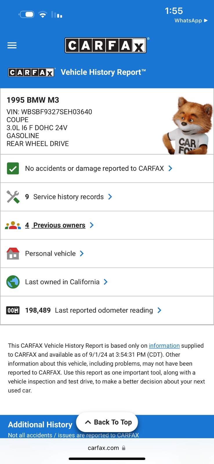 For sale bmw m3 1995 Californian title, clean, no accidents, car in very good mechanical condition, the car looks new I also added a picture from Carfax that shows that the car has no accidents. The vehicle drives and drives smoothly and everything works in the vehicle including the sunroof windows and it also passed a smoke test, also the vehicle was sold as-is and I am not responsible for anything that the buyer did not check