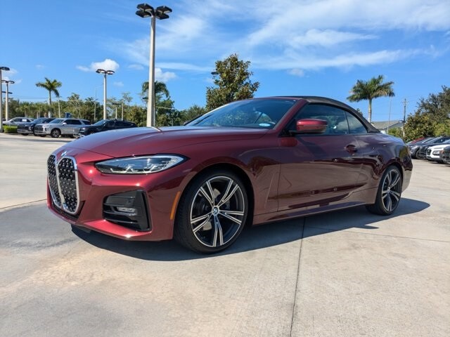 2022 BMW 4 Series Red Metallic 2D Convertible 430i RWD 8-Speed Automatic Sport 2.0L 4-Cylinder TwinPower Turbo NAVIGATION, BLUE TOOTH HANDS FREE, BACK UP CAMERA, PUSH BUTTON START, SMART KEY, Aerodynamic Kit, Comfort Access Keyless Entry, Connected Package Pro, Heated Front Seats, Heated Steering Wheel, Increased Top Speed Limiter, Lumbar Support, M Sport Package, M Sport Pkg, M Sport Suspension, M Steering Wheel, Premium Package 2, Shadowline Exterior Trim, Variable Sport Steering, Wheels: 19 x 8 Fr & 19 x 8.5 Rr M Double-Spoke, Without Lines Designation Outside.