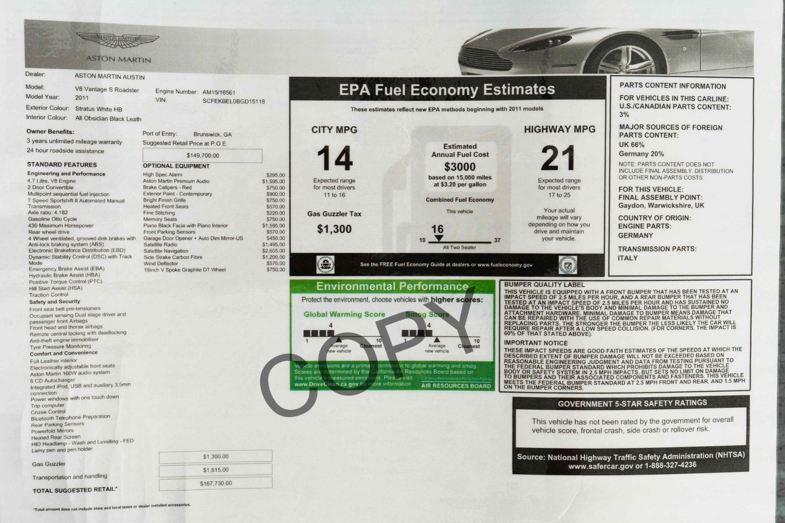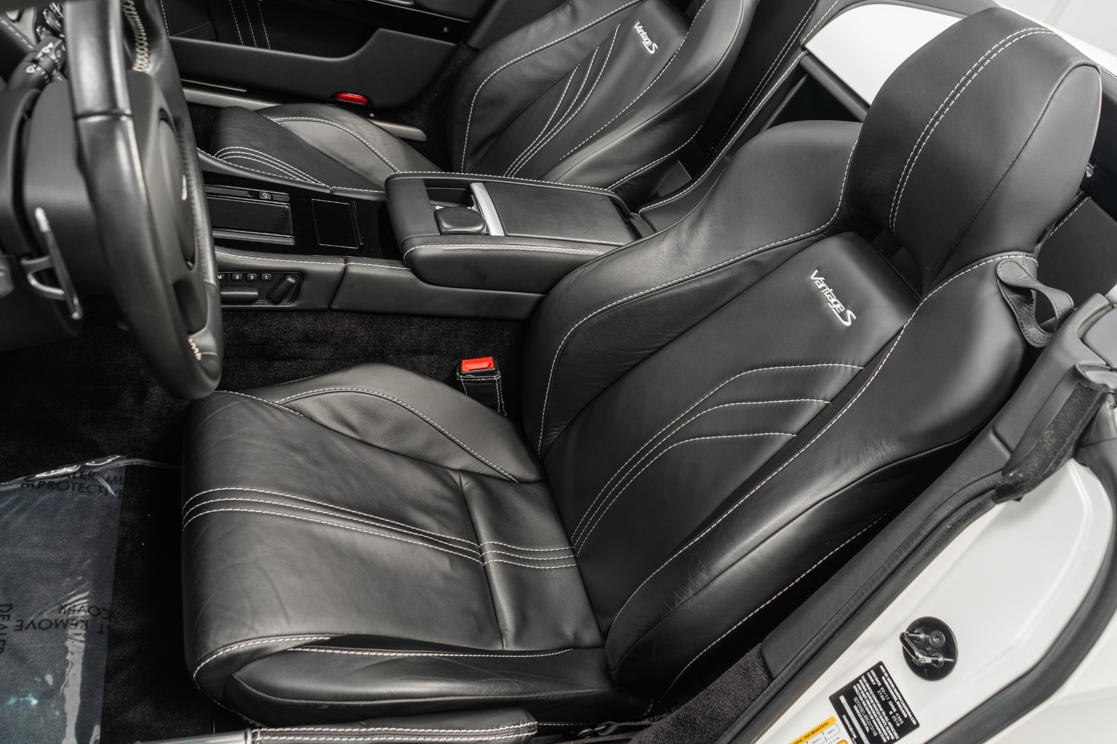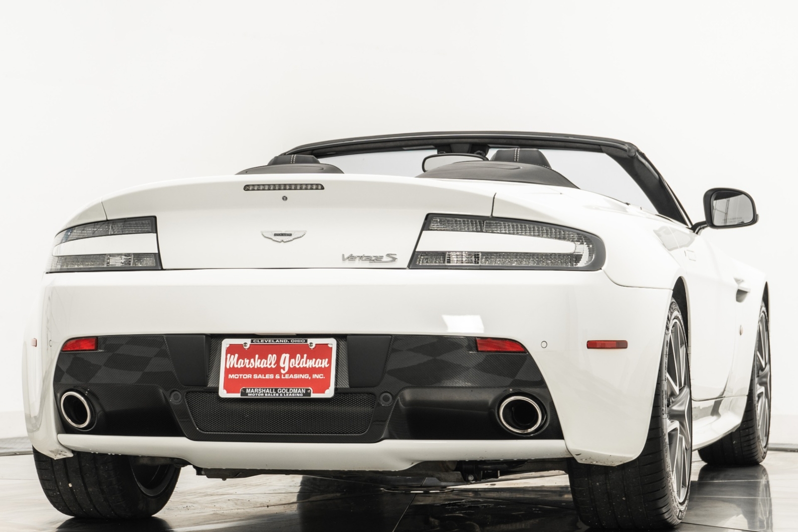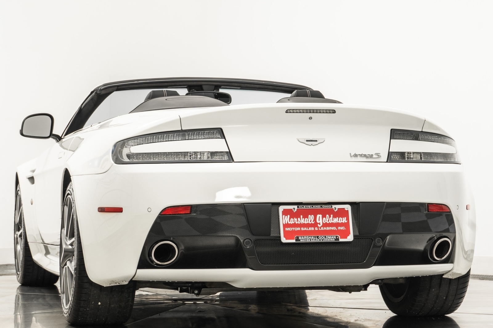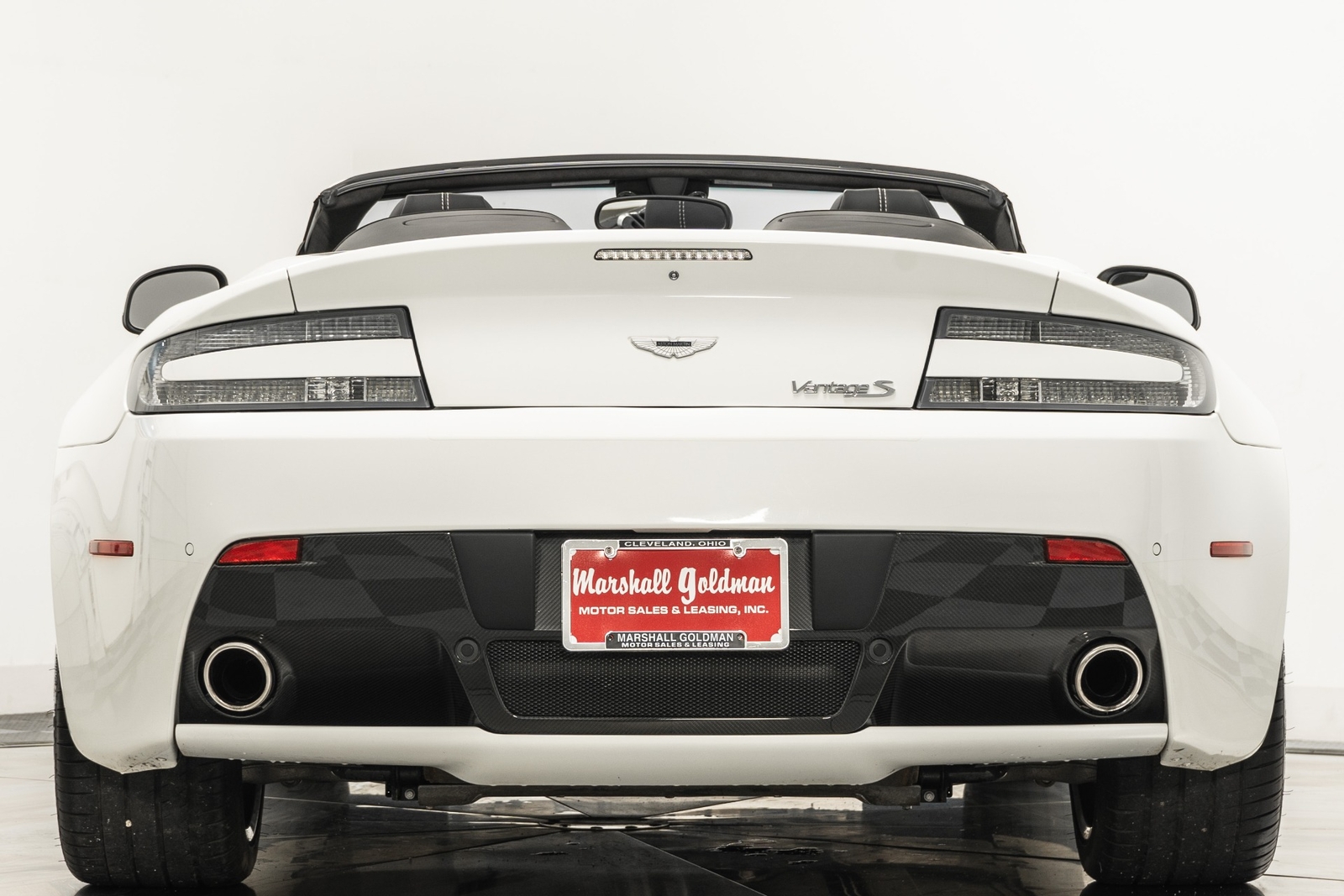 We have just added to our extensive exotic car inventory a beautiful 2011 Aston Martin Vantage S Roadster in Stratus White over Obsidian Black leather and only 12,630 miles. This Vantage is loaded with: 4.7 liter V8, 7 speed automatic transmission, 19 inch V spoke graphite DT wheels, A-M premium audio, red brake calipers, contemporary paint, bright finish grille, high spec alarm, heated front seats, fine stitching, memory seats, piano black fascia with piano interior, front parking sensors, garage door opener and auto dimming mirror, satellite radio, navigation, side strakes in carbon fiber, wind deflector, car cover, black convertible top and much more. The original MSRP was $167,730.