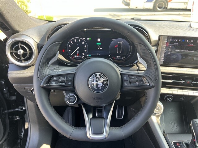 This Tonale Veloce is nicely equipped with Active Assist Package (DISC) (Active Driving Assist System, Auto-Dimming Rear Exterior Mirrors, ParkSense Front/Rear/Side Park Assist, and Surround View Camera System), Premium Interior & Sound Package (Driver Seat Memory, harman/kardon Premium Audio, Perforated Leather Seat, and Ventilated Front Seats), Quick Order Package 28E, Adaptive suspension, Apple CarPlay/Android Auto, Auto High-beam Headlights, Auto-dimming Rear-View mirror, Automatic temperature control, Brake assist, Compass, Electronic Stability Control, Four wheel independent suspension, Front dual zone A/C, Fully automatic headlights, Garage door transmitter, Heated door mirrors, Heated front seats, Heated steering wheel, Illuminated entry, Navigation System, Outside temperature display, ParkView Rear Back-Up Camera, Power door mirrors, Power driver seat, Power Liftgate, Power Moonroof, Power passenger seat, Power steering, Power windows, Radio: Uconnect 5 Nav w/10.25 Display, Rain sensing wipers, Rear window defroster, Rear window wiper, Remote keyless entry, Security system, Speed control, Steering wheel mounted audio controls, Traction control, Turn signal indicator mirrors, 4-Wheel Disc Brakes, 6 Speakers, ABS brakes, Air Conditioning, Alloy wheels, AM/FM radio: SiriusXM, Anti-whiplash front head restraints, Bumpers: body-color, Delay-off headlights, Driver door bin, Driver vanity mirror, Dual front impact airbags, Dual front side impact airbags, Emergency communication system, Front anti-roll bar, Front Bucket Seats, Front Center Armrest w/Storage, Front fog lights, Front reading lights, Knee airbag, Leather steering wheel, Low tire pressure warning, Manufacturer's Statement of Origin, Occupant sensing airbag, Overhead airbag, Overhead console, Panic alarm, Passenger door bin, Passenger vanity mirror, Perforated Alcantara Seats, Rear anti-roll bar, Rear seat center armrest, Split folding rear seat, Spoiler, Sport steering wheel, Tachometer, TBD Axle Ratio, Telescoping steering wheel, Tilt steering wheel, Trip computer, Variably intermittent wipers, Wheels: 19 x 8.0 Diamond Cut 5-Hole, and Wheels: 20 x 8.0 Grigio 5-Hole.