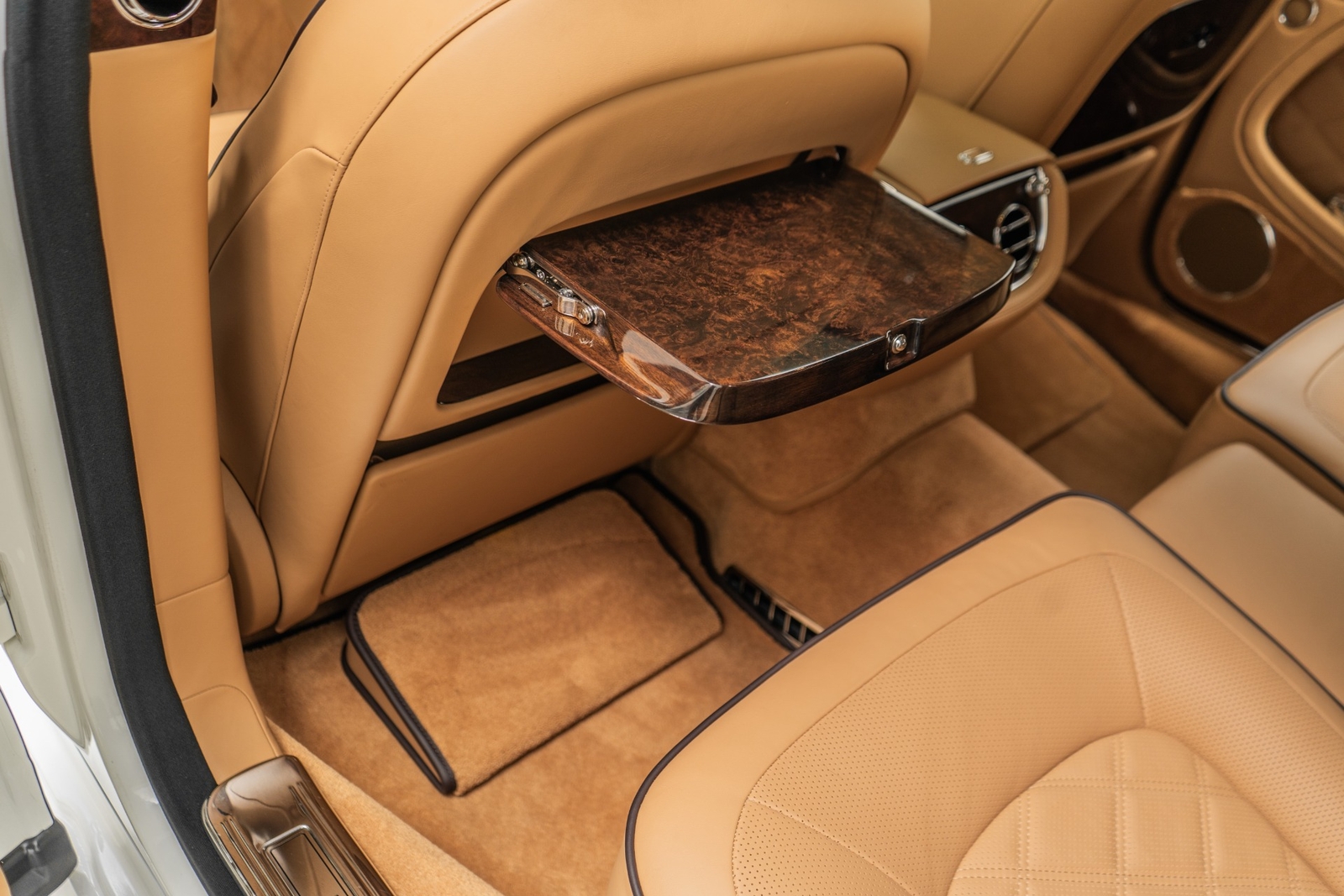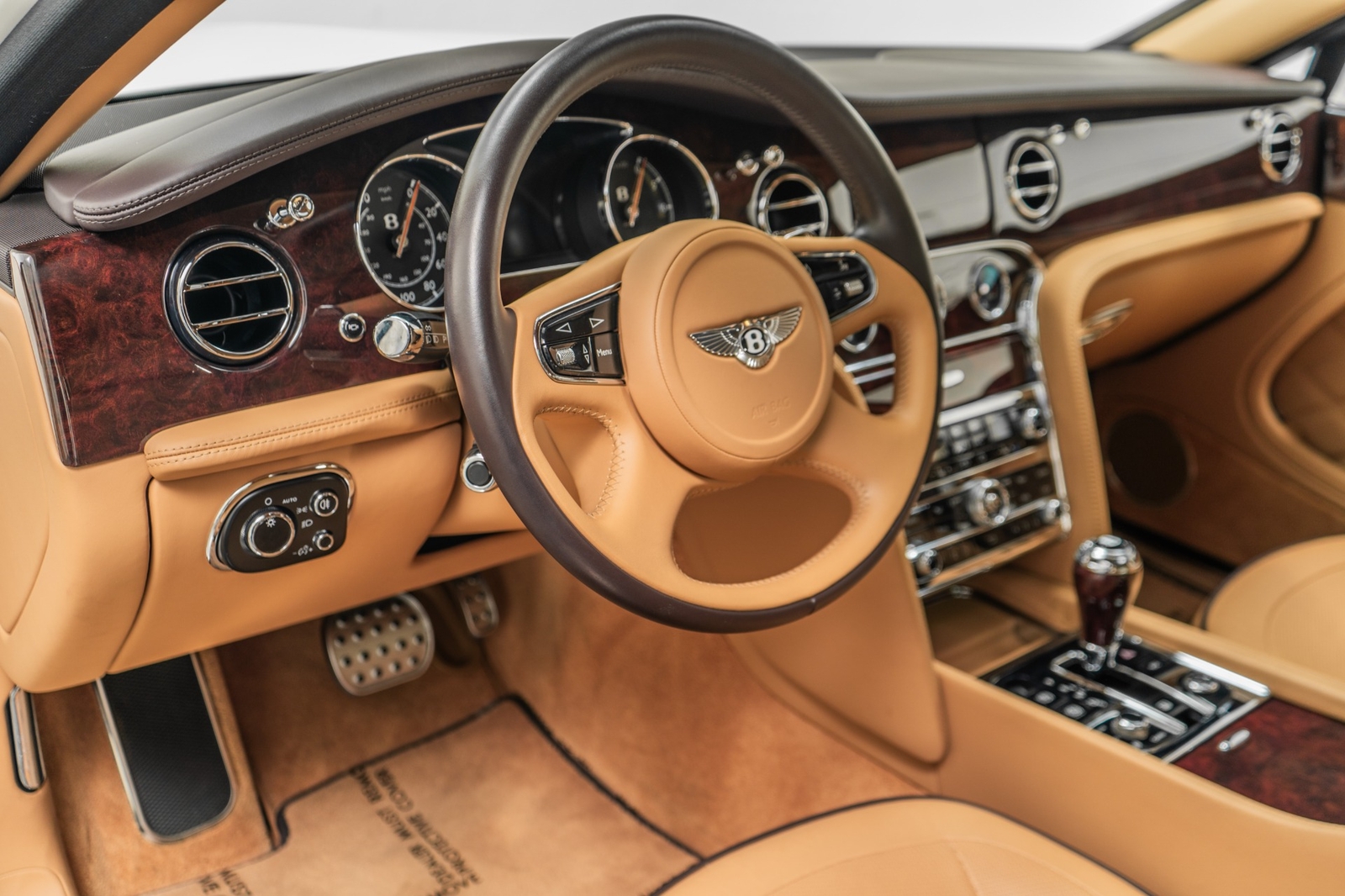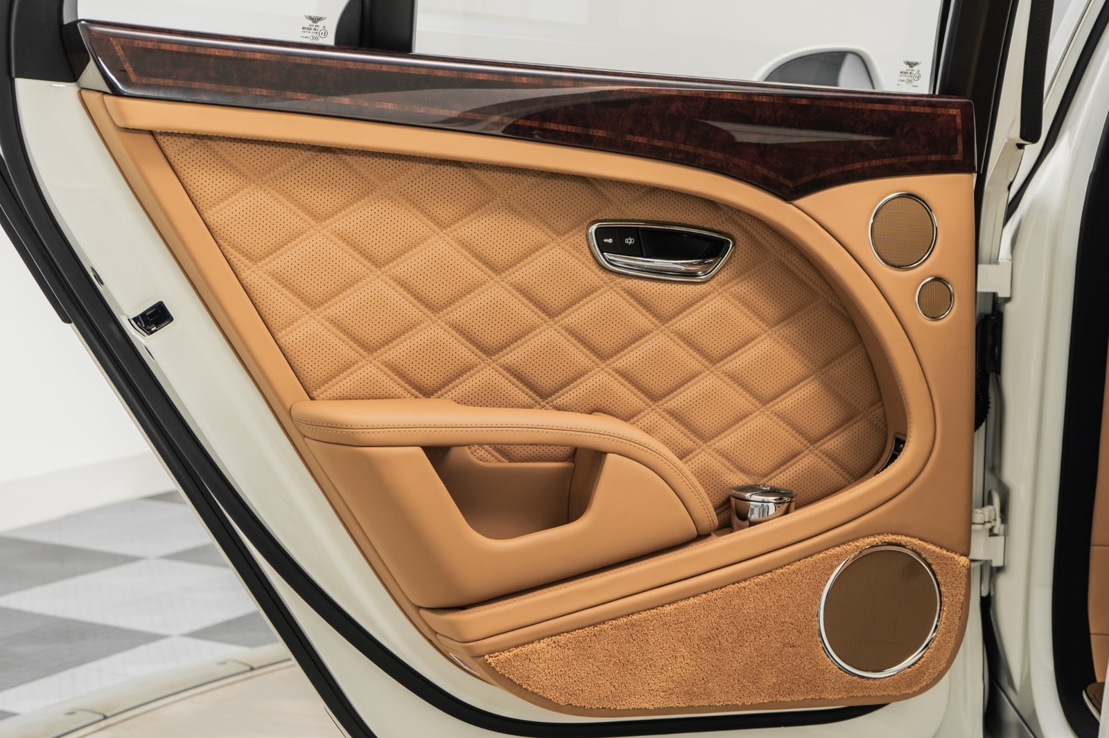 We have just added to our extensive exotic car inventory a beautiful 2016 Bentley Mulsanne Speed in Glacier White with Camel and Burnt Oak leather interior and only 25,943 miles. This Mulsanne is loaded with: 6.75 Litre twin turbo V8 with 530 horsepower and an earth-moving 811 lbs/ft of torque, automatic transmission, Speed Premier specification (21 inch polished Mulsanne Speed wheels, flying B radiator mascot, jewel fuel filler cap, rear view camera, remote opener for electronic garage door and gate, valet key, ambient interior mood lighting, shade band to tinted windscreen, twin illuminated fold down vanity mirrors, veneered iPod drawer and minor gauge panel, and ventilated seats with massage function), picnic tables, adaptive cruise control, comfort specification, picture frame style inlay to waistrails, veneered gear lever, rear quarter windows with veneer trim, WiFi hotspot, front and rear heated and ventilated seats, seat piping, bright stainless door pillar finishers, two city umbrellas, deep pile mats front and rear, navigation, sunroof, surround view cameras and much more. The original MSRP was a massive $371,502!