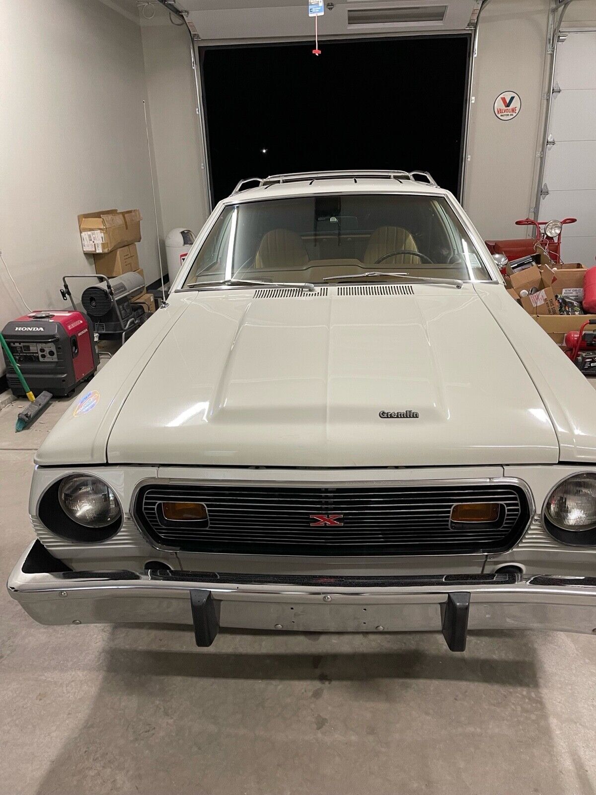 You are looking at a 1974 gremlin X originally white wrapped in satin black Metallic. We added front disk breaks and a Delphi electric fuel pump for reliability. New carpet and had the seats redone. New seals around the doors and rear glass.