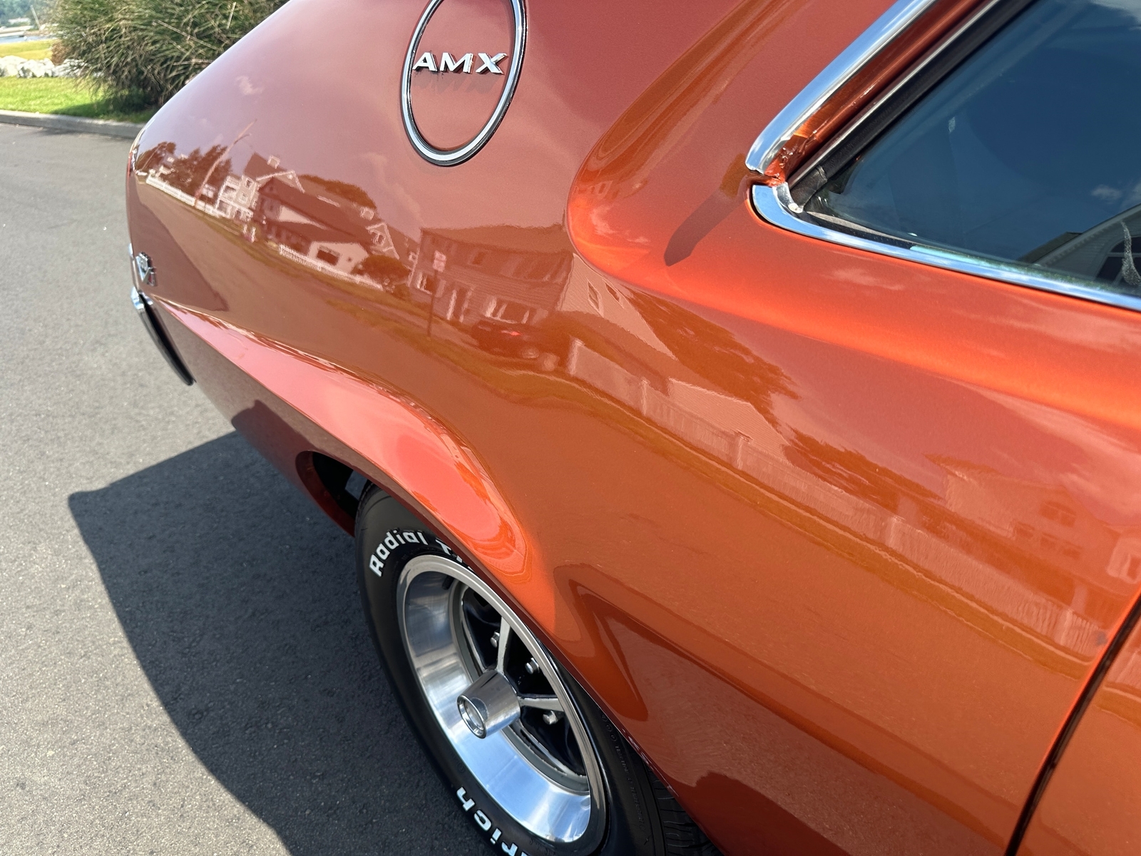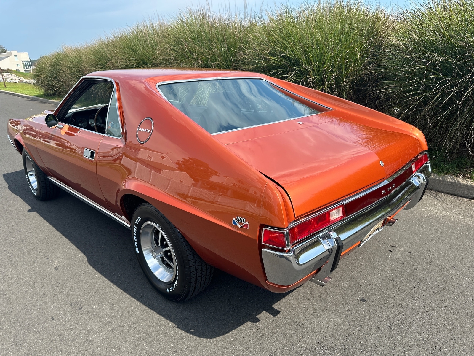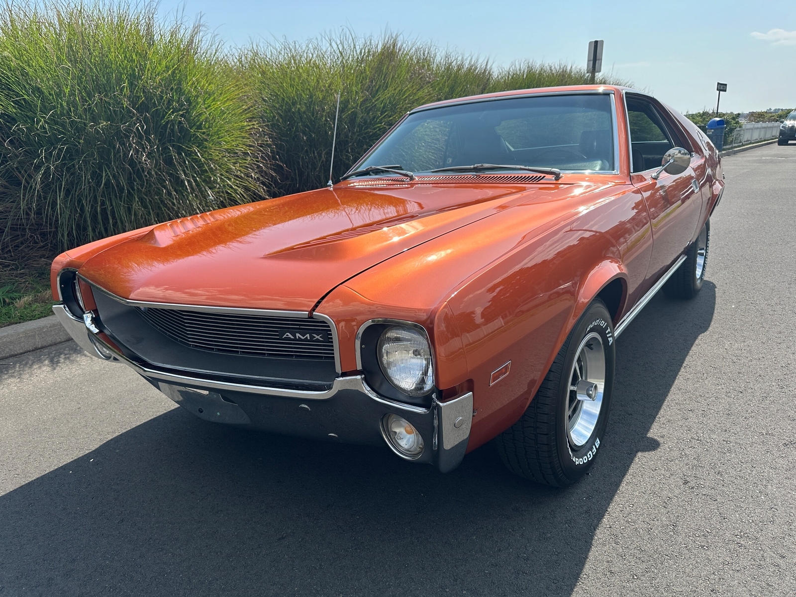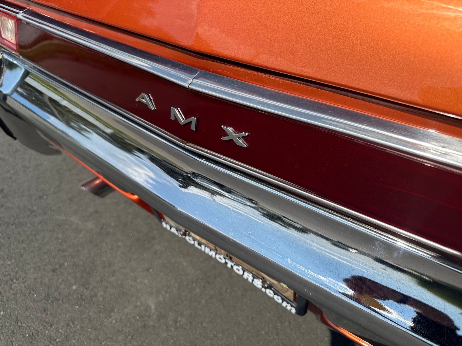 1969 AMC AMX 390 COUPE 390CI/315 HP 4/SPEED ONLY 3620 MADE YEAR: 1969 MAKE: AMC MODEL: AMX BODY: COUPE COLOR: BITTERSWEET ORANGE TRIM: CHARCOAL VINYL ENGINE: 390CI /315HP V8 TRANS: 4/SPEED REAR: 3:54 TO 1 SAFE-T-TRACK MILES: 75,209 SERIAL#: A9M397X287330 OPTIONS AMX *390 4BBL V8 *4/SPEED *POWER STEERING *POWER BRAKES *RALLY WHEELS *AM RADIO *BUCKET SEATS *ADDED CONSOLE *W/L RADIAL TIRES* RALLY GAUGES AND TACH SERIAL#BREAKDOWN A-AMC 9-1969 M-4/SPEED 3-AMX 97-HARDTOP X-390 2V V8 2887330- SEQ# DOOR TAG BODY: R037352-BODY # MODEL: 6939-7-AMX TRIM 931- BUCKET CHARCOAL PAINT: 79A-BITTERSWEET ORANGE DRIVELINE #S ENGINE: 204W30 TRANS: D969 T10-IB Q2 D9/69 REAR: PF 370 POSITRACTION HISTORY / COMMENTS THIS REAL DEAL 390 4/SPEED AMX IS A 3-OWNER CAR. THE CAR WAS REPAINTED WITHIN THE LAST 2 YEARS. STRAIGHT BODY LINE. SOLID UNDER BODY WITH NO RUST ISSUES. ONLY ADDED A FLOOR CONSOLE. BRAND NEW BRAKES. BRAND NEW WHEEL CYLINDERS AND BRAND NEW BF GOODRICH W/L TIRES JUST DONE LAST MONTH. CAR RUNS AND PERFORMS LIKE NEW. ONLY 3620 PRODUCED.ORIGINAL OWNERS MANUAL AND WARRANTY BOOK.